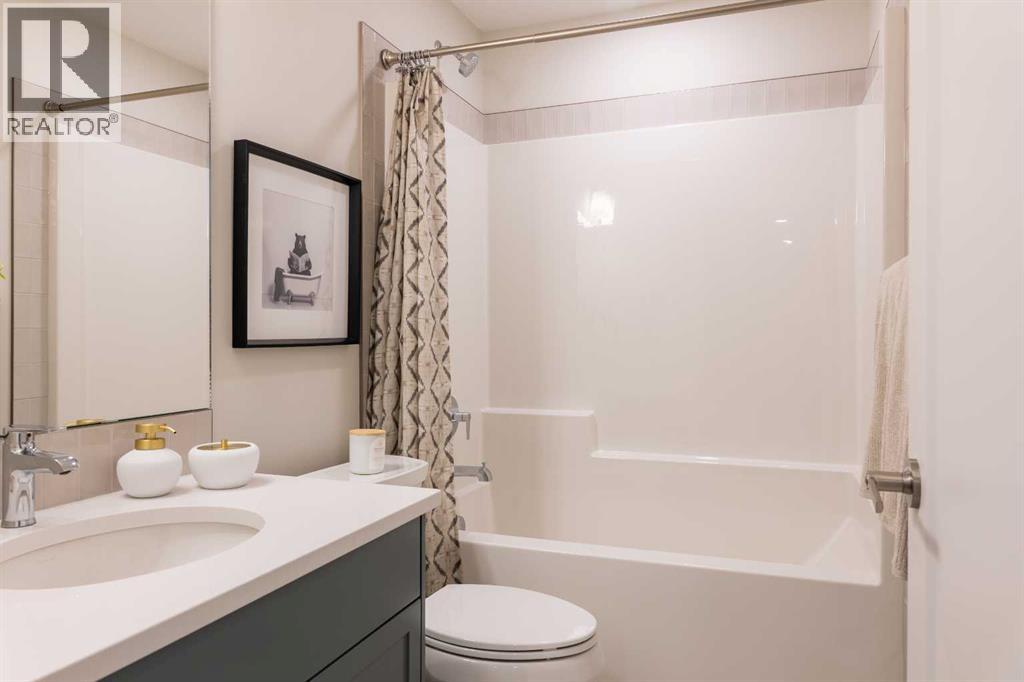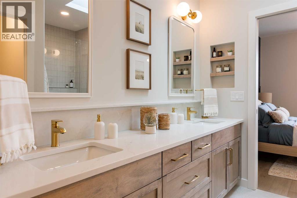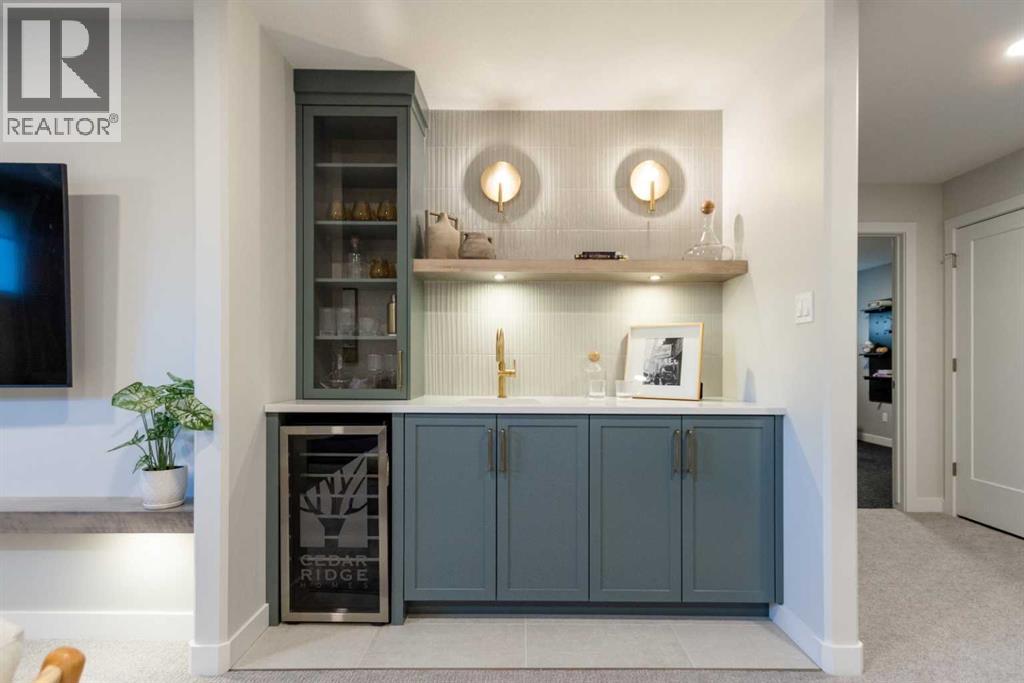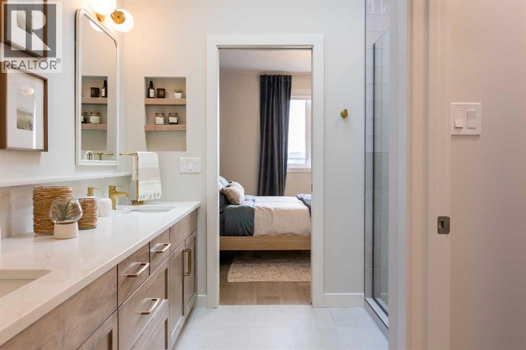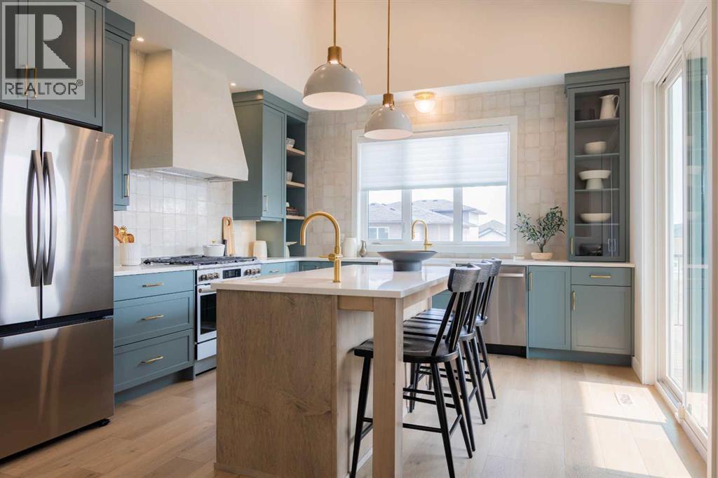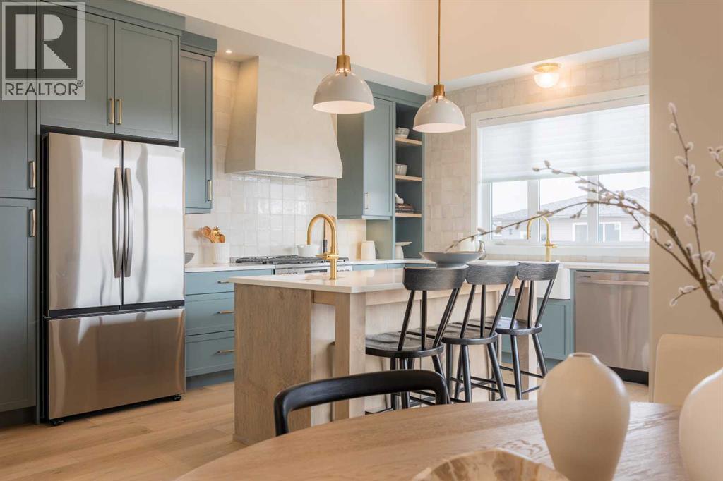A showhome with everything you need on the main floor?! How often does that happen? Well, here it is. The Ficus by Cedar Ridge Homes is an incredible bi level floorplan, that pairs functionality with elevated showhome finishes to create a true masterpiece you need to see. Up a few stairs from your spacious foyer with built ins, you are greeted by a lovely main floor complete with a cozy living room with gas fireplace, and two floor to ceiling windows that flood this whole space with the best natural light. The kitchen is truly one of a kind with two tone cabinets, a plaster hood fan, upgraded cabinets with glass insert, open shelving, and full height ceramic tile backsplash. Not to mention the positively massive window over your kitchen sink. Doing the dishes just got so much better with this in front of you! There's an extra prep sink in the beautiful island to make this space extra functional. Your primary bedroom is conveniently located on the main floor, with a four piece ensuite connected to a spacious walk in closet, which is then connected to your main floor laundry! Zero excuses if your clothes don't get put away now! The unique floorplan continues up a few stairs to the second floor, where you will find a great size loft area with open to below feature, another four piece bathroom, as well as two bedrooms. If you have little kids, they won't be too far away from you at all! The basement is also fully developed, with a family room with wet bar with custom cabinets, one more four piece bathroom, and 3 more bedrooms. You read that right...3! 6 bedrooms total! Outside you will love that a large deck has already been built on and is just ready for you to enjoy the morning sunrise. This home is located in the highly sought after neighbourhood of Riverstone, where people rave about the schools, parks, walking paths, and close access to restaurants, groceries, a fully stocked fishing pond, and so much more. Come see all this gorgeous showhome has to offer. (id:53676)