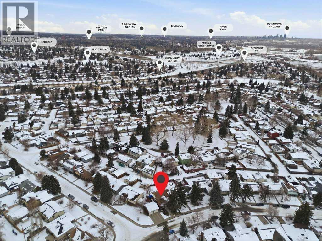 Welcome to this beautifully maintained home, nestled on a quiet, established street in the highly desirable community of Queensland. Situated on a massive corner pie lot, this property offers outstanding outdoor space, thoughtful updates, and exceptional value. Pride of ownership shines throughout, with meticulous care evident in every detail—creating a home that has been truly enjoyed for family living. Step inside to a welcoming foyer that opens into a spacious living room featuring a cozy wood-burning fireplace, a versatile dining (flex) area, and a bright kitchen complete with stainless steel appliances, ample cabinetry, and a sunny eating nook. The main level also includes a generously sized bedroom—ideal for a primary suite or guest space—alongside a convenient 3-piece bathroom. Upstairs, you’ll find three additional well-proportioned bedrooms, including a primary retreat with dual closets and cheater access to a 4-piece bathroom, offering a functional and flexible layout for families. The fully finished lower level expands your living space with a large recreation room, dedicated office, laundry area, and plenty of storage, including built-in shelving and a workshop. Step outside to an impressive backyard retreat set on an expansive pie-shaped lot, offering space, privacy, and endless potential. The fully fenced yard features a mature apple tree, spacious deck, hot tub, irrigation system, and three storage sheds—perfect for everyday living, kids, and pets. There is also convenient access to the rear alley. The oversized double front detached garage is heated, insulated, and equipped with built-in storage and a workspace, providing both function and versatility. Curb appeal is enhanced with Gemstone lighting on both the home and garage. Additional highlights include air conditioning, a VacuFlow central vacuum system, fresh neutral paint, newer kitchen appliances (2023), washer and dryer (2024), updated bathroom fixtures, and upgraded LED lighting throughout. T he home has been meticulously well maintained, with exterior and fence painting completed just two years ago. Ideally located within walking distance to Fish Creek Park, and close to both public and Catholic schools—including elementary and middle schools just steps away—this home also offers easy access to Bow Bottom Trail and nearby amenities. Enjoy being part of a welcoming, family-oriented community with year-round activities such as skating and pickleball. A true gem—homes with lots like this seldom become available. This is your chance to own a beautifully cared-for property in one of Calgary’s most established and sought-after neighbourhoods. (id:53676)