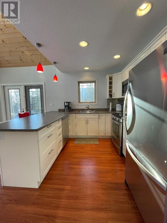 A 1300 square foot cottage in the gated community of Hilliards Bay Estates. This storey and a half cottage has everything needed to spend time enjoying everything Lesser Slave Lake has to offer. Within the gated community of Hilliards Bay Estates there is private sandy beaches where the waves roll in endlessly with luxurious views of the lake and sunsets. A recreation area with the option of different sport courts. A variety of hiking trails including the Trans Canada Trail. Winter options including snowmobiling, cross country skiing and fishing. A boat launch and an option of a private boat slip. Stepping up to the cabin you will immediately notice the maintenance free wrap around deck. A private back yard with a fire pit area: a storage shed and wood storage. The back door entrance provides a place for your outdoor gear with a combination coat closet and laundry facilities. The open concept kitchen, dining and living room have spectacular floor to ceiling chalet stye windows. The loft upstairs has a sleeping dorm, a three piece washroom and a family room. Call, email or text to book your personalised tour of Hilliards Bay Estates and Cabin 57. (id:53676)
