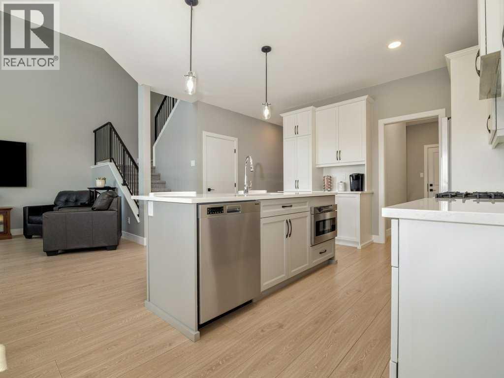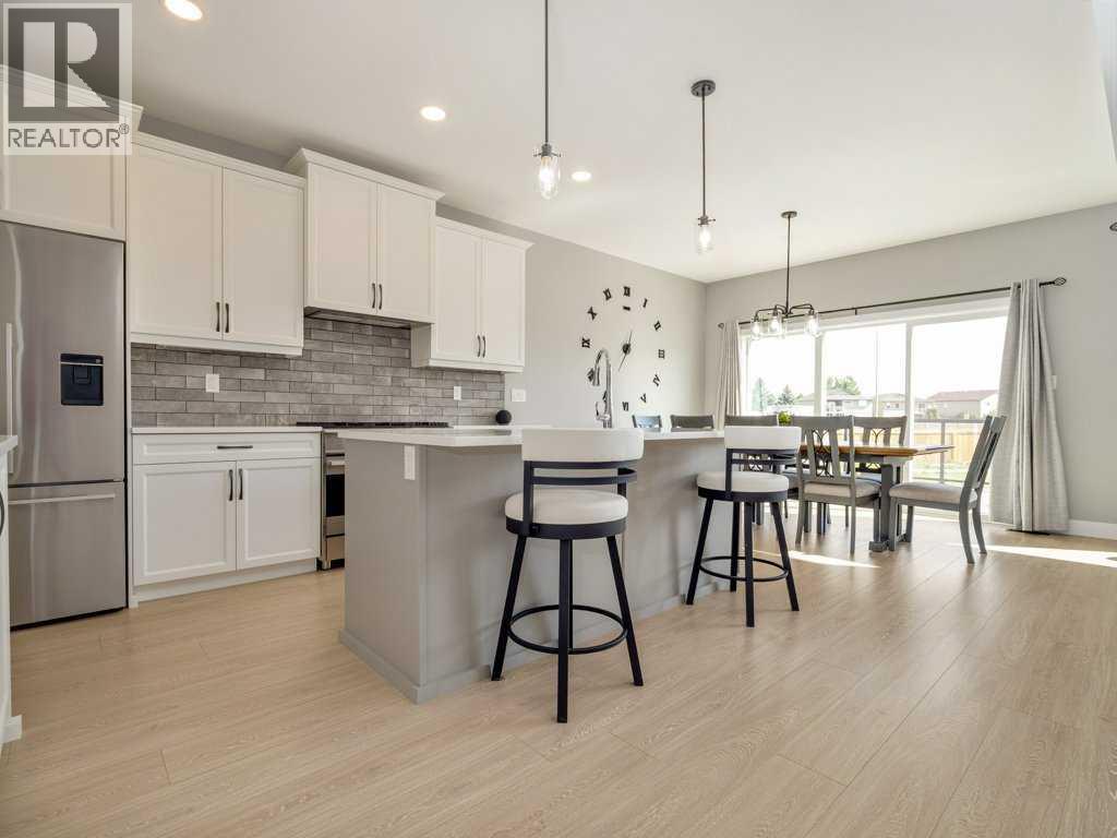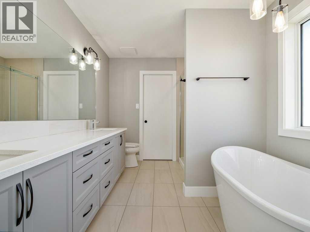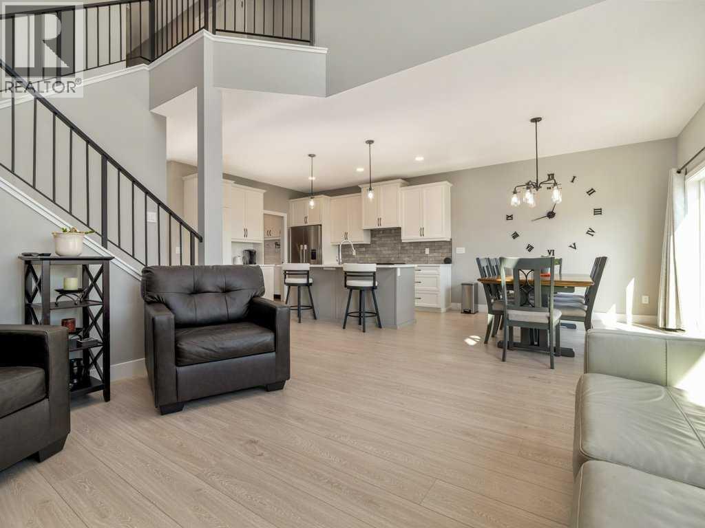 Welcome to this stunning home in West Lethbridge, conveniently located close to shopping, the new West side Elementary school, parks, pathways, and a wide range of amenities! This home presents like new, but with the basement and landscaping already completed! Step inside and you are greeted by a thoughtfully laid out main floor which features a large office space, mudroom, pantry, open concept living/dining space, and soaring ceilings open to above. The expansive windows and patio doors on this level provide beautiful views of the immense back yard space with spacious deck and room to engage in all variety of activities. This level also has access to the oversized double car garage with 9' overhead doors, and ceilings measuring over 12' tall - there is also a gas line already in place! Heading upstairs you are met with a nicely appointed primary suite with 5 piece en-suite featuring both a stand-alone shower and soaker tub, along with a walk-in closet and access to the upper laundry room. There are 2 more bedrooms and a 4 piece bathroom on this upper level, along with a bonus room for quality family time. Downstairs the basement is fully finished and offers flexible living options with a large rec room, and another large bedroom with en-suite bathroom and laundry hook-ups. This home on this size of lot with all of the finishing work already completed is hard to find - but is now ready for it's new owners to take advantage of the amazing features and call it "home"! (id:53676)