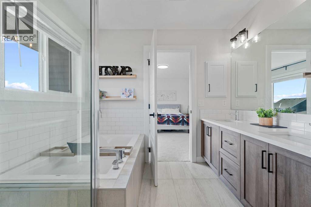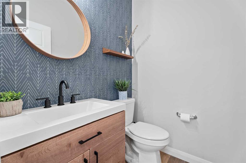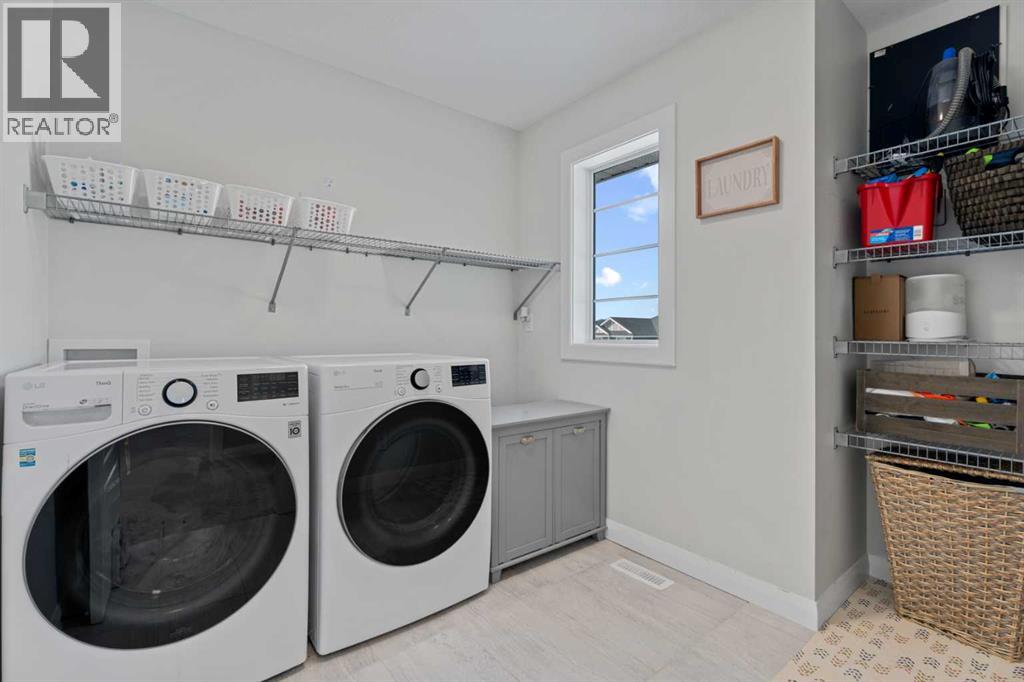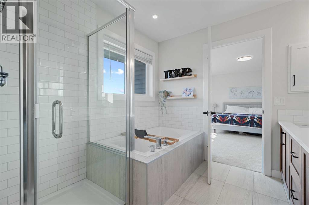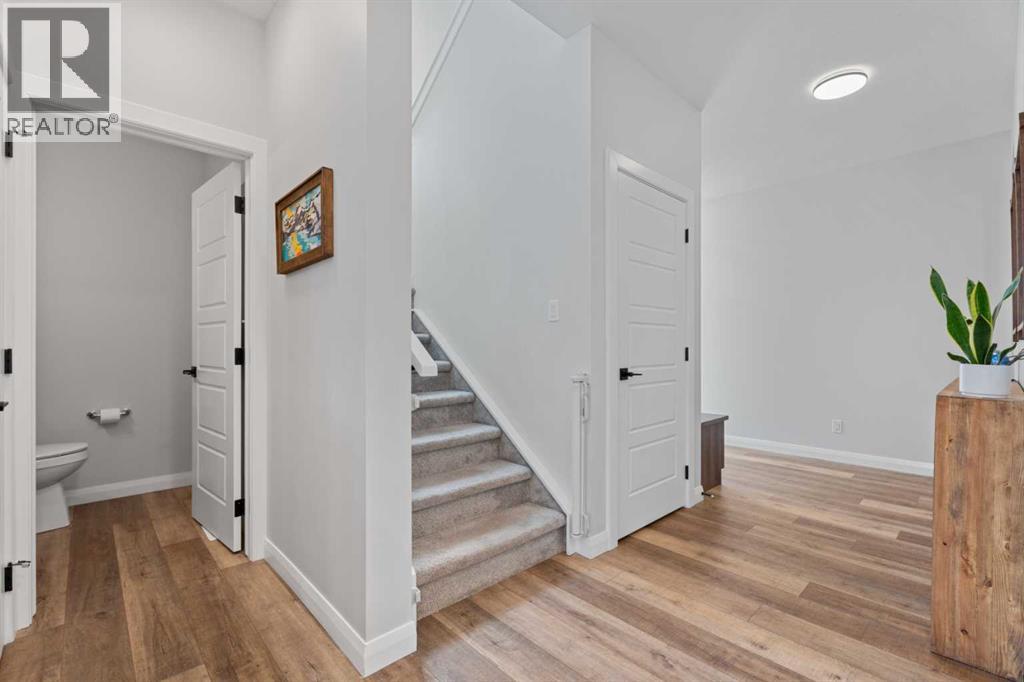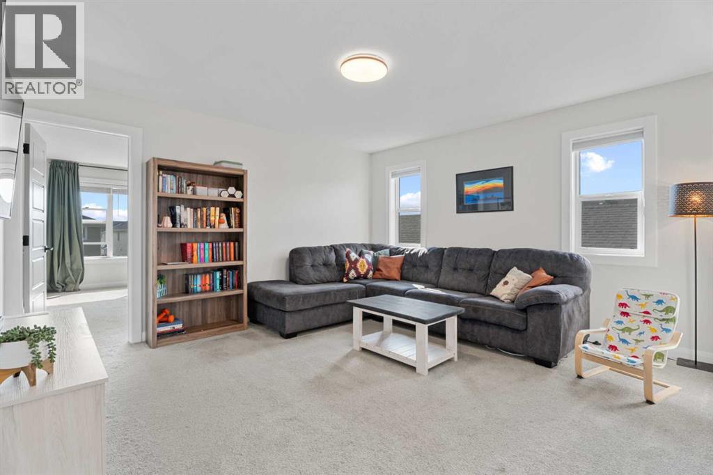 PRICE IMPROVEMENT ~~ OPEN HOUSE SAT. OCT 11 , 2 - 4 ~~ Welcome home to this stunning, nearly new walkout home that is designed for modern family living and entertaining. At the heart of the home is a gorgeous kitchen with a large island, a separate pantry, and a family-sized walkthrough from the garage for easy everyday flow. The dining room boasts a striking feature wall (you can access the main level balcony from the dining room) and the living room is warmed by a showstopper gas fireplace with an included art frame TV. An office/flex room and a stylish 2-piece powder room complete this level. The upper level offers 4 bedrooms plus a bonus room (that divides the primary suite from the other 3 bedrooms) and is filled with thoughtful upgrades throughout. The primary suite is a true retreat with a luxurious 5-piece ensuite, walk in closet with room for a king sized bedroom set. This floor also features a 5-piece family bath, convenient laundry with a sink rough-in, and two of the bedrooms have walk-in closets. The unfinished walkout basement is bright and open, with a bathroom rough-in,a great utility area complete with a laundry tub. Additional highlights include a 50-gallon hot water tank, dual-zone furnace, main level flooring upgraded to showhome standards and the garage was bumped out an additional 2 feet – so yes, your truck will fit! Outside, enjoy the thoughtfully landscaped backyard with a pergola, a fenced dog run, and a gas line on the back deck for BBQs. Located in beautiful Air Ranch, with access to the walking/biking trails, schools, conveniently accessible main roads for commuting, this home combines style, function, and space for the whole family—move-in ready and waiting for you! (id:53676)