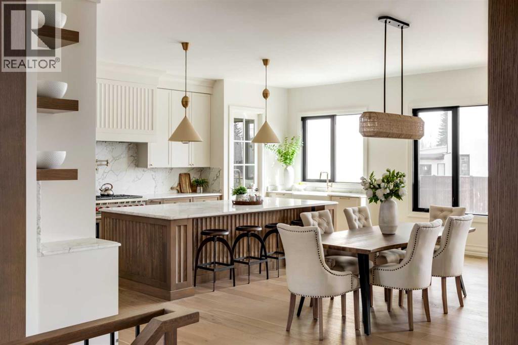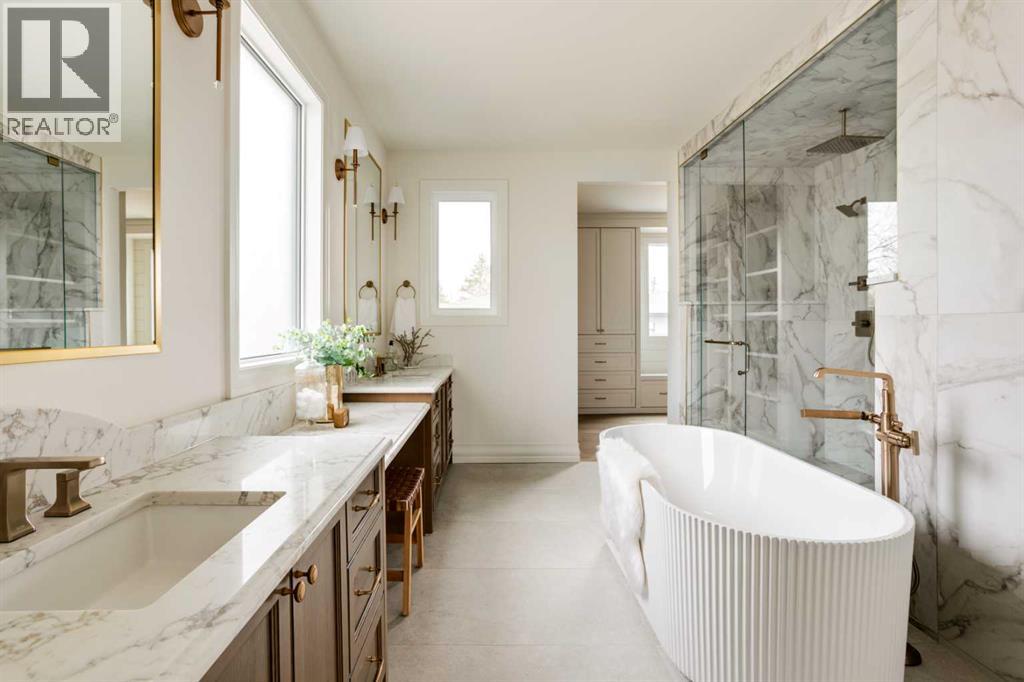 Cedar Rock Homes presents a brand new luxury family residence tucked away on a quiet cul-de-sac in the highly sought-after community of Lakeview. This exceptional property offers a prime location, rated 10/10, with exquisite features and finishings, and will be ready for occupancy in early 2026. The home spans 3,426 sq. ft. above grade with a total of 4,939 sq. ft. of developed living space, featuring 4 bedrooms upstairs, 1 bedroom down, and 5 bathrooms in total. The sunny west-facing backyard includes a rear-attached triple garage connected to the home through a breezeway and spacious mudroom. Interior designed by Lori Sellmer, the interior boasts custom site-built cabinetry with maple dovetail drawers throughout. The main floor showcases a dining/flex room, private office, large pantry, dining area, living room with a gas fireplace, and sliding doors that open to a central courtyard complete with an exterior gas fireplace. The chef’s kitchen is equipped with a premium Miele appliance package, butler’s pantry with tall freezer, oversized island, and custom hood fan. Upstairs, the primary retreat impresses with a vaulted barrel ceiling accented by a white oak backwall panel, an oversized curbless steam shower, a freestanding tub, and heated floor. The lower level, with 10 ft ceilings, offers a spacious rec room with wet bar, gym, fifth bedroom, storage, and full bathroom. A detailed list of features, & specifications. (id:53676)