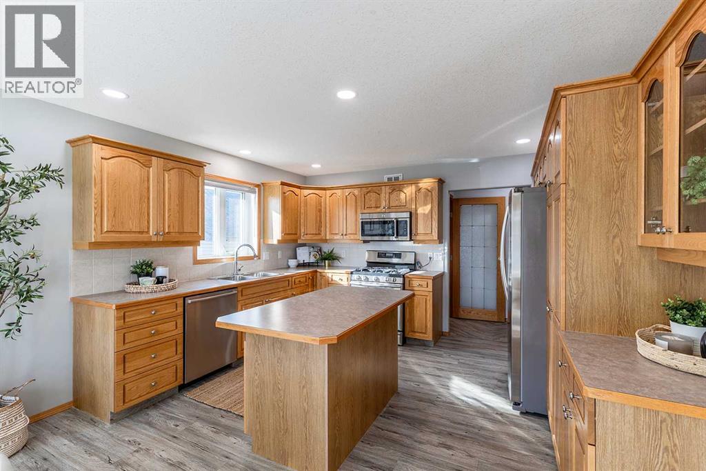 This spacious and meticulously maintained 5 bedroom, 3 bath home is built with high-efficiency ICF construction and boasts an impressive list of updates!! The bright basement features 3 large bedrooms, huge windows, a full kitchen (perfect for a non-conforming suite or a wet bar), expansive family room, and a new 3 pc bath (2023). This basement is perfect with the non-conforming suite if you have a family member you want to stay close or even an Air BnB. Separating the main house and lower suite is an easy fix, ask me how!! On the main floor you’ll find vaulted ceilings, a cozy gas fireplace, updated bathrooms, and a super spacious kitchen with stainless steel appliances, gas stove, and island seating. This is truly the heart of the home. The primary suite includes a walk-in closet and updated ensuite. Upgrades include shingles & eaves (2017), vinyl plank flooring (2021), new garage heater (2024), HRV for added comfort, LED lighting, oak stair treads, newer HWT, and raised toilets. The 24x26 heated garage, RV parking, underground sprinklers, and wiring for a hot tub add to the appeal. The deck offers gas BBQ hookup, storage below, and new stairs. This home is an easy move, blending style, function, and flexibility—whether you need extra space for family or a separate suite option, it’s ready to go!! (id:53676)