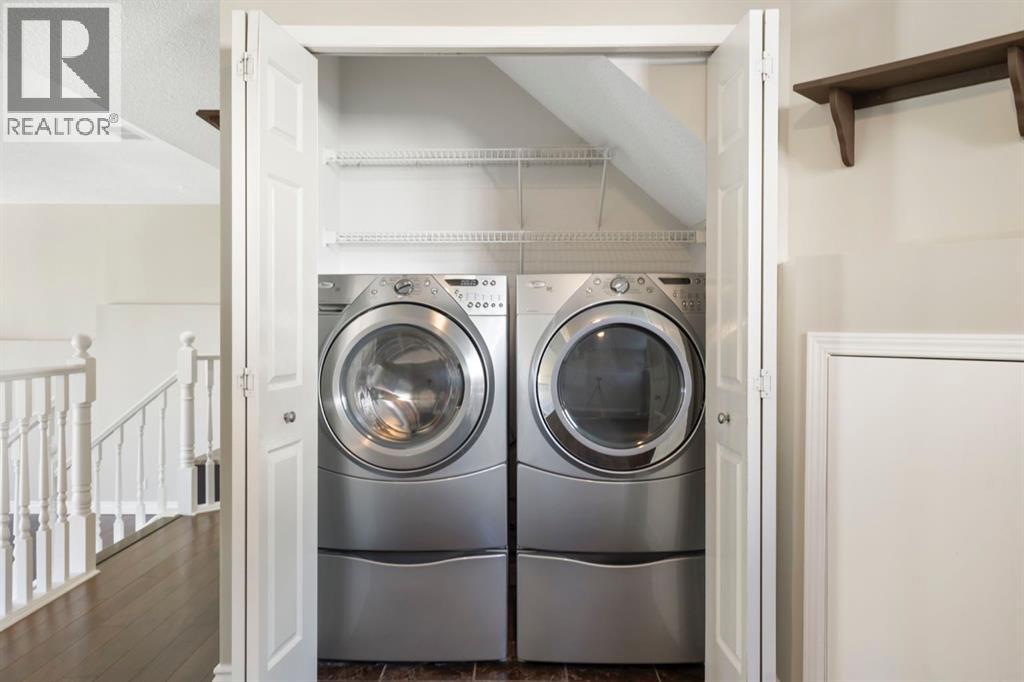 Incredible custom-built home on a pie-shaped lot in desirable Panorama Hills! The main floor features stunning site-finished, ebony-stained red oak hardwood floors and soaring vaulted ceilings with built-in speakers, creating a warm and inviting living space centred around a gas fireplace and triple-pane windows. The kitchen impresses with Corian countertops, an under mount sink, and recently upgraded stainless steel appliances, flowing seamlessly into the dining and living areas that overlook the spacious nook and massive backyard. The main floor also features an updated 4-piece bath, a large bedroom, a flexible second bedroom or office, and an additional flex space/living room off the kitchen. Upstairs, the primary suite is a true retreat with a walk-in closet with custom shelving and a renovated ensuite boasting a corner jetted tub, separate shower, and Corian counters. The walkout basement is an entertainer’s dream, featuring 12-foot ceilings ideal for a pool table or large recreational area, a dry bar, a full 3-piece bathroom, and direct access to a paving stone patio. Step outside to a massive backyard with mature landscaping, underground sprinklers, perennials, two sheds, and a composite deck with glass railing and natural gas BBQ hookup. A thoughtfully designed concrete staircase on the side of the home leads to the basement entrance through sliding patio doors. With a brand new roof and eves troughs (2025), triple-pane windows, AC, fresh paint, updated lighting, a professionally cleaned home and carpets, and a garage with sturdy plywood walls, this home is truly move-in ready. Don’t miss your chance to live in this thoughtfully upgraded, elegant, and spacious home in Panorama Hills—perfect for entertaining, relaxing, and enjoying every comfort. (id:53676)