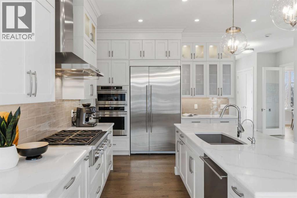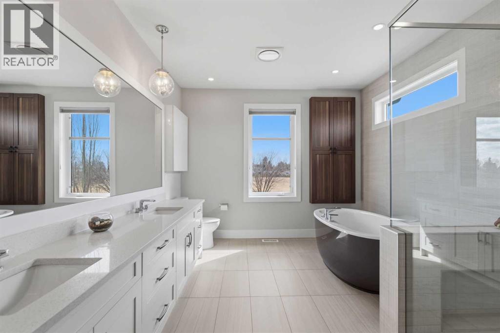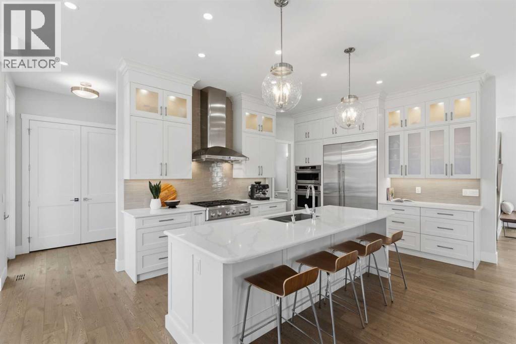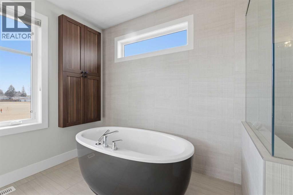 ***OPEN HOUSE Saturday April 25 from 12pm-3pm***Stunning luxury home in Lakeview by Matrix (Burntwood Homes), perfectly positioned overlooking a peaceful greenspace and just steps from the Lakeview Community Association, hockey rink, parks, and Connect Charter School. This exceptional property showcases premium finishings and beautiful materials throughout, with extensive custom woodwork on every level including a walk-in pantry, mudroom lockers, and fully built-out closets. The main floor offers a bright, open concept layout ideal for entertaining, highlighted by a gourmet kitchen, featuring GE Monogram appliances, an oversized island, and custom cabinetry. The living room is anchored by a striking full-height tiled fireplace flanked by built-ins, while large windows, light wood floors, and modern neutral tones create a warm, airy feel. A private office and formal dining room, separated by 8' French doors, complete the main level. Upstairs, three spacious bedrooms each feature their own ensuite and walk-in closet. The primary retreat is a true sanctuary with a freestanding soaker tub, oversized rain shower and dual walk-in closets with custom organizers. Double patio doors open to a private west-facing balcony overlooking the backyard. Convenient upper-floor laundry adds everyday ease. The fully finished basement extends the living space with a media room, recreation area, wet bar, fourth bedroom, and full bath, ideal for entertaining or relaxing. Additional upgrades including BRAND NEW 50-gallon Hot Water Tank in 2026, air conditioning, Hunter Douglas blinds throughout, a reverse osmosis water purification system, water softener, and a fully drywalled double detached garage for a clean, finished look with "Proslat" storage system. The beautifully landscaped and irrigated west facing backyard offers a turnkey outdoor space with gas line for barbecue, electronic awning to escape the hot summer sun and a spacious deck with built-in planters to enjoy the evening sunse ts. Located in one of Calgary’s most desirable communities, Lakeview offers excellent schools, parks, and amenities within walking distance, along with quick access to major routes and a short downtown commute. A truly exceptional home in a premier location. (id:53676)