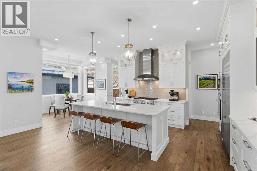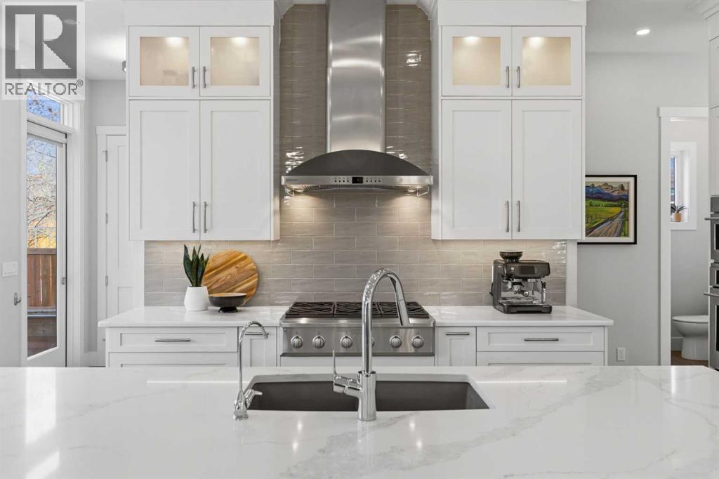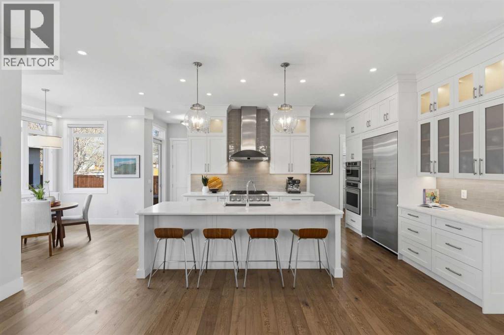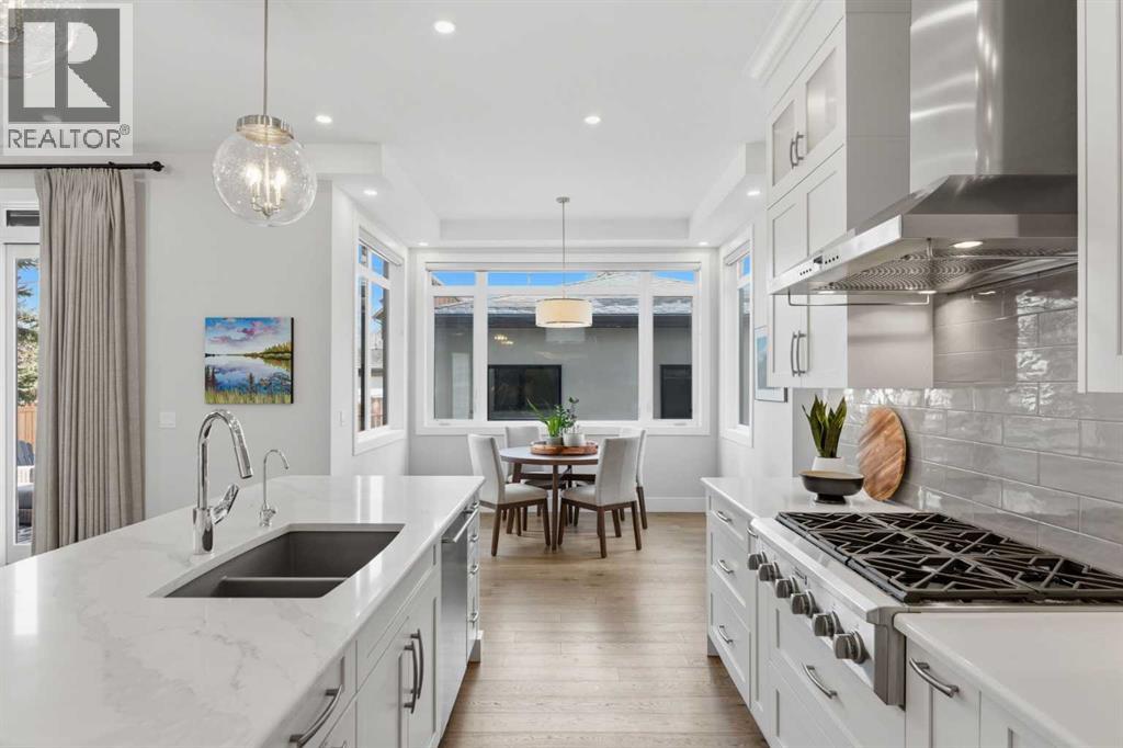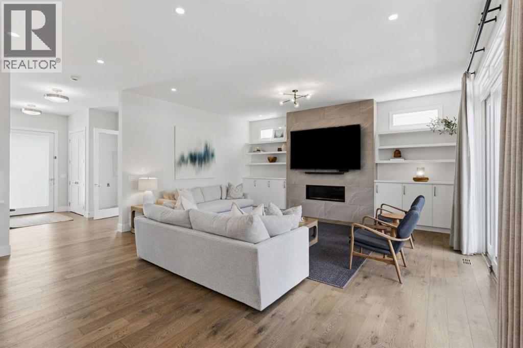 ***OPEN HOUSE Saturday April 25 from 12pm-3pm***Stunning luxury home in Lakeview by Matrix (Burntwood Homes), perfectly positioned overlooking a peaceful greenspace and just steps from the Lakeview Community Association, hockey rink, parks, and Connect Charter School. This exceptional property showcases premium finishings and beautiful materials throughout, with extensive custom woodwork on every level including a walk-in pantry, mudroom lockers, and fully built-out closets. The main floor offers a bright, open concept layout ideal for entertaining, highlighted by a gourmet kitchen, featuring GE Monogram appliances, an oversized island, and custom cabinetry. The living room is anchored by a striking full-height tiled fireplace flanked by built-ins, while large windows, light wood floors, and modern neutral tones create a warm, airy feel. A private office and formal dining room, separated by 8' French doors, complete the main level. Upstairs, three spacious bedrooms each feature their own ensuite and walk-in closet. The primary retreat is a true sanctuary with a freestanding soaker tub, oversized rain shower and dual walk-in closets with custom organizers. Double patio doors open to a private west-facing balcony overlooking the backyard. Convenient upper-floor laundry adds everyday ease. The fully finished basement extends the living space with a media room, recreation area, wet bar, fourth bedroom, and full bath, ideal for entertaining or relaxing. Additional upgrades including BRAND NEW 50-gallon Hot Water Tank in 2026, air conditioning, Hunter Douglas blinds throughout, a reverse osmosis water purification system, water softener, and a fully drywalled double detached garage for a clean, finished look with "Proslat" storage system. The beautifully landscaped and irrigated west facing backyard offers a turnkey outdoor space with gas line for barbecue, electronic awning to escape the hot summer sun and a spacious deck with built-in planters to enjoy the evening sunse ts. Located in one of Calgary’s most desirable communities, Lakeview offers excellent schools, parks, and amenities within walking distance, along with quick access to major routes and a short downtown commute. A truly exceptional home in a premier location. (id:53676)