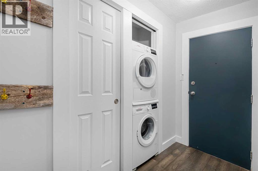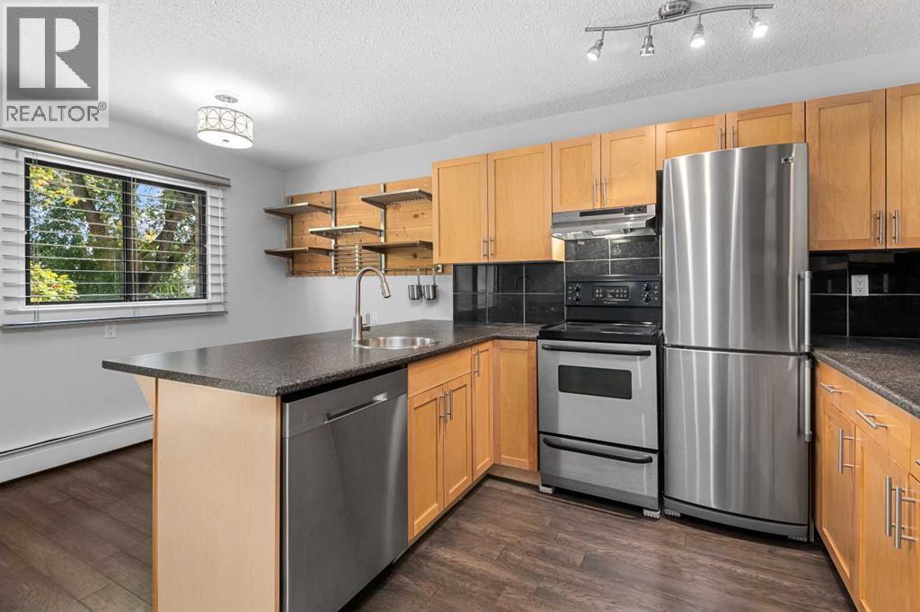 Move in ready, a clean and vacant 1 bedroom unit only a few steps up from side entrance is located on a quiet tree lined street across from the tennis courts. As you walk up to the building the clean well maintained condition of your new home and surrounding properties is evident. Unit 6 just steps up from the ground level is open and bright, modern and clean, Move in today, enjoy the neighborhood tomorrow, there is nothing this unit needs. Facing east with a gorgeous tree just outside the large sliding door your unit will be cooler in summer and bright and cheerful all year round. Lots of cabinets and counter space with upgraded appliances including an almost new washer/dryer this place has it all. The kitchen features an open plan with a breakfast bar which gives you some flexibility for the dining area to be used for dining/games etc or possibly a great space for a home office. There are some storage spaces in the building which are not exclusive use spaces and also a wonderful roof top patio with fantastic views of downtown and the open park space. The well run and professionally managed condo has had some amazing upgrades recently including the roofing material and also the exterior has been upgraded to Hardie Board siding and new cladding. This is an indicator that the collective owners are making great decisions and do things right. Pride of ownership goes beyond your four walls here. Quick possession is an option. Book to view today. (id:53676)