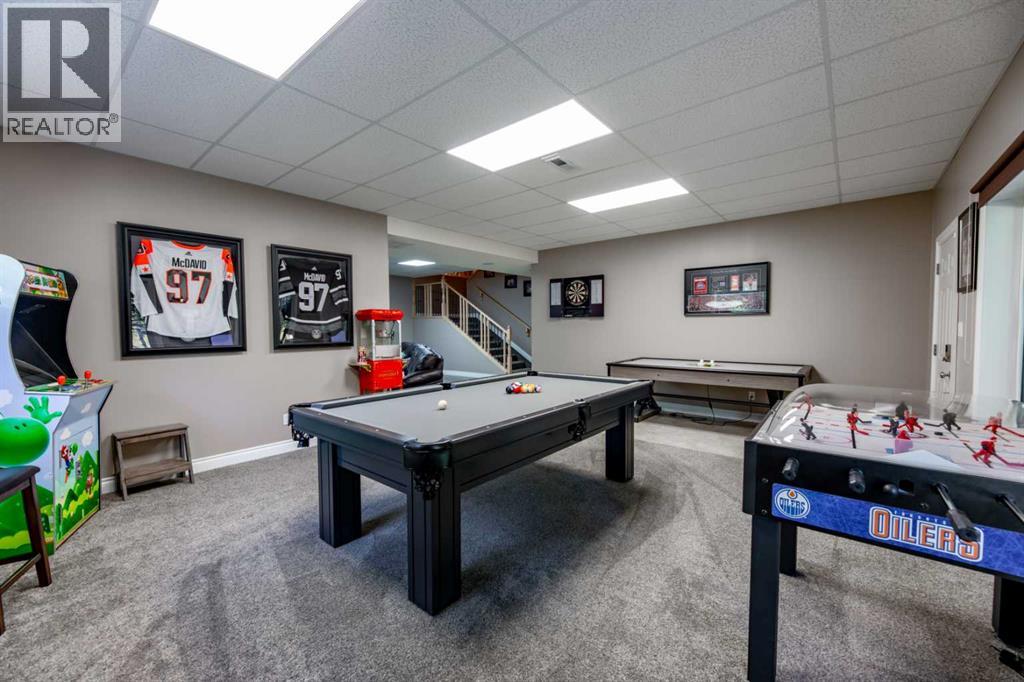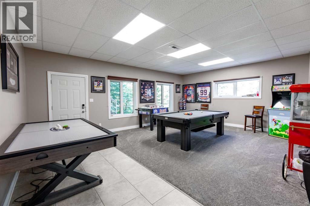 This tremendous acreage property offers nearly 8 acres of land complete with a double detached garage, 25’x85’ quonset shop, and a beautifully finished 2 storey residence. The fully developed home offers 6 bedrooms and 4 and a half bathrooms. On the main level, your guests will be greeted by the towering vaulted ceiling at the front entry. However, as the owner, you may choose to come in from the garage through the side door and into the massive boot room. Also on the first floor, the kitchen is an absolute show stopper. Stone counters, a huge prep island, loads of cabinet storage, upgraded appliances, and corner pantry. The kitchen is adjacent to the large dining room and separated from the living room only by the wood fireplace. A very nice layout for entertaining friends and family. In addition, the main floor offers a half bath and laundry in the boot room. The primary bedroom is also on this level and it offers a 5 piece ensuite bath with soaker tub and separate double shower, a spacious walk-in closet, and patio door to the back deck with hot tub & barrel sauna. Unwind and enjoy a spa-like experience at the end of each day! On the upper level, there are 3 bedrooms, one with a full ensuite bath and another with a walk-in closet. Plus, there’s another full bathroom upstairs along with a massive bonus room serving as a perfect home gym and playroom. The walkout basement boasts a great floor plan with a family/media room separate from a spacious games room. There are two more bedrooms downstairs and another full bathroom. The heated detached garage is 28’x28’ and was built close to the house with convenience in mind while the shop is tucked away from the home creating a great set up for a home based business. The shop has radiant heat, a bathroom, and a fenced compound outside. Mechanically, this home has been upgraded with the boiler system being replaced in the house in 2022, and the one in the garage done in 2023. The home is air conditioned and the H RV was replaced in 2019 and hepa filter system added in 2021. And finally, this property features a heated outdoor pool, perfect for those hot summer days! The driveway is gated and the lot is extensively landscaped offering several outbuildings, a concrete firepit area, and composite decking. A rare opportunity to own an acreage property that has so much to offer just minutes from town! (id:53676)