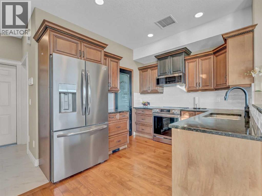 Take in the beautiful river valley views from this spacious 3-bedroom executive condo in the Palisades. This unique three-story walkout is designed to make the most of the scenery, with large picture windows on the main and upper levels that fill the home with natural light and frame the stunning landscape. The layout is perfect for anyone wanting extra space or privacy, as each floor features its own bedroom and bathroom. Whether you have family staying with you or guests visiting, everyone can enjoy their own comfortable area. Inside, the home features quality finishes throughout, including maple cabinetry, granite countertops, stylish flooring, and a full appliance package. The condo has been well cared for and offers a warm and inviting feel the moment you walk in. The Palisades is a one-of-a-kind development in Medicine Hat, built into the hillside so every unit benefits from the gorgeous river hills and valley views. It’s a quiet, scenic place to call home! This condo truly needs to be seen in person to appreciate everything it offers—come take a look and enjoy the view for yourself! (id:53676)