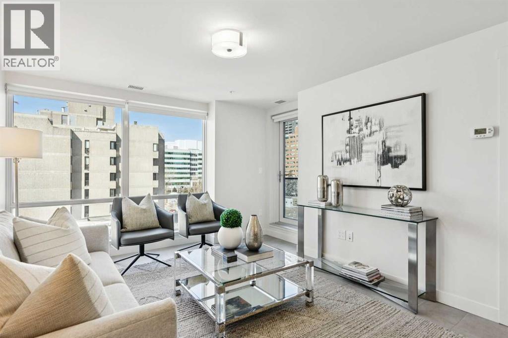 Welcome to The Park, one of Calgary's most sought-after addresses, perfectly positioned across from Central Memorial Park and Haultain Park, two designated historic sites that protect your views and guarantee the green space, natural light, and privacy you'll enjoy for years to come. This stunning 2-bedroom, 2-bathroom plus den condo on the 6th floor features floor-to-ceiling windows facing northwest, flooding the living room with natural light while framing spectacular views of the park and Calgary skyline. The sleek kitchen features granite countertops, stainless steel appliances, and a large island flowing seamlessly into the open living and dining areas, equally suited for relaxed evenings in or entertaining guests. The primary suite offers a walk-through closet and private 4-piece ensuite, while the versatile den and second bedroom provide flexibility for every lifestyle. Step outside to your private balcony with a gas BBQ hookup and soak in the park and skyline views. Additional features include in-suite laundry, central air conditioning, titled underground parking, and a storage locker. Residents enjoy concierge service, a fitness centre, social lounge, rooftop patio with community garden and BBQ area, guest suite, bike storage, and EV charging. This is a pet friendly building with some of Calgary's best dog walking right outside your door, with Central Memorial Park, Victoria Park, and Haultain Park all within easy reach. Close enough to walk to the restaurants and bars of 17th Avenue yet far enough removed to come home to genuine peace and quiet. This is inner-city living at its finest. (id:53676)