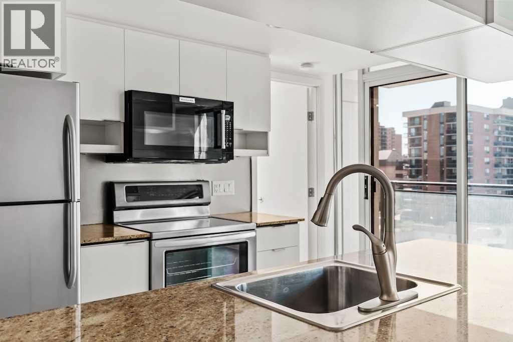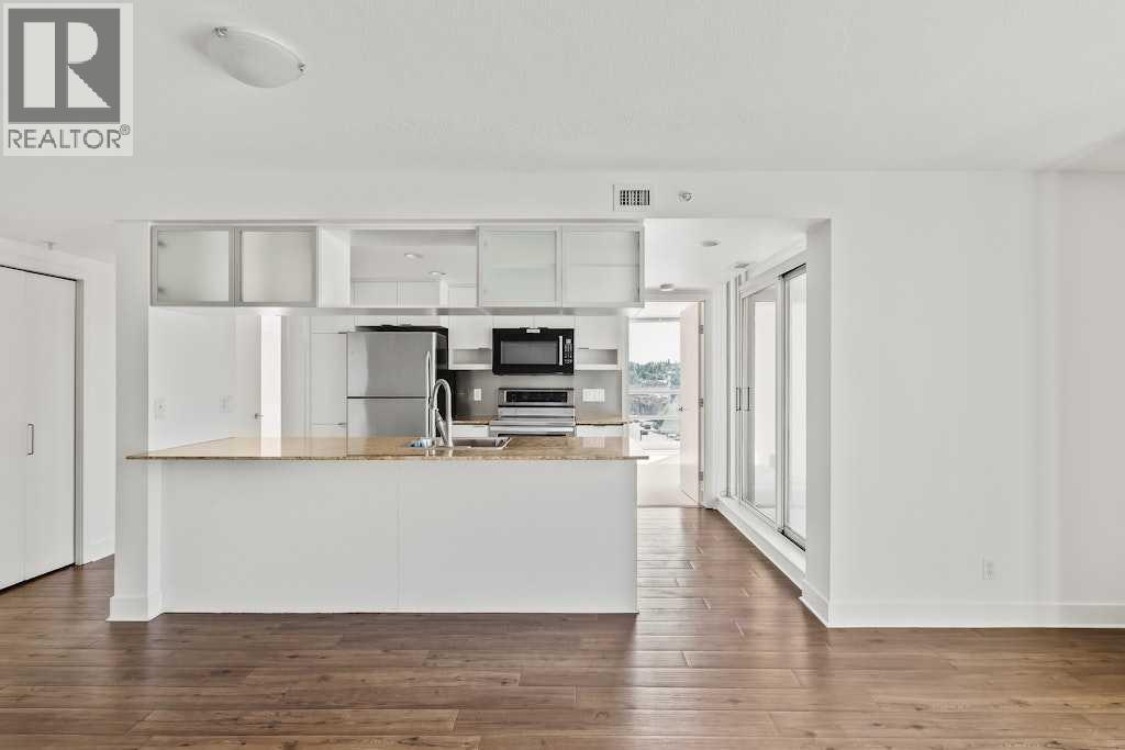 MUST SEE! This bright and beautiful 2-bed, 2-bath + den SW CORNER unit has been freshly painted so you can simply move in and enjoy the urban lifestyle. The large main living area can accommodate a variety of furniture arrangements which can include a dining table for hosting fiends and family. You'll love entertaining too, because everything is centred around the kitchen highlighted by a large island, granite countertops and stainless steel appliances. Enjoy the setting sun shining through the floor-to-ceiling windows or on the west-facing balcony. Both bedrooms also feature those floor-to-ceiling windows and boast their own walk-in closets too. The primary bedroom even has a completely private full ensuite bathroom, while the second full bathroom accommodates for guests or could be perfect for a roommate if you wanted one. Whether you need a home office, art studio, reading nook or study space the versatile den offers a designated area for anything you might need. This offering also includes a heated and secure titled underground parking spot, as well as a conveniently located storage locker. With a full gym in the building you might not need to leave, but when you do this location is a short walk to some of Calgary's best shopping, restaurants, bars, lounges and Calgary's extensive river pathway system. Now's your chance to own in the heart of Calgary. DON'T MISS OUT! (id:53676)