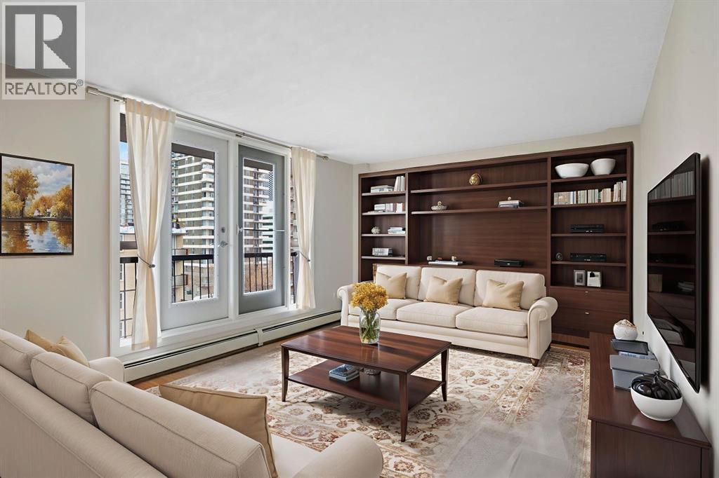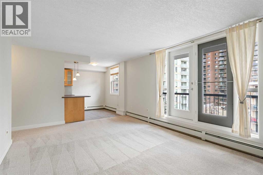 Step into this 2 bedroom TOP FLOOR CORNER UNIT in the heart of the Beltline, and enjoy top floor living with great downtown views. The Avenue is a concrete, quiet building in the heart of the Beltline, and this unit has in-suite laundry. The entire unit has been freshly painted and has newer high quality carpet, and features 833 square feet of living space. The balcony affords wonderful downtown views and extends the living space, providing generous light during the day and a downtown light show at night. A well laid out kitchen with a breakfast bar adjoins the dining room. The living room is open to both the dining room and the kitchen, creating a functional and open floor plan. Two spacious bedrooms with good sized windows are nicely located affording privacy and a quiet location in the unit. A 4-piece bath, and separate and defined front entry complete the floor plan. This unit comes with one assigned parking stall, and an assigned storage locker. This is a fantastic opportunity to live in or invest in a rental property, in the premier location of the building. The Avenue is within walking distance to downtown, all the amenities of 17th Avenue, and offers the quiet enjoyment of an adult only, concrete building. (id:53676)
