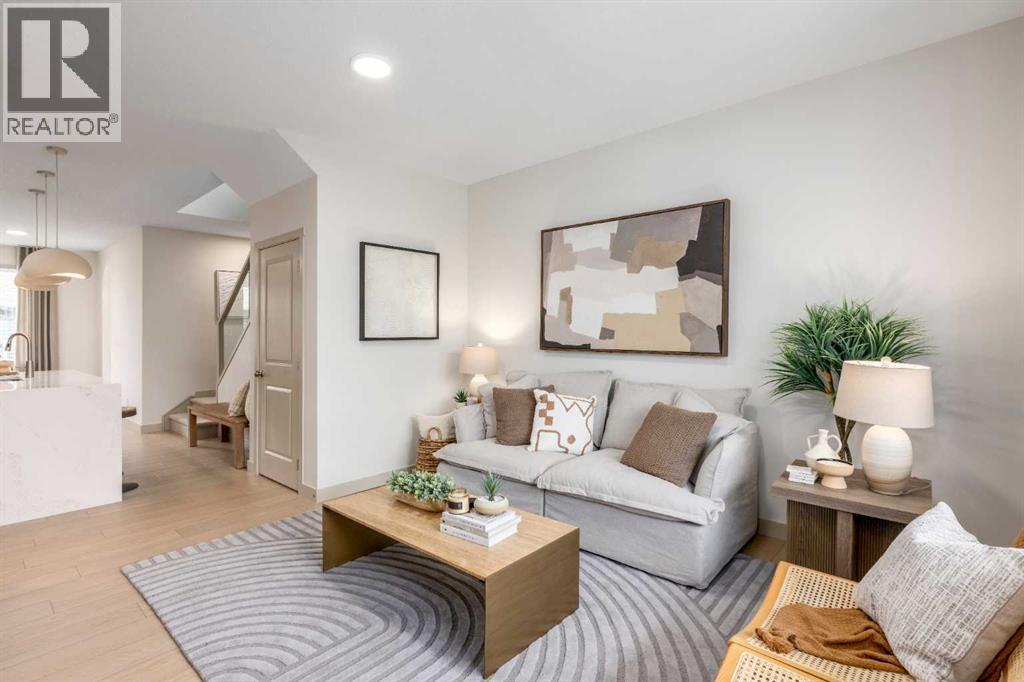 MOVE-IN READY, NO CONDO FEES, AND SITTING RIGHT WHERE FIRST-TIME BUYERS AND INVESTORS WANT TO BE—this Savanna townhome checks ALL the boxes that actually matter. Immediate possession means no waiting, no guessing, and no monthly fees quietly eating into your budget.The main floor is open, efficient, and refreshingly well thought out. The kitchen anchors the space with a BREAKFAST BAR ISLAND, QUARTZ COUNTERTOPS, UPGRADED CABINETRY, matte black hardware, a CHIMNEY-STYLE HOOD FAN, and a BUILT-IN MICROWAVE—clean lines, practical finishes, and nothing overdone. Durable LVP hard-surface flooring keeps daily life low-maintenance, while the layout flows easily from cooking to dining to relaxing without wasted space.Upstairs, three bedrooms—including a comfortable primary with walk-in closet—are paired with UPPER-FLOOR LAUNDRY and two full bathrooms finished with matching quartz, keeping the look cohesive and easy to live with. The neutral palette is intentional: easy to furnish, easy to rent, and unlikely to date itself anytime soon.Downstairs, the unfinished basement leaves room to grow, add value, or keep things simple. Out back, rear lane access and a DEDICATED PARKING PAD add everyday practicality—without the rules, boards, or monthly fees that often come with townhome living.Set in the heart of Savanna, with QUICK ACCESS TO TRANSIT, SCHOOLS, SHOPPING, AND EVERYDAY AMENITIES, this is the kind of property that works just as hard as you do. A smart entry point, a solid investment, and a home that’s ready when you are. • PLEASE NOTE: Photos are of a finished Showhome of the same model – fit and finish may differ on finished spec home. Interior selections and floorplans shown in photos. (id:53676)