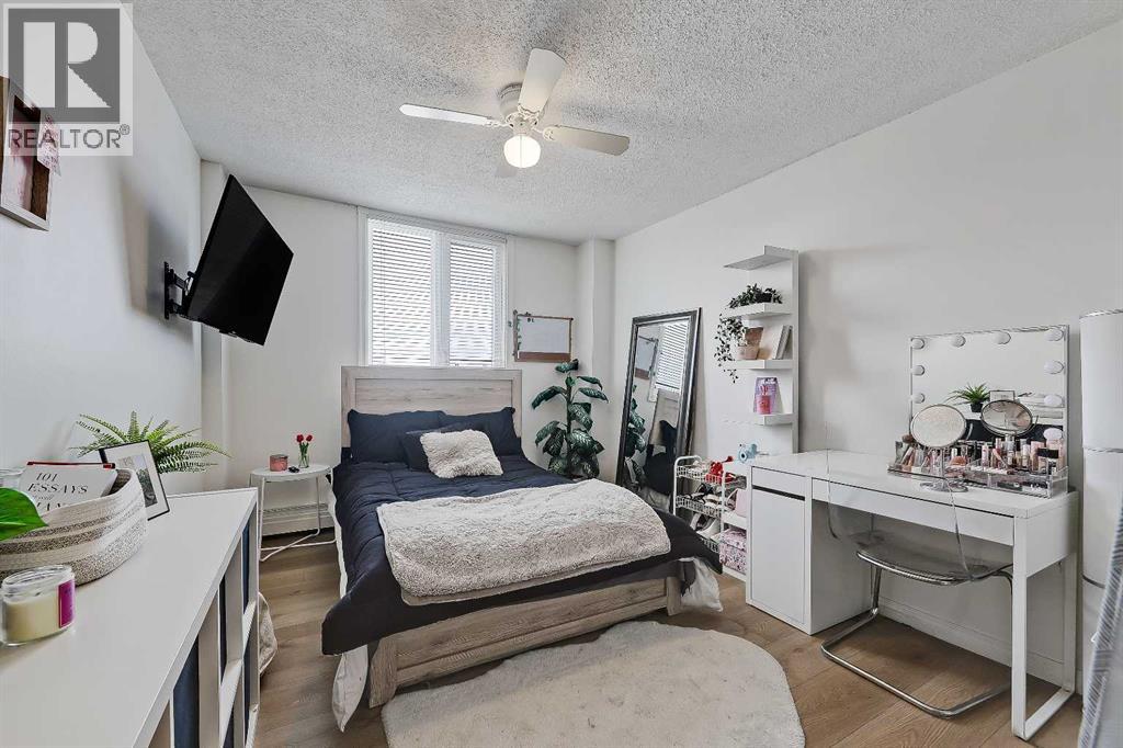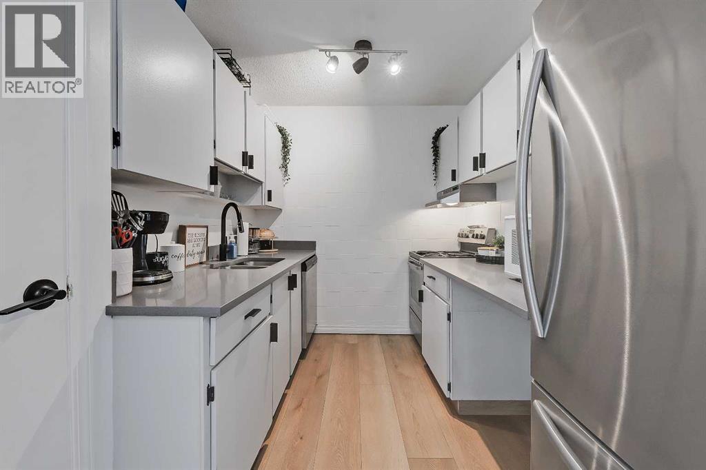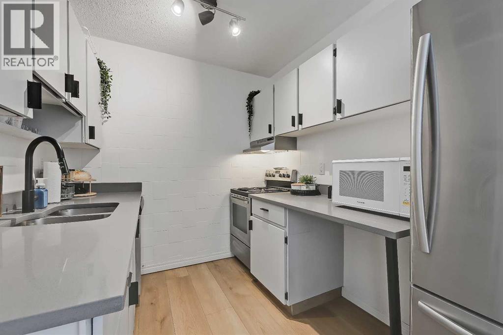 LOVELY UPDATED 2 BEDROOM END UNIT | PRIME INNER-CITY LOCATION | PANORAMIC WEST VIEW!This updated 2-bedroom condominium in Kensington Court offers a spacious layout, beautiful west-facing view, pet-friendly living and the added benefit of end-unit privacy with only one shared non-bedroom wall, all in an unbeatable location near downtown, transit, parks and all the lifestyle amenities that make Hillhurst/Kensington such a special place to call home. Whether you are an investor looking for a strong revenue property or a student or professional seeking comfortable inner-city living, this home checks all the right boxes.The unit itself offers a comfortable and functional layout with a panoramic view that brings in natural light and adds to the sense of space throughout the main living area. The dining room is generously sized and easily accommodates a full dining set, while the adjacent living room provides plenty of room to relax or entertain. The galley-style kitchen has been thoughtfully updated with quartz countertops, newer stainless steel appliances, updated matte black hardware, refreshed cabinetry, a double undermount sink with pull-down sprayer and a pantry storage. Both bedrooms are spacious and feature full-height double closets along with larger west-facing windows. The updated 4-piece bathroom includes a newer vanity and toilet, oversized mirror and modern lighting. Finishing touches such as luxury vinyl plank flooring, newer paint, venetian blinds, ceiling fans in both bedrooms, a roomy front entry and a rare in-suite storage room that offers secure, practical space for bikes, seasonal items and everyday extras. Convenience continues beyond the unit with a covered parking stall directly beside the rear entrance, one of only a handful in the complex, and laundry facilities available on every floor of the building.Beyond the unit, this location truly shines. You are within walking distance to Riley Park, the Sunnyside LRT station, the Bow River pathway system and Prince’s Island Park, with the energy and charm of Kensington Village just moments away. Spend your weekends exploring local favourites like Hayden Block, The Mash, Blanco Cantina, Pie Junkie, Higher Ground, Deville Coffee, Pages on Kensington, Hot Wax Records and The Plaza Theatre, while everyday essentials including Safeway and Shoppers Drug Mart are just around the corner. A smart investment and a fantastic place to live, all in one exceptional inner-city location. (id:53676)