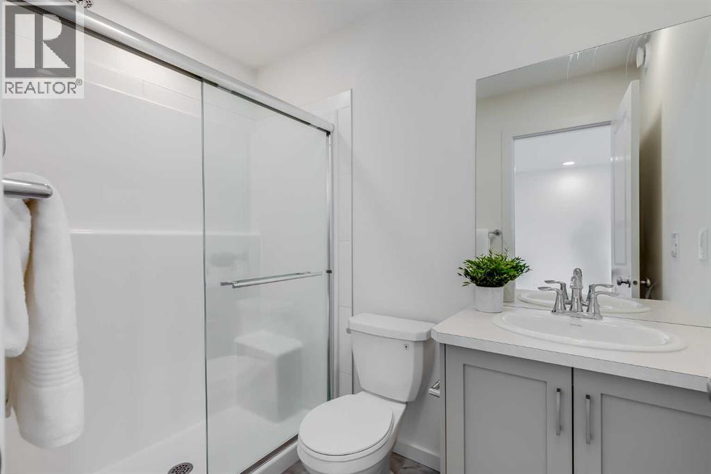 Tucked into the growing community of Belmont, this stylish semi-detached two-storey home offers over 2,200 square feet of thoughtfully designed living space, including a fully finished basement with a legal suite and private entrance—an ideal setup for multi-generational living or rental income. The welcoming front porch leads you into a bright, open-concept main floor where natural light pours through the windows, highlighting the seamless flow between the living, dining, and kitchen areas. A cozy front living space sets the tone for relaxing evenings or casual entertaining. At the heart of the home, the kitchen impresses with light grey cabinetry, quartz countertops, a sleek white tile backsplash, stainless steel appliances, a large central island, and a walk-in pantry. The adjacent dining area offers plenty of room for gatherings, while the mudroom at the back entrance keeps daily life organized. An office nook tucked to the side provides a quiet place to work from home or manage household tasks, and a two-piece powder room completes the main floor layout. Upstairs, a central bonus room offers a flexible second living space, ideal as a media area, playroom, or reading lounge. The spacious primary bedroom features plush carpeting, a walk-in closet, and a private three-piece ensuite with an oversized shower and seat. Two additional bedrooms share a four-piece bathroom, and the upper-floor laundry room adds extra convenience. Downstairs, the fully developed basement offers a legal suite with its own entrance, making it well-suited for extended family, guests, or tenants. It includes a comfortable living and dining area, kitchen, separate bedroom, four-piece bathroom, and in-suite laundry. The backyard is a blank slate, ready for your personal touch—whether you envision a garden, outdoor seating area, or a detached garage. Alley access leads to a rear double gravel pad, offering convenient off-street parking. Belmont offers a promising lifestyle with established and future amenities. You’re a short five-minute drive to Township Shopping Centre, Shawnessy’s array of shops, restaurants, and conveniences, including the YMCA, Cardel Rec Centre, and public library. Everyday essentials are just a 15-minute walk away at Sobey’s, Shoppers Drug Mart, and Kildares Ale House. Commuting is straightforward with quick access to Macleod Trail and Stoney Trail. The community continues to grow, with plans for a City of Calgary Recreation Centre, a library, multiple schools, and a future LRT station that will enhance connectivity even further. Take advantage of your opportunity to see this incredible property in person—book your showing today! Be sure to check out the floor plans and 3D tour for a closer look before your visit. (id:53676)