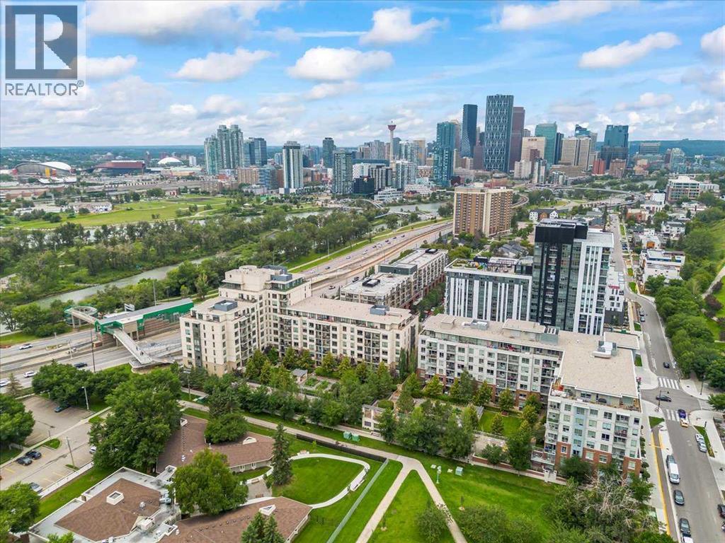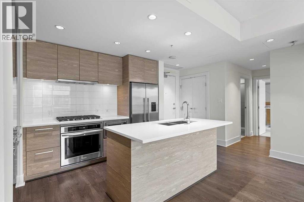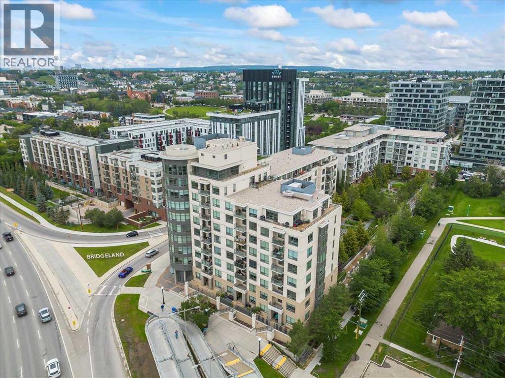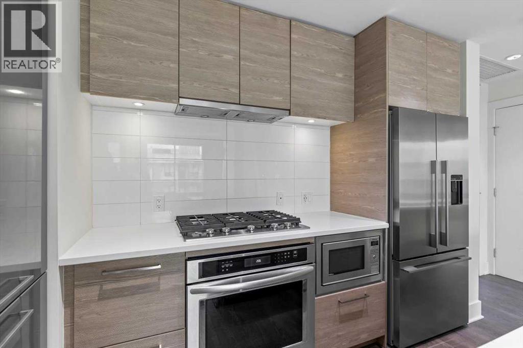 Welcome to the vibrant community of Bridgeland. Walking distance to Downtown, Calgary Zoo, Restaurants, Parks, and pathways for long walks and bicycle rides. This well-managed condo complex has lots to offer, including a Gym, Courtyard, Community BBQ, and more. The building entrance is 1 minute walking distance to the LRT through the crossover bridge! This modern, freshly painted 2-bedroom unit has 1 heated underground titled parking and separate heated storage. The Master bedroom has stunning views of Downtown with an ensuite bath and a large second bedroom with city views and a second full bath—open-concept living space. The modern kitchen comes with upgraded built-in appliances, a gas range, a microwave oven, a hood fan, lots of cupboard space, quartz countertops, and an island with seating extension ready to entertain, a dining area, and the bright living room offers large windows overlooking city views. The Urban kitchen boasts a 5-burner gas stove, hood fan, microwave oven, a bottom freezer fridge, and plenty of cupboard space. This unit shows 10 out of 10. Call for a private showing. (id:53676)