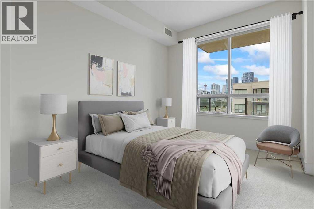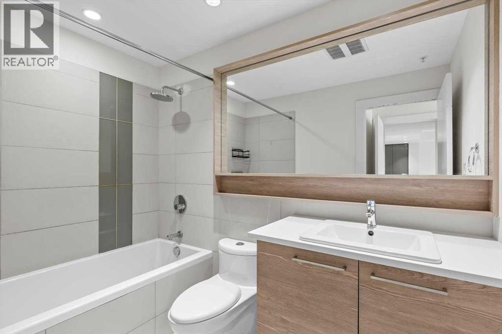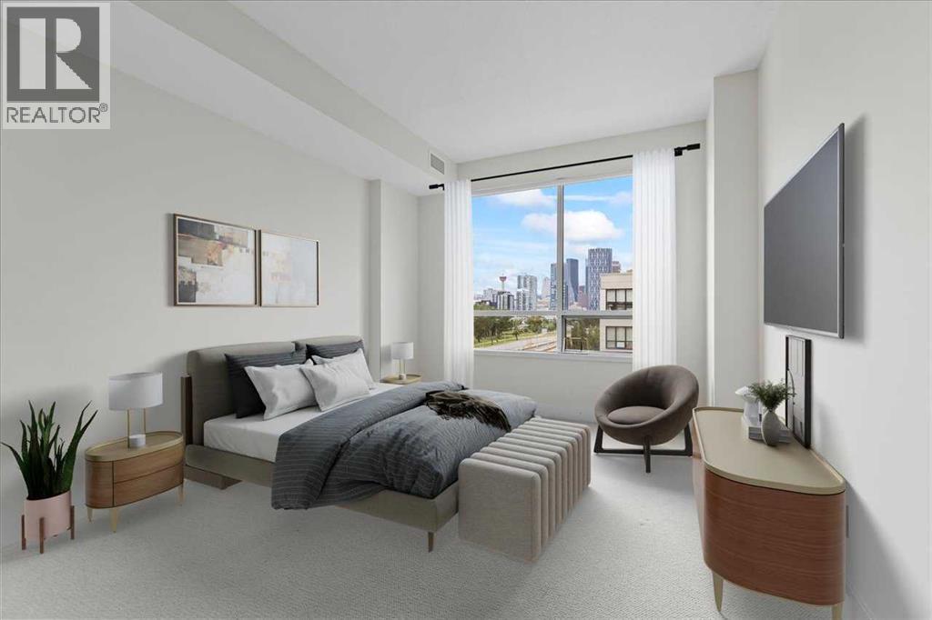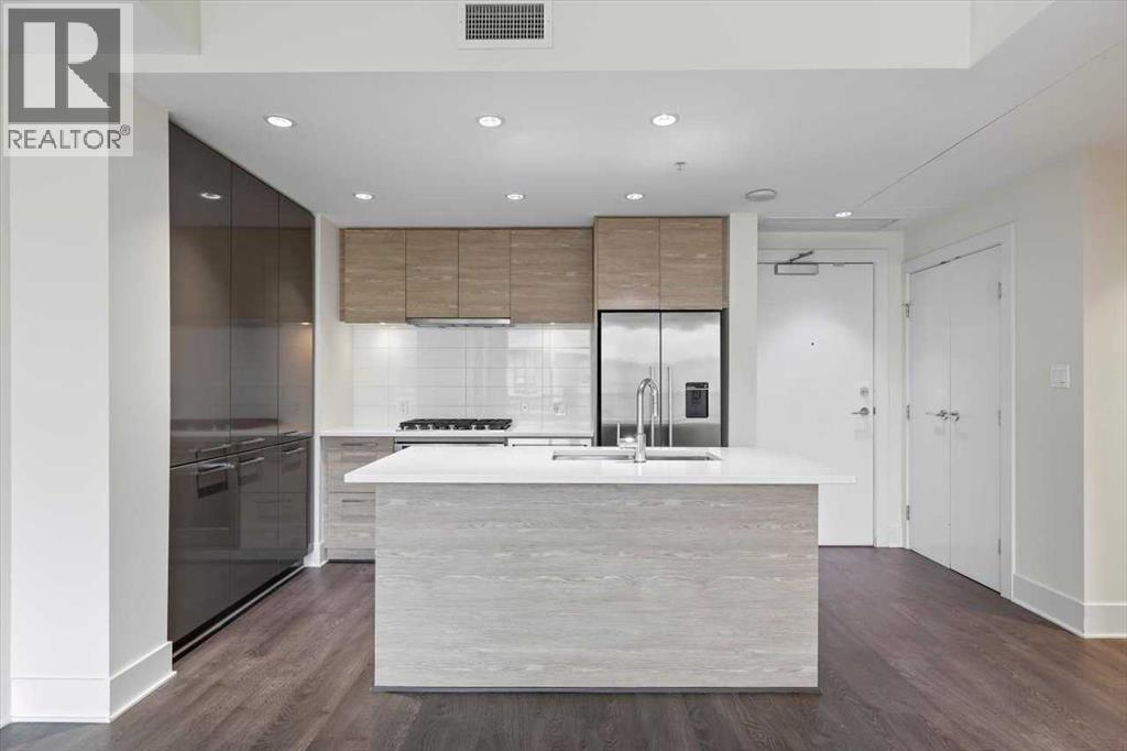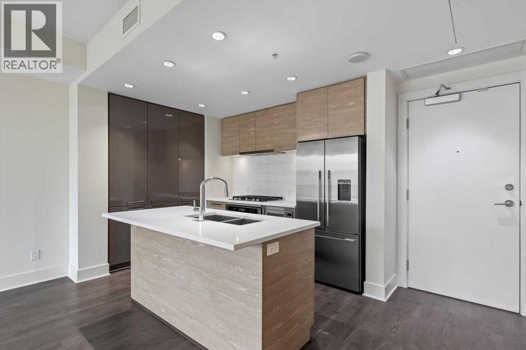 Welcome to the vibrant community of Bridgeland. Walking distance to Downtown, Calgary Zoo, Restaurants, Parks, and pathways for long walks and bicycle rides. This well-managed condo complex has lots to offer, including a Gym, Courtyard, Community BBQ, and more. The building entrance is 1 minute walking distance to the LRT through the crossover bridge! This modern, freshly painted 2-bedroom unit has 1 heated underground titled parking and separate heated storage. The Master bedroom has stunning views of Downtown with an ensuite bath and a large second bedroom with city views and a second full bath—open-concept living space. The modern kitchen comes with upgraded built-in appliances, a gas range, a microwave oven, a hood fan, lots of cupboard space, quartz countertops, and an island with seating extension ready to entertain, a dining area, and the bright living room offers large windows overlooking city views. The Urban kitchen boasts a 5-burner gas stove, hood fan, microwave oven, a bottom freezer fridge, and plenty of cupboard space. This unit shows 10 out of 10. Call for a private showing. (id:53676)