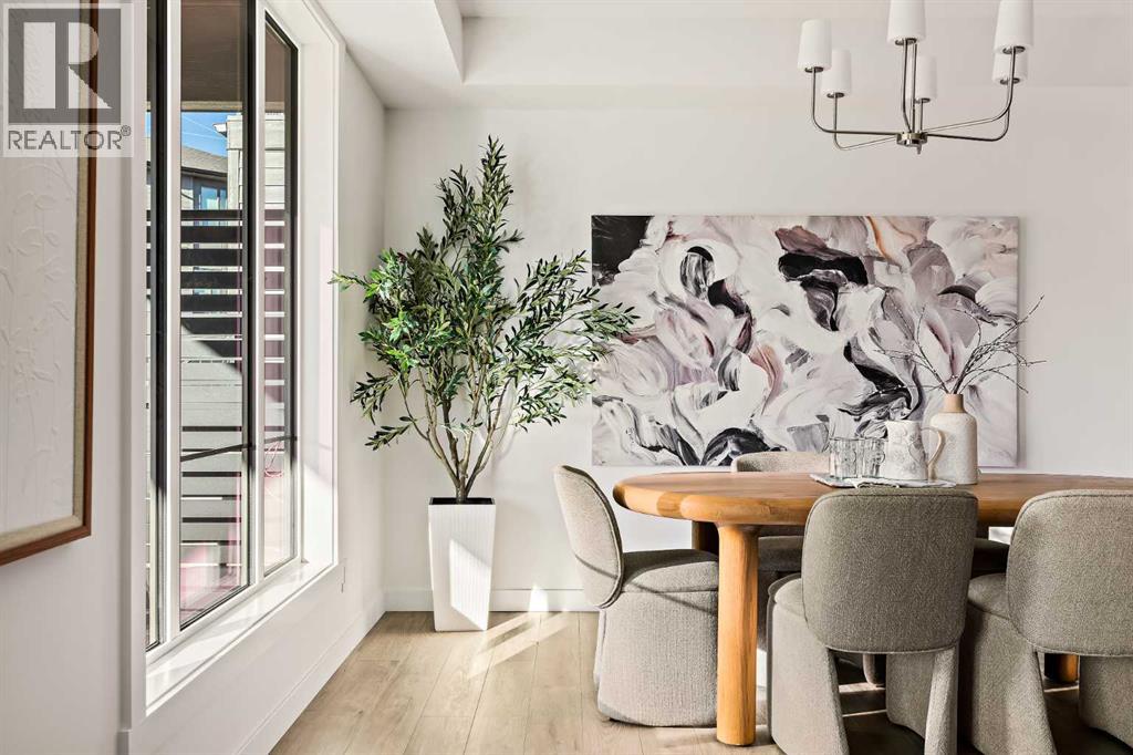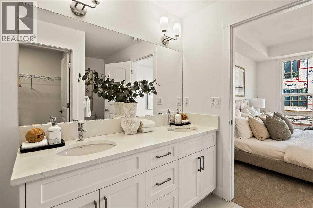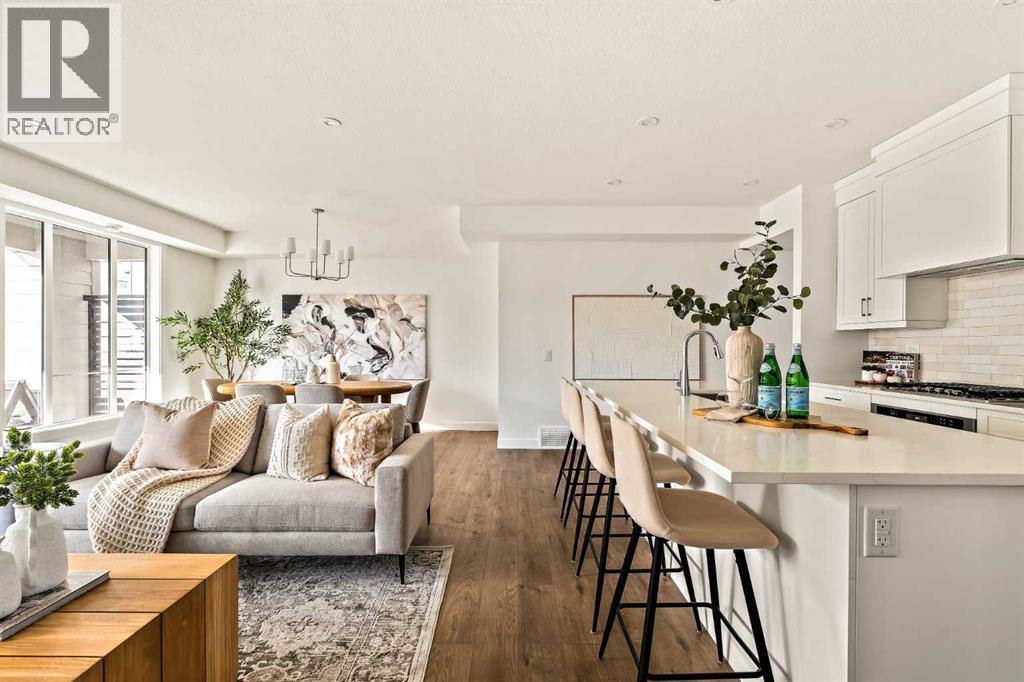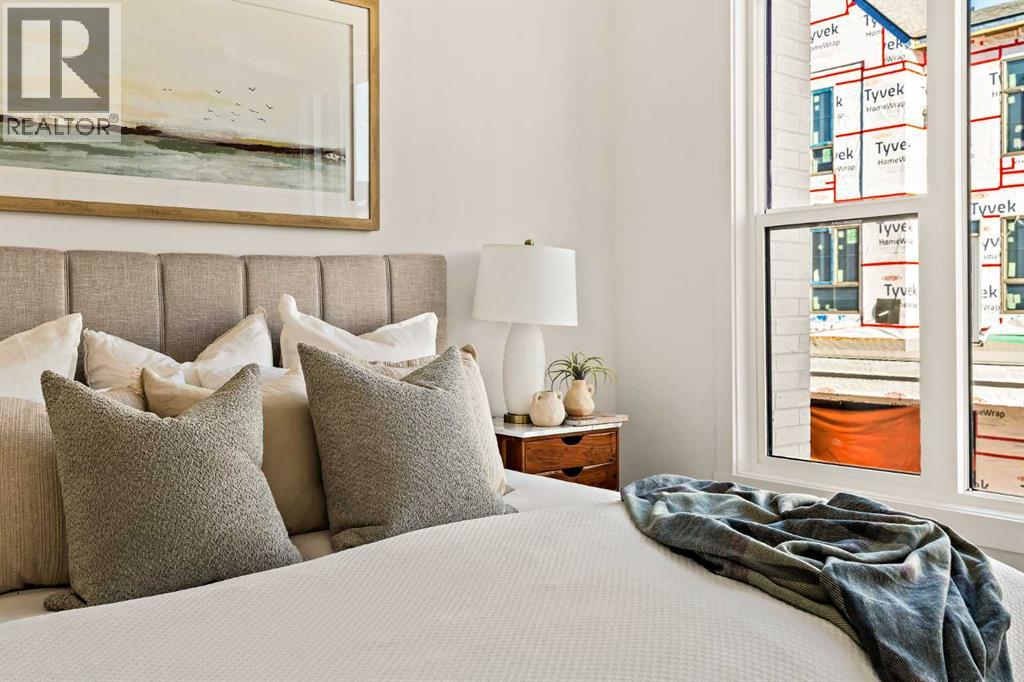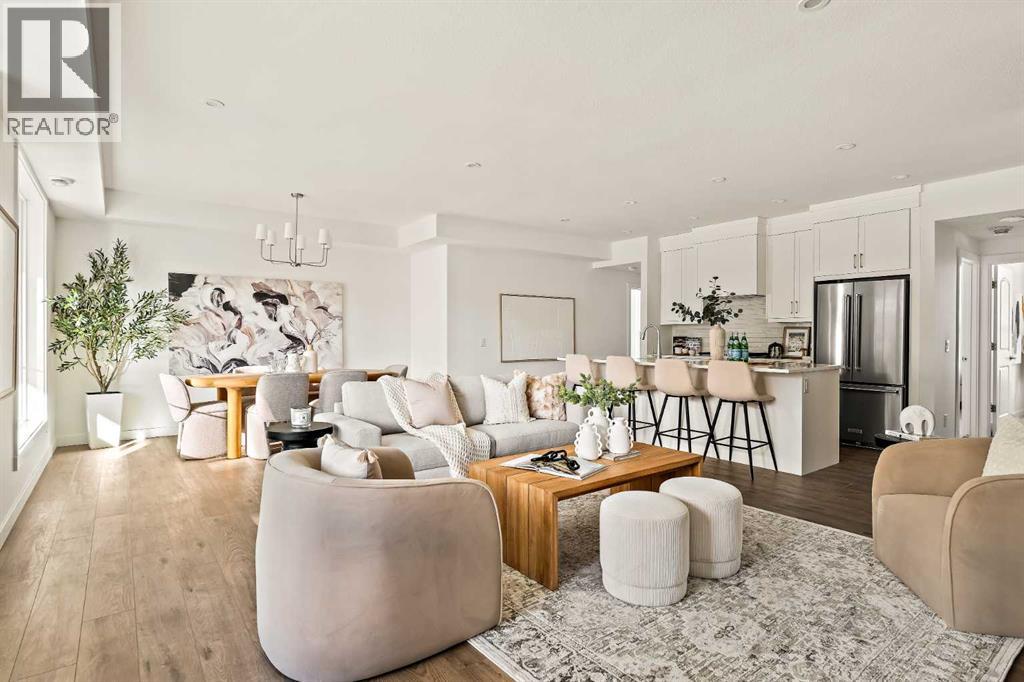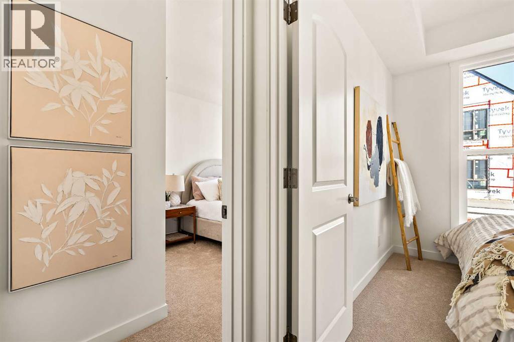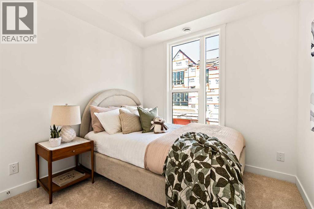 Welcome to the Regent at Crown Park - a thoughtfully designed townhouse that offers single-level bungalow style living without compromise. Designed with down-sizers in mind, this maintenance-free townhouse combines a bungalow lifestyle with a double attached garage - all while giving you a maintenance-free lifestyle, perfect for those who travel, or simply just don't want the hassle of exterior maintenance, landscaping or snow removal! This brand new 3 bedroom, 2 bathroom townhome has nearly 1,300 ft2 of living space over one level and a lower level with virtually endless storage and a private double attached garage! The brilliantly designed living area was created for entertainment with a central kitchen that opens to the living and dining areas with a wall of windows that flood the space with natural light. The timeless kitchen has white shaker cabinets, light quartz countertops and a suite of built-in appliances including a chimney hood fan, gas cooktop and built-in oven. The sprawling kitchen overlooks both the living and dining areas, ensuring the chef is never left out. A central fireplace with floor-to-ceiling plaster finish anchors the main living area with ample space for 6 to sit comfortably. The large dining area has space for a table and buffet if desired, providing flexible furnishing options to meet your needs. The primary suite is located at the back of the home and features a large walk-in closet and spa-inspired ensuite with dual sinks and a tiled walk-in shower. The centrally located laundry room, complete with upper cabinetry and a countertop for added convenience, perfectly separates the primary suite from secondary rooms for optimal privacy. Two additional bedrooms and a full bathroom round out this expansive single-level living space. The secondary rooms provide added flexibility for a guest room(s), home office, media room or studio space - while keeping a broad appeal for resale value. The lower level has a large storage room and oversized ut ility room (~17'x7') that could easily be used for a hobby space. An oversized double attached garage completes the interior of the home. Lastly, a large covered southwest-facing patio, spanning over 26' wide, provides the perfect outdoor living space with views overlooking the park and is complete with a gas line and hose bib for added convenience to everyday living. A bungalow style townhouse with a double attached garage is an exceptionally rare find - don't let this opportunity pass by. Purchase with peace of mind - this brand new home includes a comprehensive builder warranty + Alberta New Home Warranty. Located just minutes from downtown, countless amenities and in an established and developed area, you can move into your new home with confidence - knowing all that is around your beautiful new home. (id:53676)