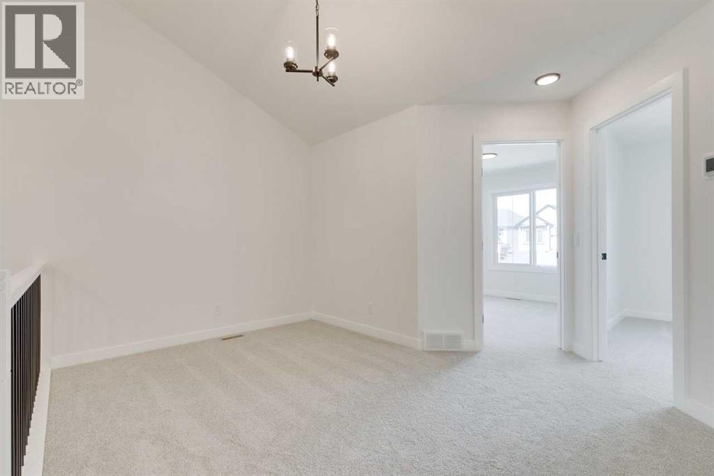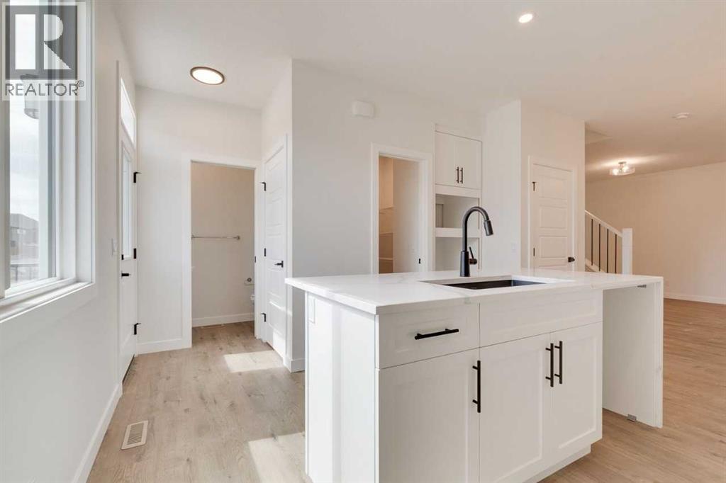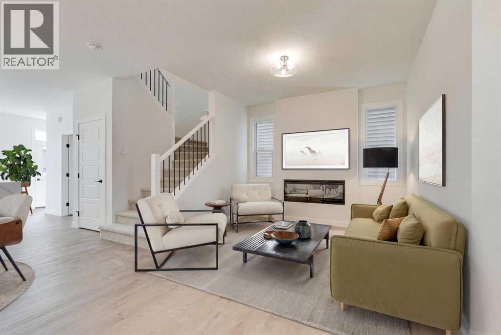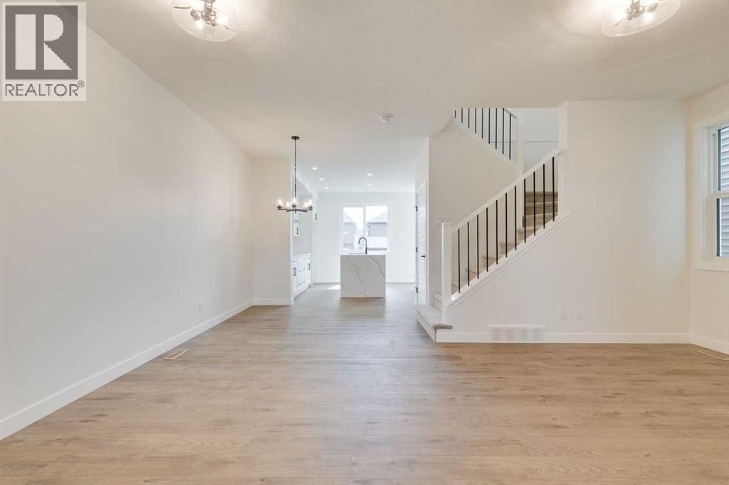 Discover The Onyx by Sterling Homes Calgary, a modern and thoughtfully designed home built by an experienced builder with over 70 years of history. This home features designer-selected finishes, energy-efficient construction, and smart-home technology for contemporary living.The kitchen is equipped with built-in stainless steel appliances, quartz countertops with a waterfall-edge island, and a walk-in pantry. The main floor includes a versatile den and a side entrance. Upstairs, enjoy a spacious loft with vaulted ceiling and an electric fireplace for added comfort. The primary ensuite offers a tiled walk-in shower and a vanity with full-height drawers, while LVP flooring adds durability throughout the bathrooms and laundry area. Home also features a 11' x 11' rear deck.This Built Green certified home includes triple-pane windows, a high-efficiency furnace, a solar chase for a future-ready setup, and an electric-vehicle charger rough-in. Smart-home features include a programmable thermostat, doorbell camera, smart front-door lock, and motion-activated lighting, all connected through a central smart-home hub. Photos are representative. (id:53676)