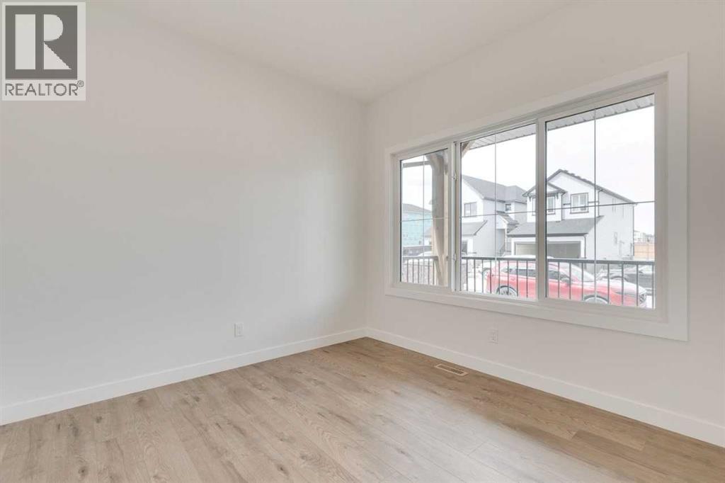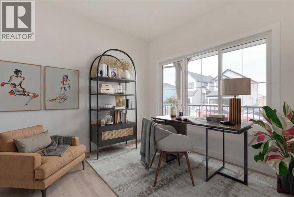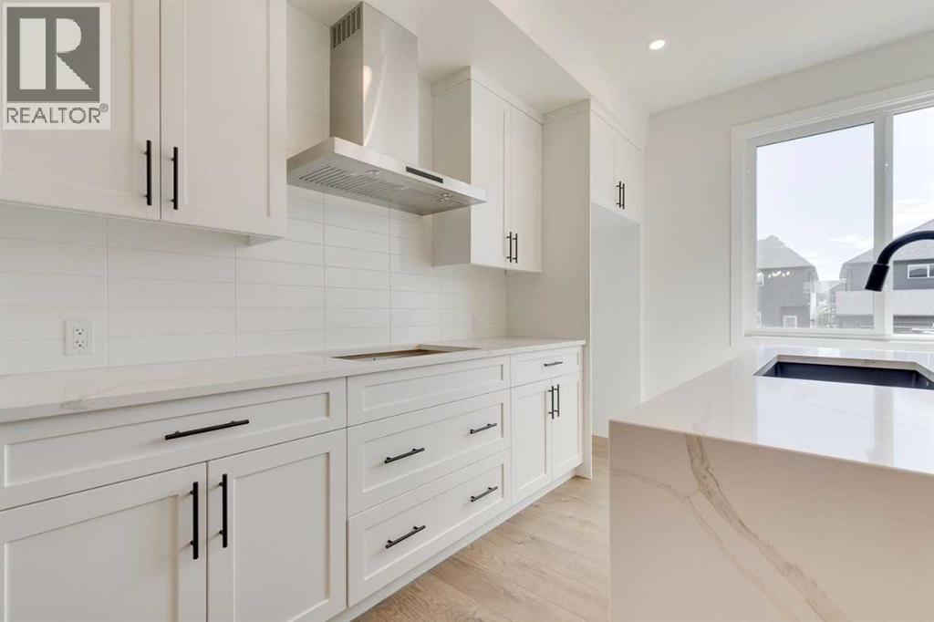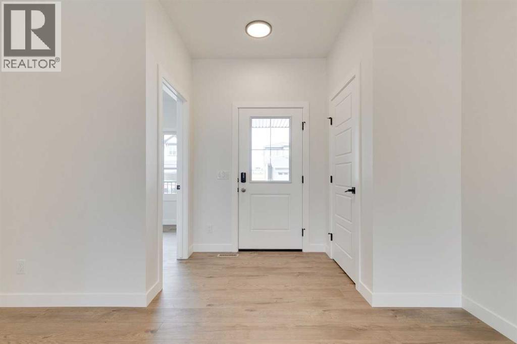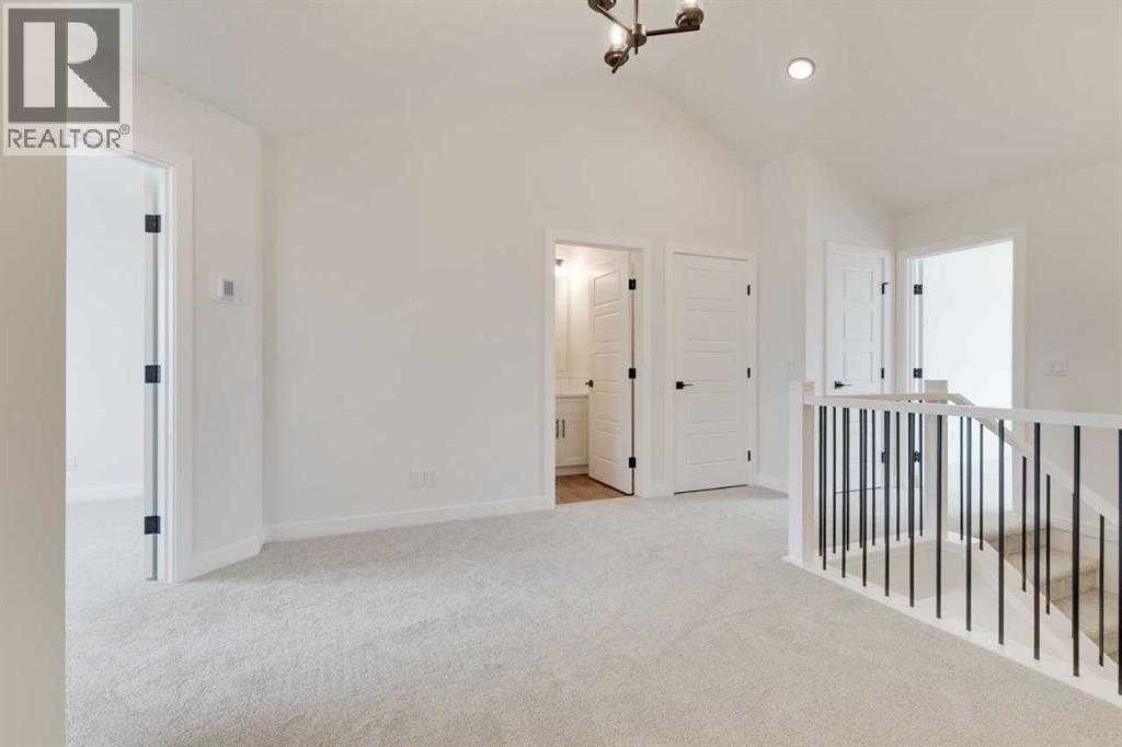 Discover The Onyx by Sterling Homes Calgary, a modern and thoughtfully designed home built by an experienced builder with over 70 years of history. This home features designer-selected finishes, energy-efficient construction, and smart-home technology for contemporary living.The kitchen is equipped with built-in stainless steel appliances, quartz countertops with a waterfall-edge island, and a walk-in pantry. The main floor includes a versatile den and a side entrance. Upstairs, enjoy a spacious loft with vaulted ceiling and an electric fireplace for added comfort. The primary ensuite offers a tiled walk-in shower and a vanity with full-height drawers, while LVP flooring adds durability throughout the bathrooms and laundry area. Home also features a 11' x 11' rear deck.This Built Green certified home includes triple-pane windows, a high-efficiency furnace, a solar chase for a future-ready setup, and an electric-vehicle charger rough-in. Smart-home features include a programmable thermostat, doorbell camera, smart front-door lock, and motion-activated lighting, all connected through a central smart-home hub. Photos are representative. (id:53676)