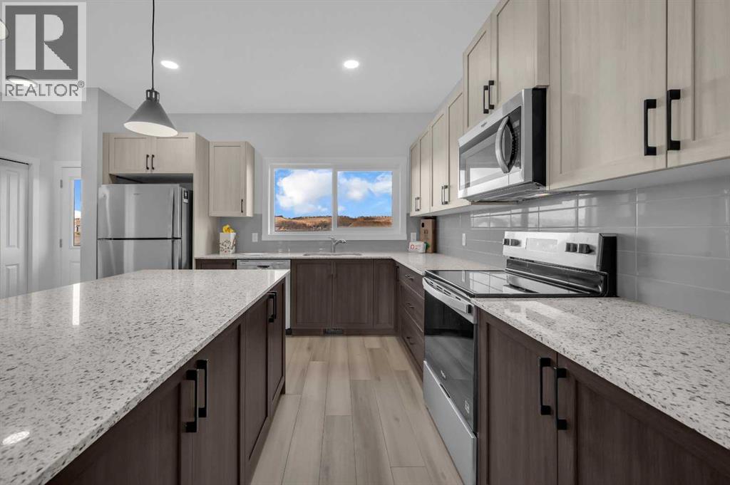 Discover the perfect blend of comfort, function, and style in this brand new duplex nestled in the heart of Wolf Willow. From the moment you step onto the charming front porch, you’ll feel right at home. Inside, an airy and open-concept main floor awaits—boasting sleek luxury vinyl plank flooring, a sunlit living room, and a spacious dining area ready for memorable gatherings. At the back of the home, the chef-inspired kitchen is sure to impress with quartz countertops, stainless steel appliances, and an oversized island that invites connection. A window over the sink frames views of your backyard—ideal for multitasking parents. The main floor also includes a 2-piece powder room and a well-designed mudroom with rear access. Upstairs, retreat to the primary suite featuring a walk-in closet and a private ensuite. Two more bedrooms, a stylish full bath, upstairs laundry, and a cozy bonus room make this layout family-friendly and functional. Need more space? The 9-ft basement with a separate entrance, rough-ins, and egress window is ready for your future vision—whether that’s a home gym, or rec room. Wolf Willow is more than a community—it’s a lifestyle. Enjoy stunning river valley views, walkable greenspaces, and easy access to Bow River pathways, Blue Devil Golf Course, local shops, and an off-leash dog park. With quick connections to Stoney Trail and nearby amenities, everything you need is within reach. Contact your favorite REALTOR® today! (id:53676)