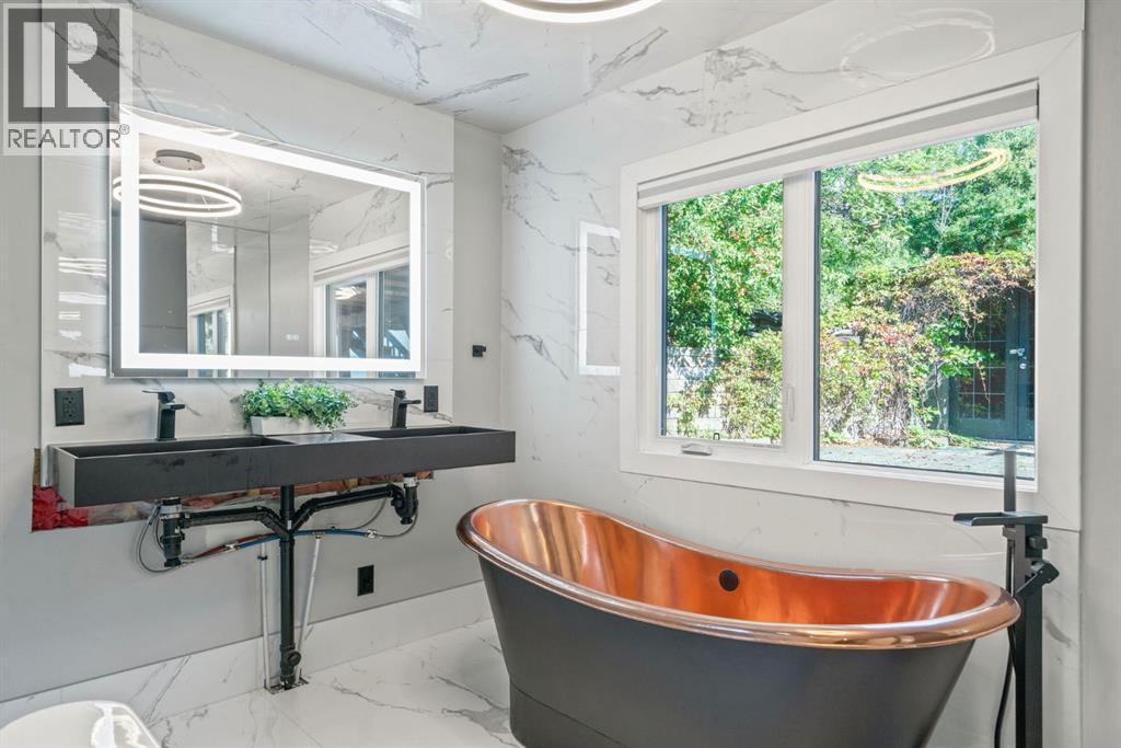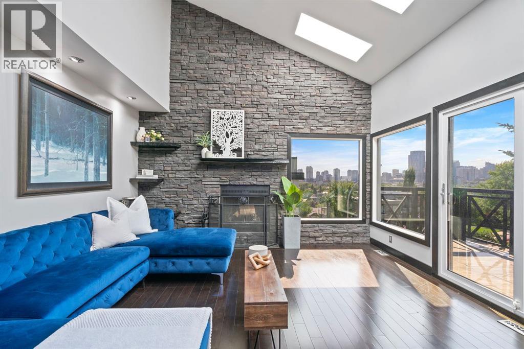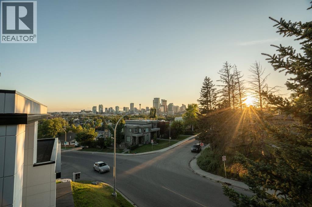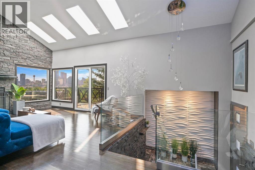 Unmatched Downtown VIEWS in Heart of Bridgeland. Perched above city w/sweeping, unobstructed views of Calgary’s skyline - this ONE OF A KIND home is designed for those who love to LIVE & ENTERTAIN in style! Rarely does a property capture BOTH the energy of downtown PLUS the quiet comfort of a private retreat. Over $220,000 invested by current owner. Unique split-level layout reimagined - to allow mn living spaces & walls of windows to FRAME breathtaking views! Imagine hosting friends in the open living room, stepping out onto the balcony as the city lights twinkle, enjoying Stampede fireworks or cozying up by the fireplace - as the skyline glows in the background?! EPIC sunsets!!! Dining area perfect for everyday meals or special occasions. Kitchen offers custom cabinetry, Viking gas range, coffered ceilings, granite & statement eating bar - transition directly outside to enjoy meals/relaxing on your gorgeous private wraparound deck! So peaceful at the back of this home. Did I mention - the Hot tub stays?! Awesome spot to enjoy this PRIVATE oasis - literally in the middle of the city! This home offers a LIFESTYLE. Heated tile flooring in kitchen, primary bedroom/ensuite, main bathroom & laundry room - adds EXTRA comfort throughout. Three bedrooms located on lower levels. Private primary bedroom with 2 piece ensuite offers the same INCREDIBLE CITY VIEWS. Do you WORK from home? Perhaps, make this space your OFFICE! Imagine taking calls, being on ZOOM, booking meetings & reading emails - while looking at the skyline. Second bedroom on this level + 5 piece SPA Inspired bathroom. Head down a level to another bedroom (big windows) + ANOTHER Steam shower, toilet & sink located in dedicated laundry / mechanical / storage area - offers options for multi person living! Recent upgrades include triple-pane tinted windows, newer roof shingles with ice/water shield + new hot water tank installed in 2020—ensuring peace of mind. The oversized, HEATED garage (currently outfitted as a full gym) offers even more options - maybe create separate Airbnb in the back - Zoned RC-2. More office space needed? Showcase/work on vintage/exotic cars? Workshop? Or just park car(s) here! Expansive driveway w/space for MULTIPLE vehicles - make this home as practical as it is impressive. Like to garden or plant - this one is for you! Perfect property for those that want a WOW factor home - without living in a high rise w/condo fees & rules! Mins to downtown, the river, Prince's Island Park, restaurants, amenities, entertainment, shopping, pathways/parks + 15 min drive to airport! Incredible fit for investors seeking luxury short-term rental opportunity, empty nesters ready to downsize from the suburbs to a unique, low-maintenance home, or even families looking to live in one of Calgary’s most sought-after neighborhoods. This Bridgeland gem is a RARE find. Urban lifestyle, unmatched views & endless ways to entertain—this is city living at its very best! (id:53676)