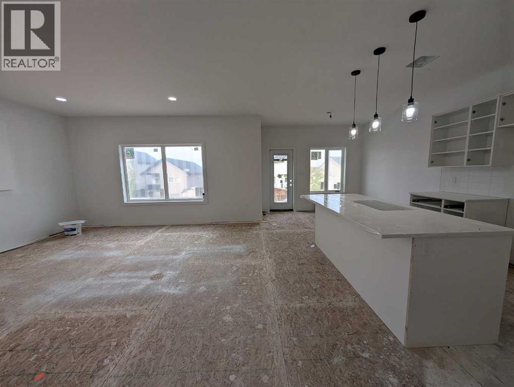 Don’t let this chance pass; be the first to make this lovely new walkout bungalow your home. Built by New Tab Homes Ltd. and DP76 Construction, this thoughtfully designed property blends modern style with practical functionality. Offering 1,099 square feet of beautifully planned living space, the open concept layout creates a bright and welcoming atmosphere. The kitchen, dining, and livingroom areas are seamlessly connected, perfect for both everyday living and entertaining. The kitchen is equipped with a large center island, abundant counter space, and a convenient corner pantry. Patio door off the dinning room lead you to the covered balcony that overlooks the yard. The main floor also includes a laundry room, a 2 piece guest bathroom, and a well appointed primary bedroom featuring a walk-in closet and a luxurious 4 piece ensuite. Downstairs, the fully developed walkout basement will offer a large family room with direct access to a covered patio, 2 additional bedrooms, and a full 4 piece bathroom. A double attached garage and a spacious driveway ensure plenty of parking for your family and guests. ** RMS square footage is based on builder plans. (id:53676)