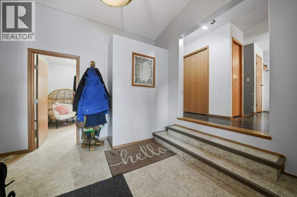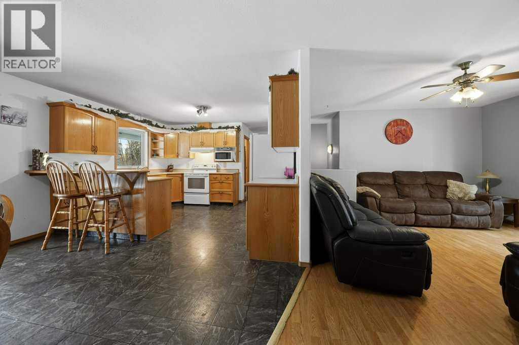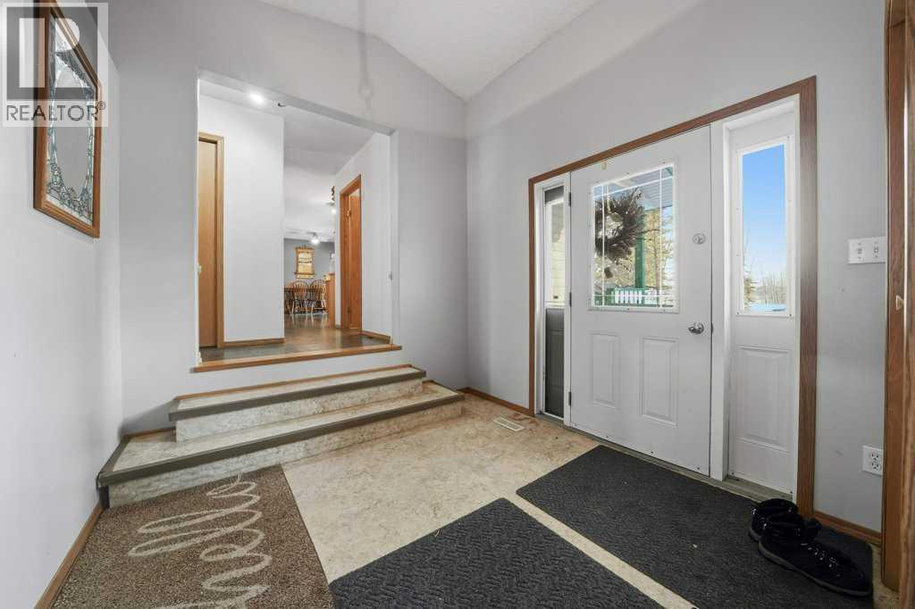 Welcome to your private retreat where nature, space, and comfort meet. This beautiful 8+ acre property is located just 8 minutes from Rocky Mountain House and offers the perfect blend of country living with town convenience. Enjoy sunrise views from the southeast-facing covered front veranda. The property features walking trails, quadding trails, and cross-country ski paths throughout, making it an ideal setting for outdoor enthusiasts and families. The land offers excellent potential for a home-based business, secondary business space, or recreational use, including space for children to explore and enjoy nature. The property includes 8 acres of treed and open land, a single attached garage, and a double detached garage. The covered front veranda and porch provide a peaceful outdoor living space with scenic views. Inside, the home offers a bright open-concept main floor. The spacious primary bedroom includes a full ensuite and dual closets. A 4-piece main bathroom with tub and shower combination serves the main floor. The basement is open and functional offering excellent space for a family room, office, gym, or additional living area. This property offers the freedom of acreage living with the comforts of home, all within 8 minutes of town. (id:53676)