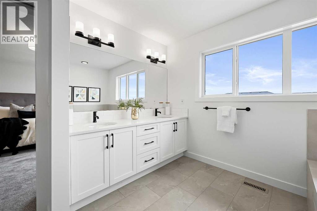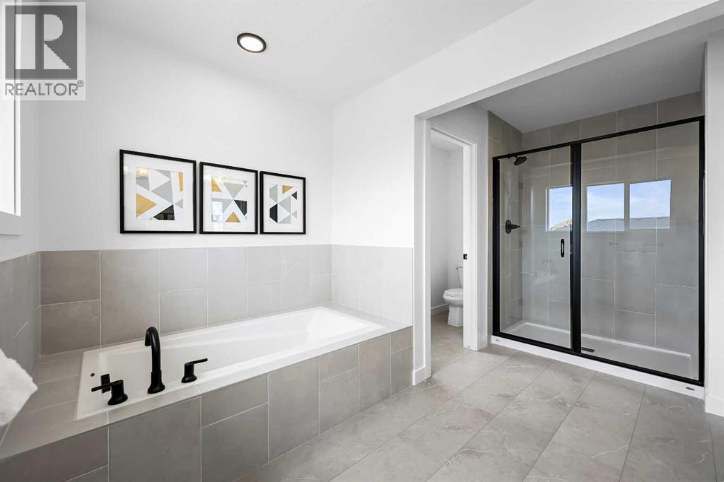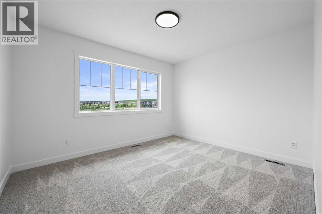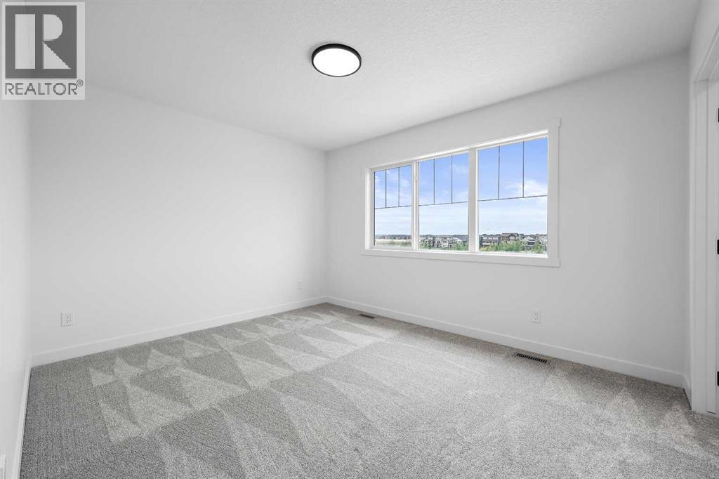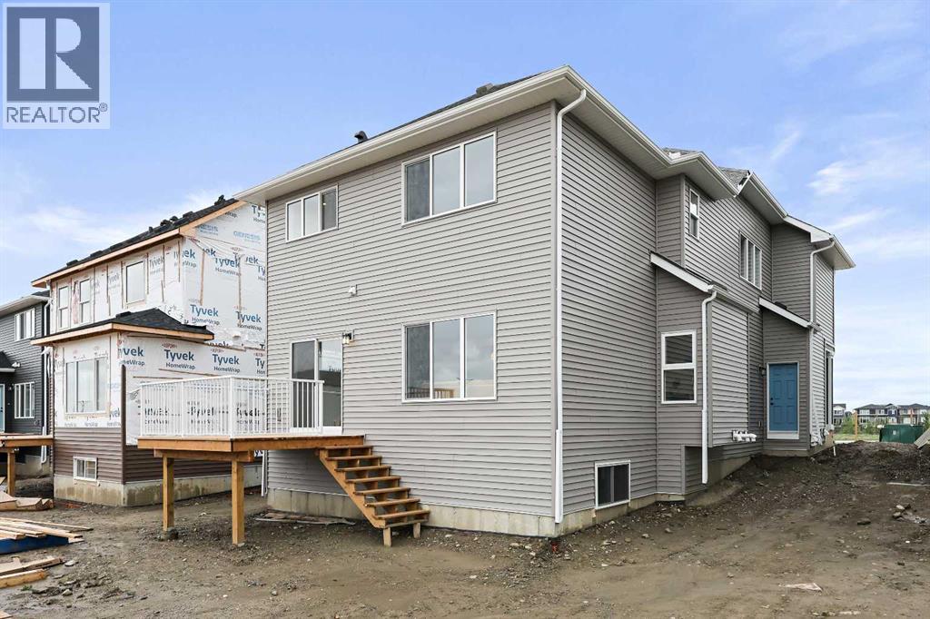 626 Bayview Lane welcomes you to the family-oriented community of Bayview. This beautifully crafted home by Genesis Builders Group offers nearly 2,500 square feet of well-designed space, perfect for your family. Step into a spacious front foyer with a dramatic 18-foot ceiling, creating a bright and welcoming entrance. The main floor features airy 9-foot ceilings and a full 3-piece bathroom. The open-concept layout includes a generous living room with a focal point fireplace, a dedicated dining area, and a stunning kitchen complete with quartz countertops, a central island, full-height cabinetry, and a separate spice kitchen. Just off the mudroom, a side entrance leads directly to the undeveloped basement which is ready for your design ideas. The attached double garage, with an additional tandem parking stall, offers plenty of room for vehicles, tools, and extra storage. The upper level offers a bright bonus room that separates the primary suite from the secondary bedrooms. The primary bedroom is a true retreat, featuring a tray ceiling detail, a walk-in closet, and a luxurious five-piece en-suite with a soaker tub, oversized tiled shower, double vanities, and a private water closet. Two additional bedrooms are generously sized and share a five-piece main bathroom with dual sinks. A full laundry room with upper cabinetry completes the upper floor for added convenience. Step outside to a rear deck perfect for summer barbecues or relaxing evenings. Located on a quiet street near walking paths, green spaces, and future school sites, this home is also just minutes from 8th Street and major commuter routes. Built in 2025, 626 Bayview Lane SW is move-in ready and offers exceptional value, thoughtful design, and long-term comfort in one of Airdrie’s most sought-after communities. *Area size was calculated by applying the RMS to the blueprints provided by the builder. (id:53676)