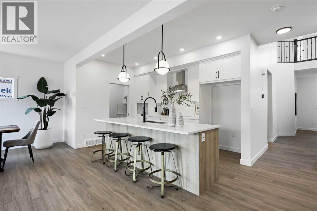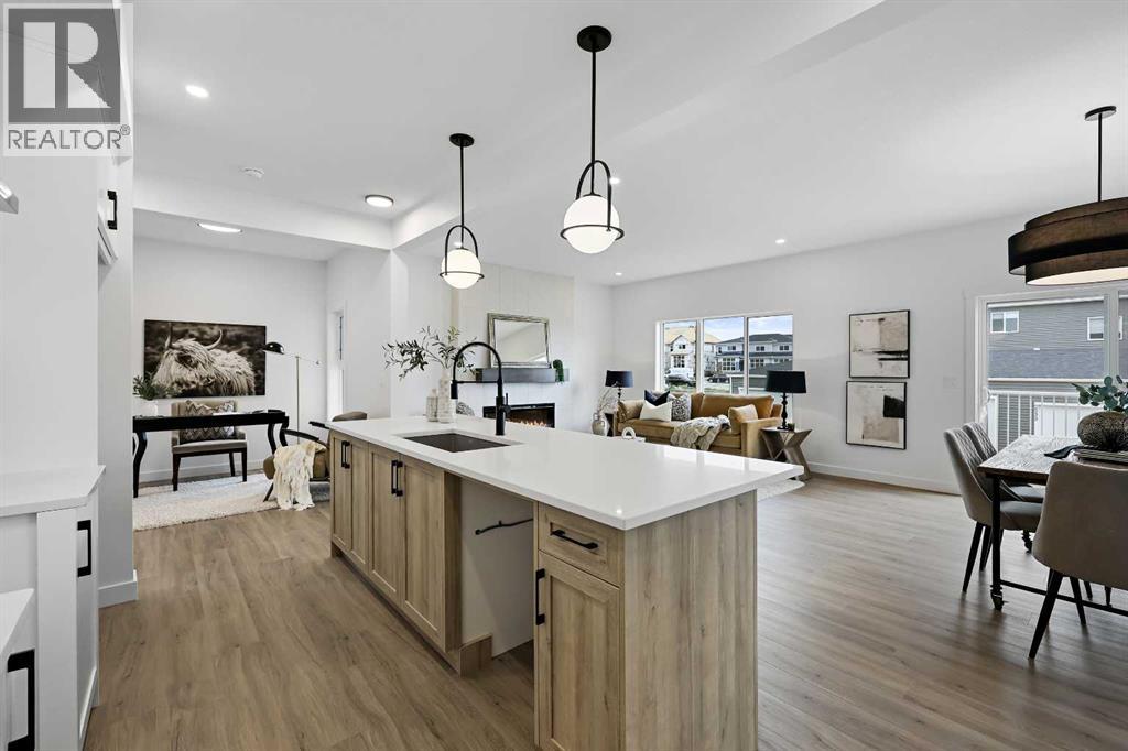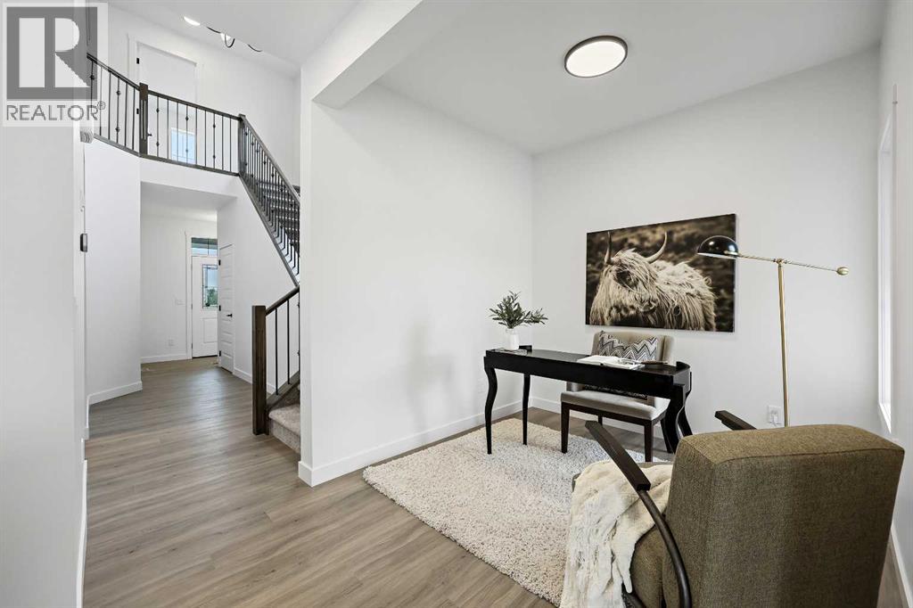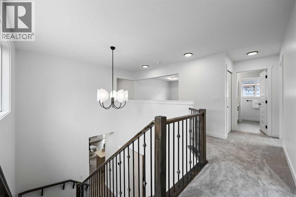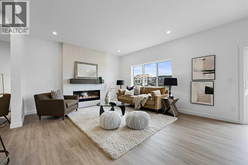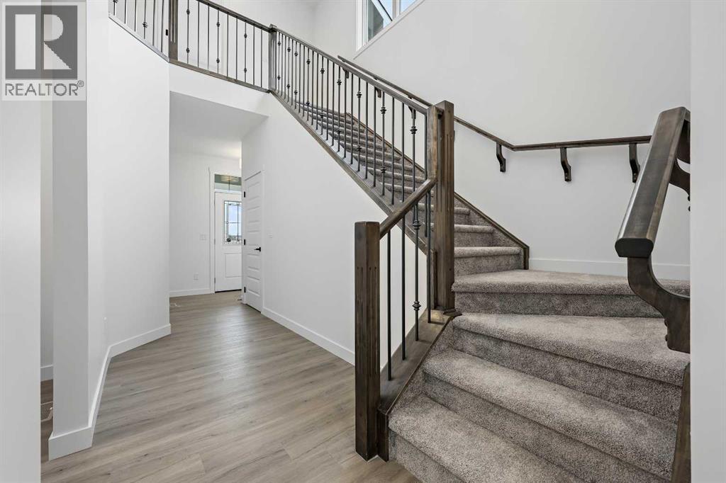 626 Bayview Lane welcomes you to the family-oriented community of Bayview. This beautifully crafted home by Genesis Builders Group offers nearly 2,500 square feet of well-designed space, perfect for your family. Step into a spacious front foyer with a dramatic 18-foot ceiling, creating a bright and welcoming entrance. The main floor features airy 9-foot ceilings and a full 3-piece bathroom. The open-concept layout includes a generous living room with a focal point fireplace, a dedicated dining area, and a stunning kitchen complete with quartz countertops, a central island, full-height cabinetry, and a separate spice kitchen. Just off the mudroom, a side entrance leads directly to the undeveloped basement which is ready for your design ideas. The attached double garage, with an additional tandem parking stall, offers plenty of room for vehicles, tools, and extra storage. The upper level offers a bright bonus room that separates the primary suite from the secondary bedrooms. The primary bedroom is a true retreat, featuring a tray ceiling detail, a walk-in closet, and a luxurious five-piece en-suite with a soaker tub, oversized tiled shower, double vanities, and a private water closet. Two additional bedrooms are generously sized and share a five-piece main bathroom with dual sinks. A full laundry room with upper cabinetry completes the upper floor for added convenience. Step outside to a rear deck perfect for summer barbecues or relaxing evenings. Located on a quiet street near walking paths, green spaces, and future school sites, this home is also just minutes from 8th Street and major commuter routes. Built in 2025, 626 Bayview Lane SW is move-in ready and offers exceptional value, thoughtful design, and long-term comfort in one of Airdrie’s most sought-after communities. *Area size was calculated by applying the RMS to the blueprints provided by the builder. (id:53676)