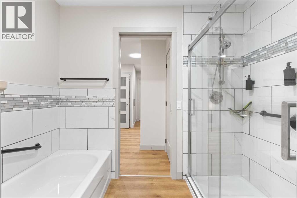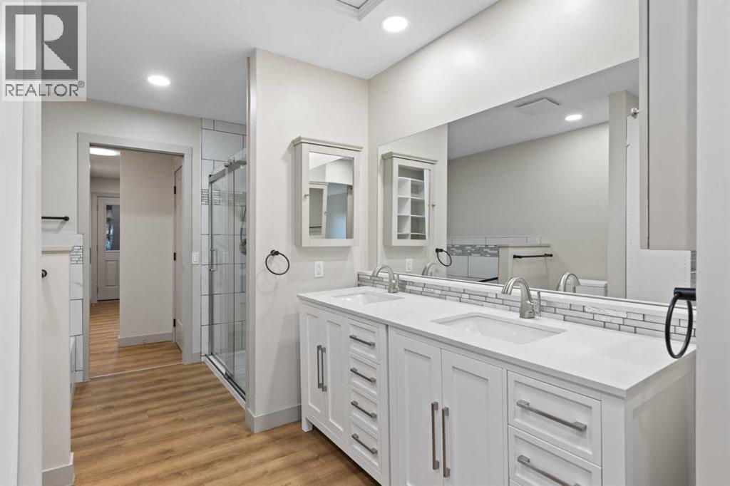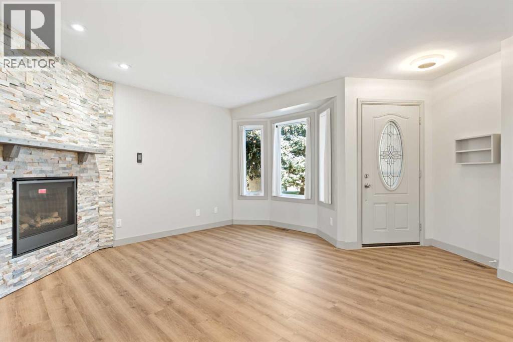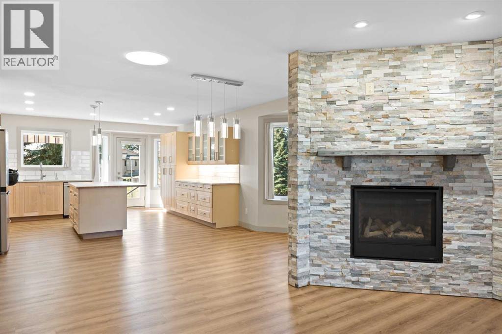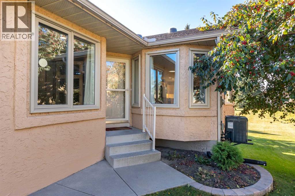This 1280 sq ft walk-out villa has an abundance of upgrades and renovations and is the definition of move-in ready. The main level has an open floorplan with luxury vinyl plank throughout. A gorgeous gas fireplace with a stone face and mantle graces the living room. The kitchen is spacious with maple and glass cabinets, quartz countertops, maple butcher block island/eating bar, instant hot water tap, garburator, new sink, and new appliances. In the primary bedroom there is a walk-through closet with entrance to the renovated 5-piece bath. This level also has a den and mud/laundry room complete with built in features, new washer/dryer, and a lift (elevator style) that provides access to the basement and garage. The basement has a 31x26’ rec room complete with upgraded window size, bar with sink, built in fridge, and another feature fireplace. Also on this level is large bedroom, spa like 3 piece bathroom with a deluxe tile shower, ample storage, and access to the new, expanded lower deck that features a charming Tiki bar while overlooking the peaceful pond, green-space and golf course. A few of the many upgrades in this home include new flooring, light fixtures, and shingles; removal of poly B; new electrical, water softener and central vacuum; new triple pane windows, staircase and railings, exterior and interior doors, baseboards and trim, electric awning on upper deck, a heated double garage and gas BBQ lines on both decks. There is also in-floor heating in both bathrooms, central air, four light tubes, and a brass “speaking tube”, and brass ship bell that adds character and charm. The sewer and main water line have also been replaced with a new driveway. Located in a quiet cul-de-sac with no chance of golf balls coming into your yard, and low monthly feels that include snow removal and landscaping, this home offers serenity and easy, maintenance-free living. Please click the multimedia tab for an interactive virtual 3D tour and floor plans. (id:53676)