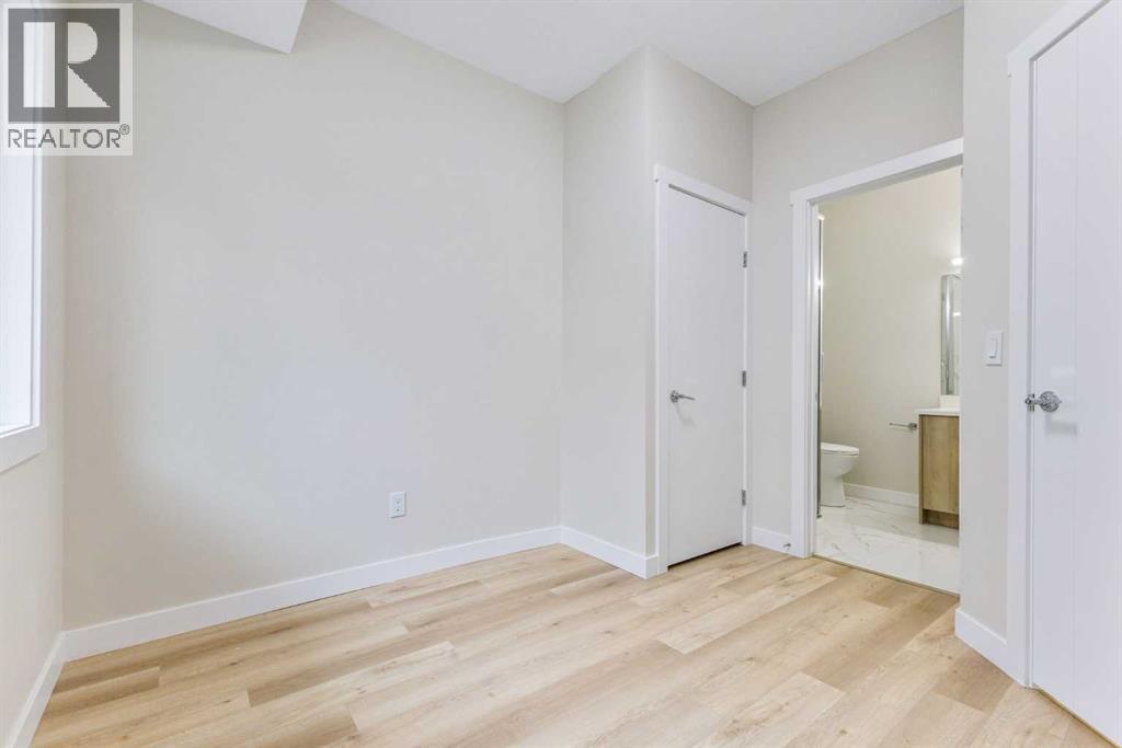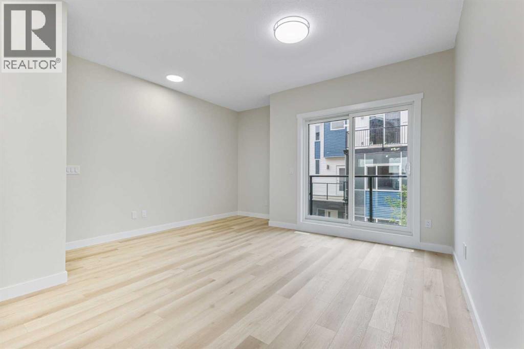 Step into this stylish and thoughtfully designed 3-storey townhouse, featuring 3 spacious bedrooms—each with its own private ensuite, perfect for families or multi-generational living. The entry level offers a welcoming foyer and a versatile bedroom that works well as a guest suite or home office.The bright and open main floor is filled with natural light from large windows and showcases an open-concept layout. Enjoy a modern kitchen with stainless steel appliances, sleek lighting, and a functional breakfast bar—ideal for entertaining or everyday meals. A convenient powder room and a cozy balcony add comfort and charm to this level.Upstairs, you'll find two generous primary bedrooms, both with private ensuites. One suite includes a walk-in closet and a dual vanity for added luxury. A stacked laundry closet completes the top floor.Additional features include a single attached garage, low condo fees, future nearby green space, and ample visitor parking. With quick access to Stoney Trail, commuting and daily errands are a breeze.Modern comfort, flexible living, and a convenient location—this move-in-ready home has it all. Book your showing today! (id:53676)