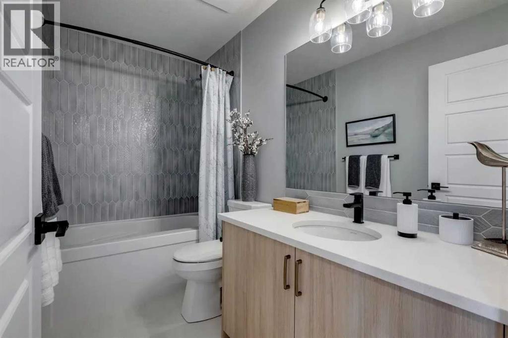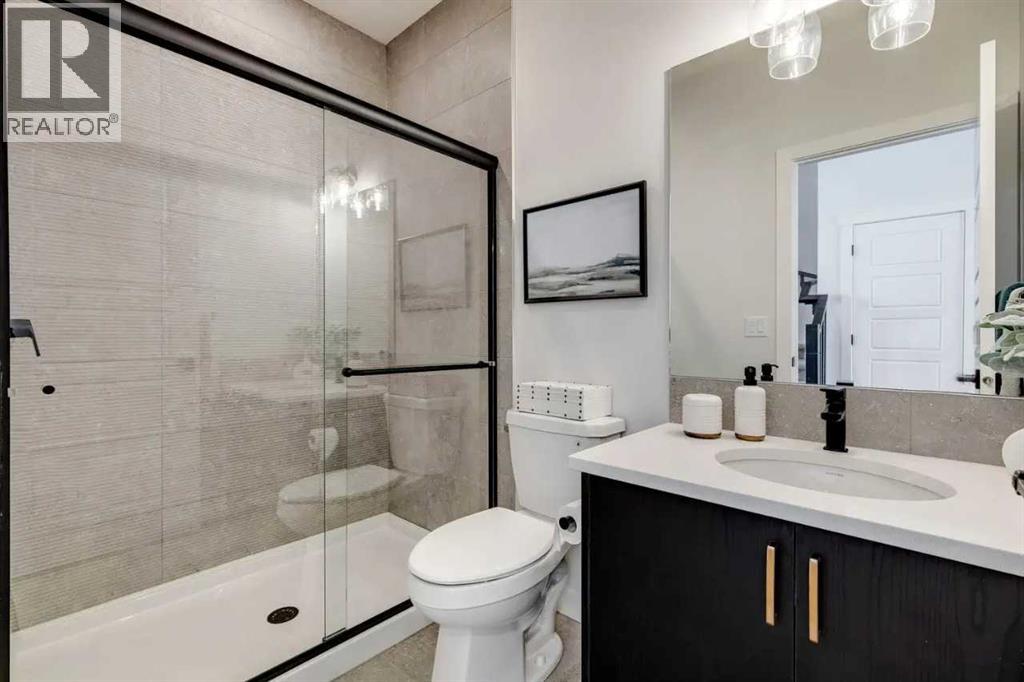 Located in the vibrant Southwest community of Pine Creek, this thoughtfully designed home offers flexible living and is set up for a future two-bedroom secondary suite in the basement, complete with a separate side entrance. The upper level features three bedrooms and a central bonus room, providing ample space for family living. On the main floor, a bedroom and full bathroom add convenience and versatility. The kitchen is equipped with a gas range cooktop, hood fan, and a large island, while the great room includes an electric fireplace feature wall. A well-rounded home suited for multi-generational living or future rental income potential. Photos are representative. (id:53676)