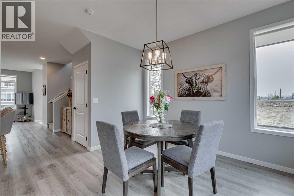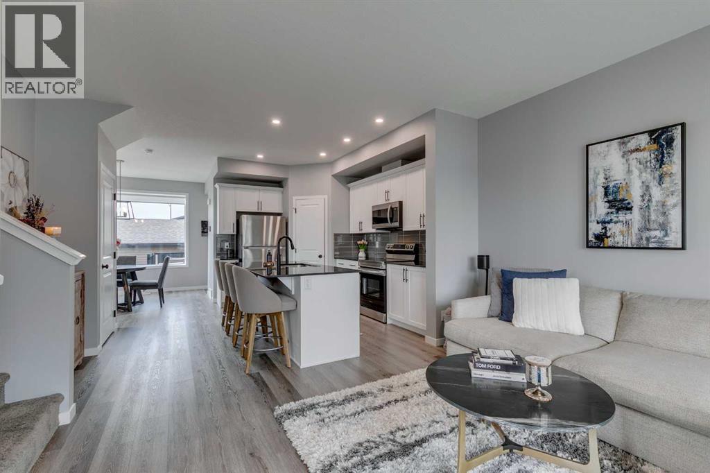 Welcome to your new home in Wedderburn, Okotoks! Perfectly located on the north end with quick access to Calgary, shopping, and local amenities, this 3-bedroom, 2.5-bath Arlo floor plan by Morrison Homes offers over 1,400 sq. ft. of comfort and style. Enjoy ABUNDANT STREET PARKING for guests and the bright, private feel of this desirable END UNIT.The main floor showcases 9-FOOT CEILINTS, large windows, upgraded blinds, a welcoming living room, a modern kitchen with central island and ample storage, a spacious dining area, and a convenient 2-piece bath. Upstairs, the primary retreat features a walk-in closet and 4-piece ENSUITE, while TWO ADDITIONAL BEDROOMS, a FULL BATH, and UPPER LAUNDRY add practicality and ease.Outside, relax in your FULLY FENCED PRIVATE YARD with both UPPER AND LOWER DECKS, plus the bonus of an INSULATED DOUBLE GARAGE. Move-in ready and thoughtfully designed, this Wedderburn gem checks all the boxes! (id:53676)