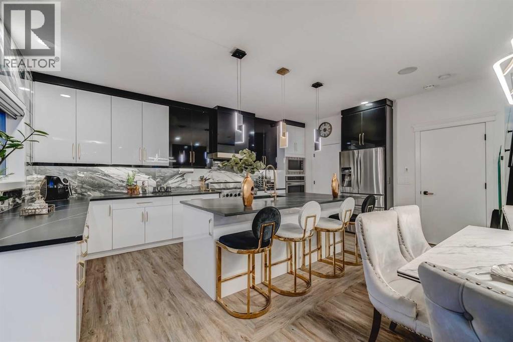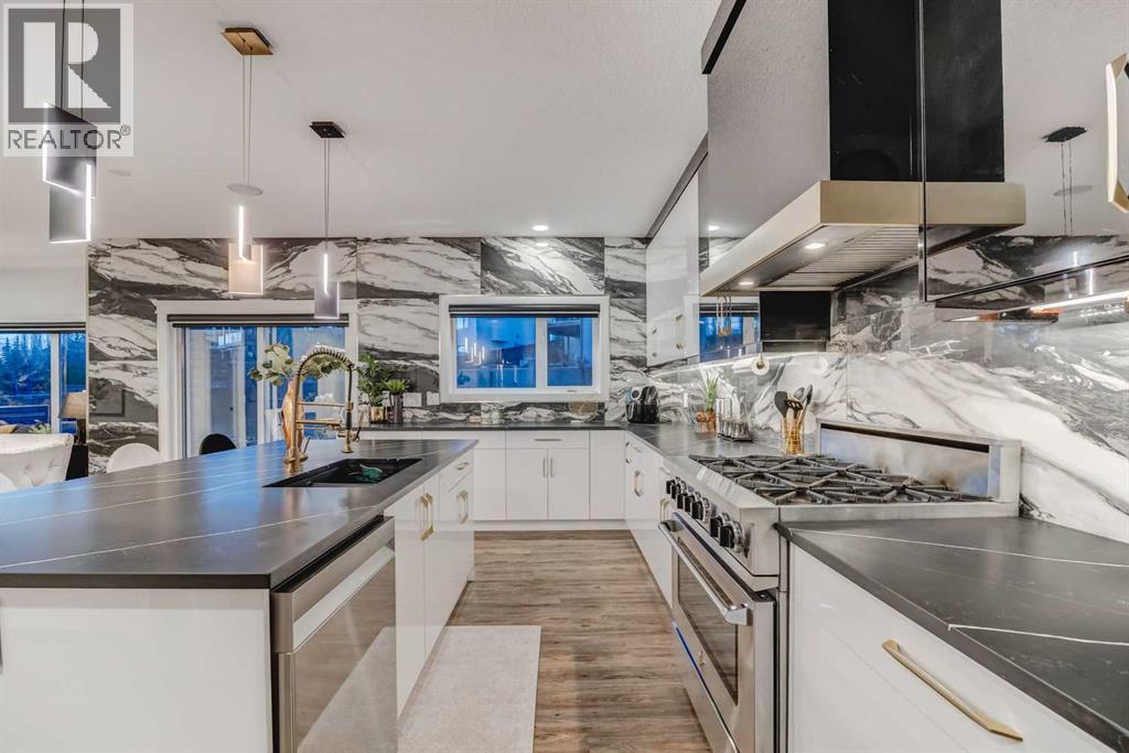 OPEN HOUSE SUNDAY OCTOBER 19, 2–4 PM – EXQUISITELY REMODELED DESIGNER HOME offering 5 bedrooms, 3.5 baths, and around 4,200 SQ. FT. of developed living space on a RARE 8,500 SQ. FT. PIE LOT in sought-after Rocky Ridge community.A dramatic entry with gold-accent columns and custom wall paneling opens to a stunning living room featuring a floor-to-ceiling slab fireplace, expansive windows, and MOTORIZED BLINDS. The chef’s kitchen boasts CUSTOM CABINETRY, GRANITE COUNTERS, HIGH-END APPLIANCES, and a walk-through pantry leading to the OVERSIZED HEATED GARAGE. The main floor also includes a private office and two elegant dining areas.Upstairs, a vaulted bonus room captures MOUNTAIN VIEWS. The primary suite offers a SPA-INSPIRED ENSUITE and CUSTOM BUILT-IN WALK-IN CLOSET. Three additional bedrooms include built-in beds, including a unique double-bed design.The fully developed basement showcases an IMPRESSIVE SECONDARY SUITE (ILLEGAL) with FULL KITCHEN, spacious living area, luxury bath, and custom walk-in closet – ideal for MULTI-GENERATIONAL LIVING OR INCOME POTENTIAL.Additional features include BUILT-IN SPEAKERS, IN-FLOOR HEATING, A/C, SOLAR-CHARGED SMART BLINDS, stair sensor lighting, central vacuum, SMART TOILETS, new water tank, and water filtration system.Seller willing to negotiate furnishings, offering the opportunity to purchase the home FULLY FURNISHED FOR A MOVE-IN-READY EXPERIENCE.Enjoy EXCLUSIVE ACCESS TO ROCKY RIDGE RANCH AMENITIES – canoeing, kayaking, rowboats, tennis, basketball, pickleball, splash park, playground, clubhouse rental, skating, fitness classes, and community events.A ONE-OF-A-KIND DESIGNER HOME that blends TIMELESS EUROPEAN-STYLE LUXURY with MODERN CONVENIENCE in a premier NW location. (id:53676)
