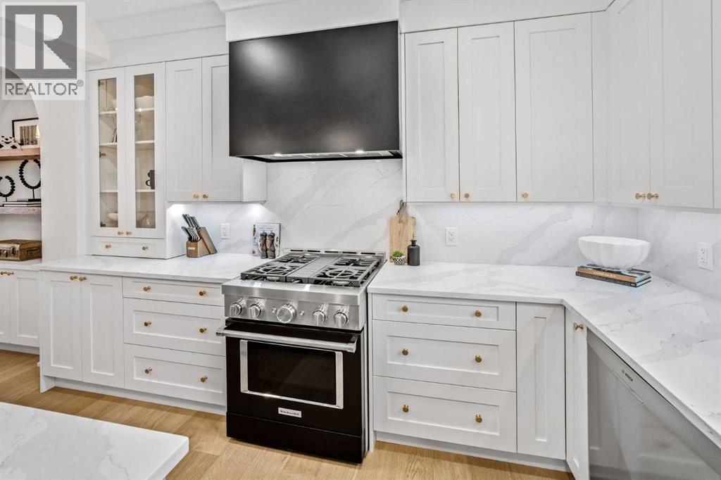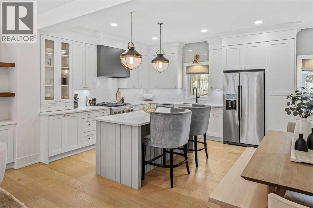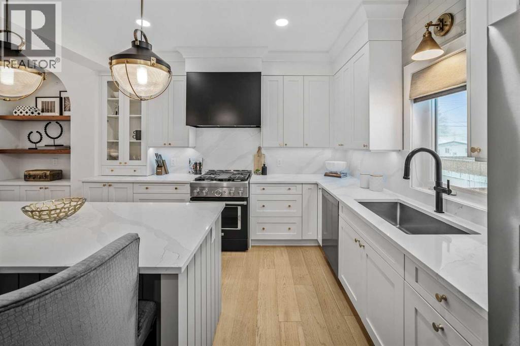 OPEN HOUSES ON FRIDAY, SAT & SUNDAY- APRIL 3RD, 4TH & 5TH - 1pm to 3pm: Welcome to the kind of home that stops scrolls and starts conversations. This modern craftsman bungalow offers over 2700 sqft of beautifully developed luxury living, featuring 2 bedrooms on the main level, 3 additional bedrooms below, and 3 full baths, blending timeless architecture with designer appointed interiors. Soaring vaulted ceilings and an airy open concept layout create an immediate sense of space, while the living room is anchored by a stunning fireplace framed with custom arched built ins, perfect for cozy evenings or elevated entertaining. Natural light pours through expansive windows, enhancing the home’s soft, curated palette. The chef inspired kitchen features sleek custom cabinetry, quartz countertops, a statement hood fan, premium stainless steel appliances, and a generous island with breakfast bar seating, ideal for morning coffee rituals or gathering with friends. Along the backyard facing wall, a beautifully integrated coffee bar, extensive built in storage, and thoughtfully designed pantry shelving elevate both form and function, while a private mudroom entrance to the kitchen keeps daily living effortlessly tucked away. The main floor hosts two bedrooms, including a show stopping primary retreat with vaulted ceilings, subtle shiplap detailing, and a spa caliber ensuite with oversized custom shower and walk in closet, offering a true sense of escape at the end of the day. The second bedroom, currently styled as an office, offers flexible living for today’s lifestyle. The dining area connects seamlessly to the main living spaces, creating the perfect backdrop for everything from intimate dinners to lively celebrations. Downstairs, the fully developed lower level expands your lifestyle with a spacious family room ready for movie nights, a flexible gym or yoga space, sleek wet bar for effortless hosting, three additional bedrooms, a full bath, and dedicated laundry room. Outs ide, a beautifully curated backyard blends architectural concrete with low maintenance turf, featuring a custom patterned patio that defines a dedicated bbq and entertaining area, along with a raised composite deck designed for lounging and gathering. A gas line has been extended to the deck for a future fire table, creating the perfect setting for summer evenings and quiet moments alike, all framed by mature trees, curated rock beds, and full privacy fencing, plus a heated double detached garage. This architectural stunner pairs its undeniable curb appeal with everyday comfort, including air conditioning for warm Calgary summers. Ideally located in one of Calgary’s most desired neighbourhoods, you’re just steps to the shops, eateries, and cafes of Lakeview, with quick access to North Glenmore Park, top rated schools, and major routes for easy city or mountain escapes. This home offers the ultimate lifestyle, and it is ready to impress. (id:53676)