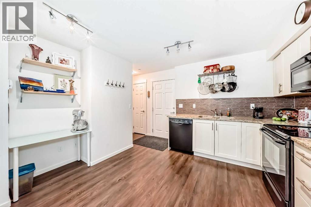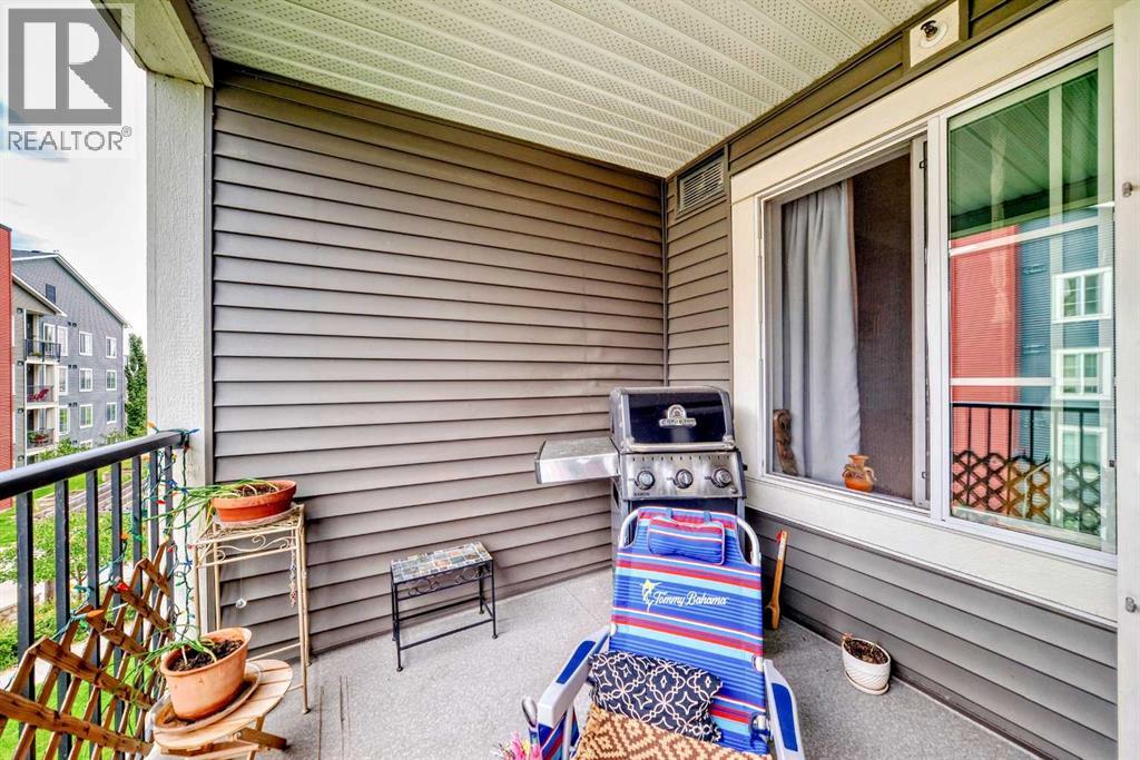 Step into this bright, open-concept living space showcasing durable laminate flooring, granite countertops, crisp white cabinetry, and sleek black appliances. The spacious bedroom features brand-new carpet and a generous walkthrough closet with direct access to the 4-piece bathroom. Unwind on your private balcony overlooking a quiet courtyard, complete with a community firepit and beautiful mountain views on clear days. A gas line and BBQ are included—perfect for effortless outdoor entertaining.Additional highlights include in-suite laundry with a stackable washer and dryer, a convenient coat closet, a titled outdoor parking stall, and an assigned storage locker. The complex is Pet-friendly (with board approval), and ideally located in Copperfield with easy access to pathways, parks, schools, shopping, and major routes including Deerfoot and Stoney Trail—this is an excellent opportunity for first-time buyers, downsizers, or investors alike. (id:53676)