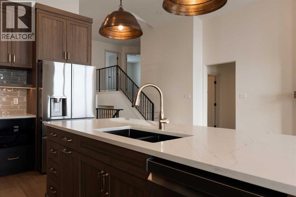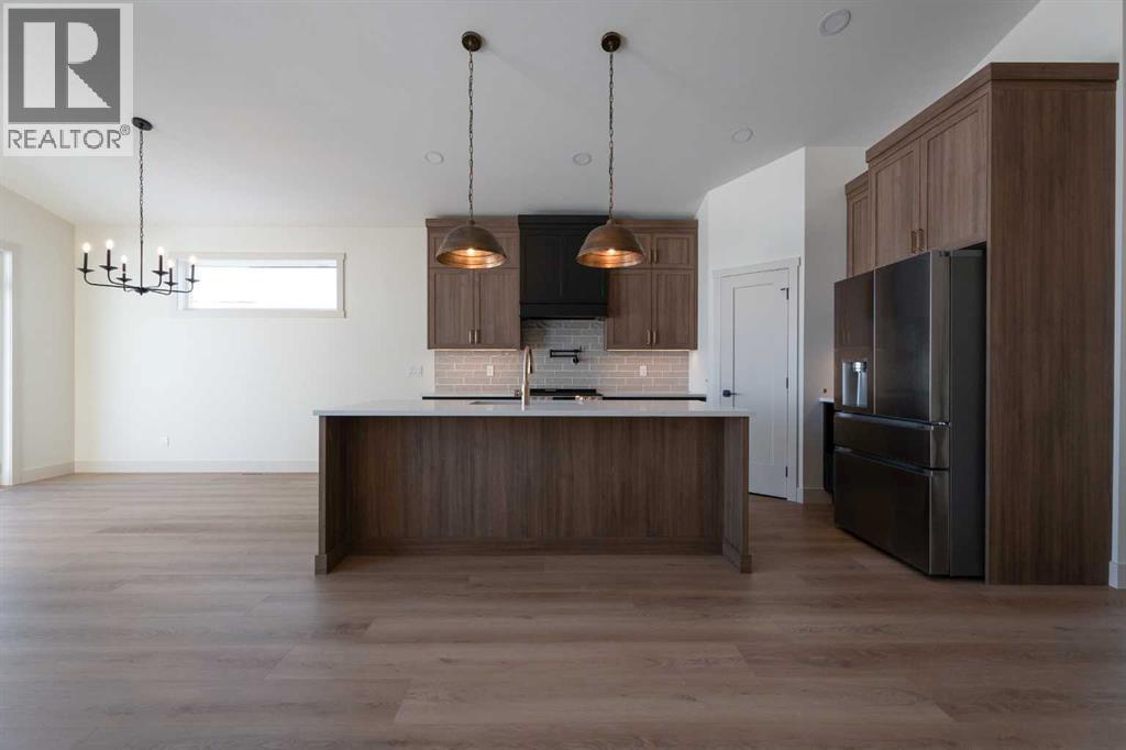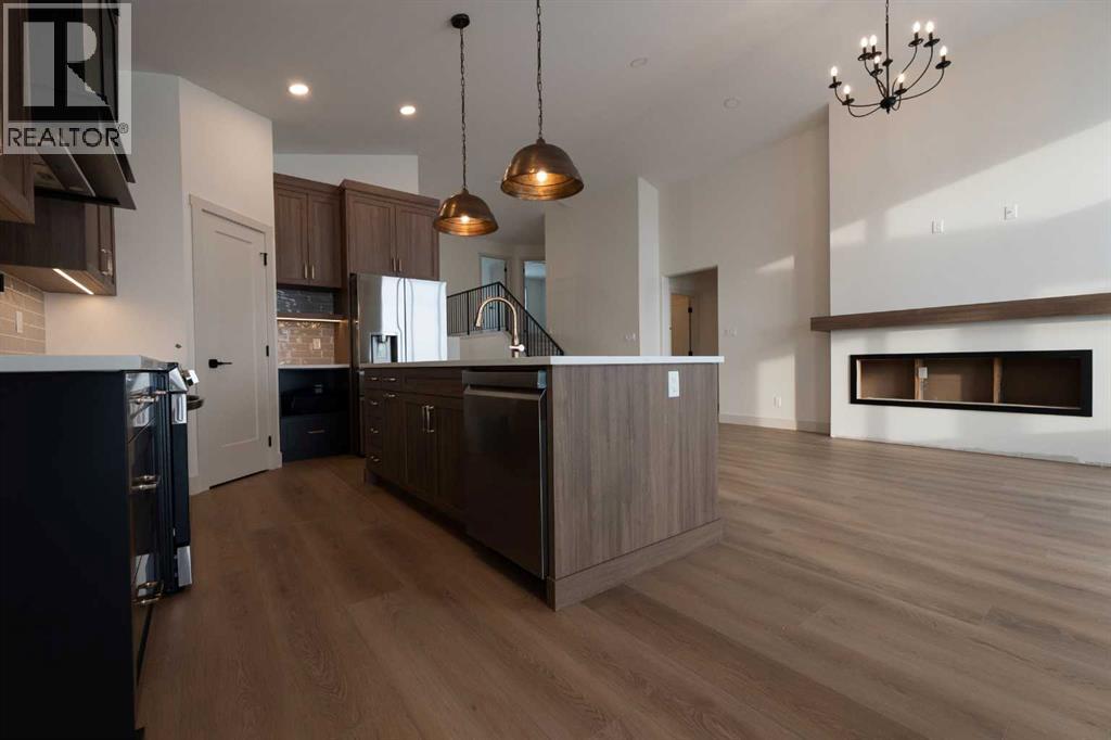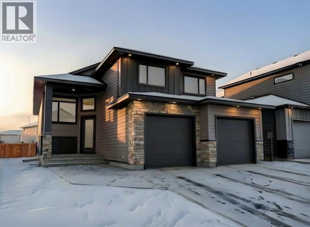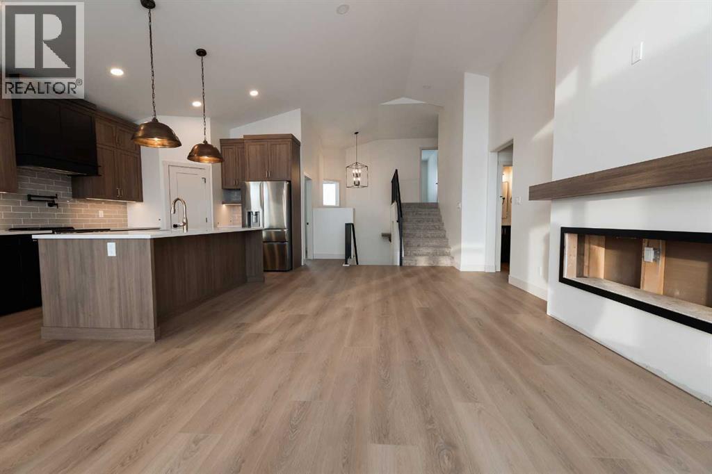 Introducing 639 Sixmile Crescent... Offering 1,904 sq. ft. of modern living space, this home blends clean architectural lines with warm, timeless finishes across five bedrooms, 3.5 bathrooms, and a double attached garage.From the moment you enter, the home makes a strong first impression. The open foyer and stairwell are anchored by soaring ceilings, expansive windows, and statement lighting that fills the space with natural light and a sense of scale. Wide-plank flooring flows seamlessly throughout the main level, reinforcing the home’s cohesive, modern aesthetic.The main living area is open, airy, and designed for everyday comfort. Large windows frame the living room, while the fireplace adds a refined focal point without overpowering the space—perfect for both quiet evenings and entertaining.At the heart of the home, the kitchen is as functional as it is stylish. Rich cabinetry, a large central island with seating, modern pendant lighting, and clean tile backsplash details create a space designed for gathering. The layout flows effortlessly into the dining area, making hosting feel natural and intuitive.Also on the main level is a dedicated office, ideal for remote work or study, along with a spacious primary bedroom retreat. The primary suite features a walk-in closet and a spa-inspired 5-piece ensuite, complete with a tiled soaker tub, glass shower, and sleek, modern fixtures—designed to feel calm, private, and intentional.Upstairs, two additional bedrooms and a four-piece bathroom provide comfortable accommodations for family or guests. The thoughtful layout keeps bedrooms well-separated while maintaining a connected feel.The fully developed basement expands the living space even further, offering a large rec room, two additional bedrooms with walk-in closets, a four-piece bathroom, and ample storage—ideal for guests, teenagers, or flexible lifestyle needs.With direct garage access through the foyer, a conveniently placed laundry area, and a l ayout designed for both form and function, this home delivers modern living without compromise.Discover the lifestyle that 639 Sixmile Crescent has to offer—brand new, beautifully finished, and ready to welcome you home. (id:53676)