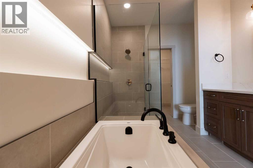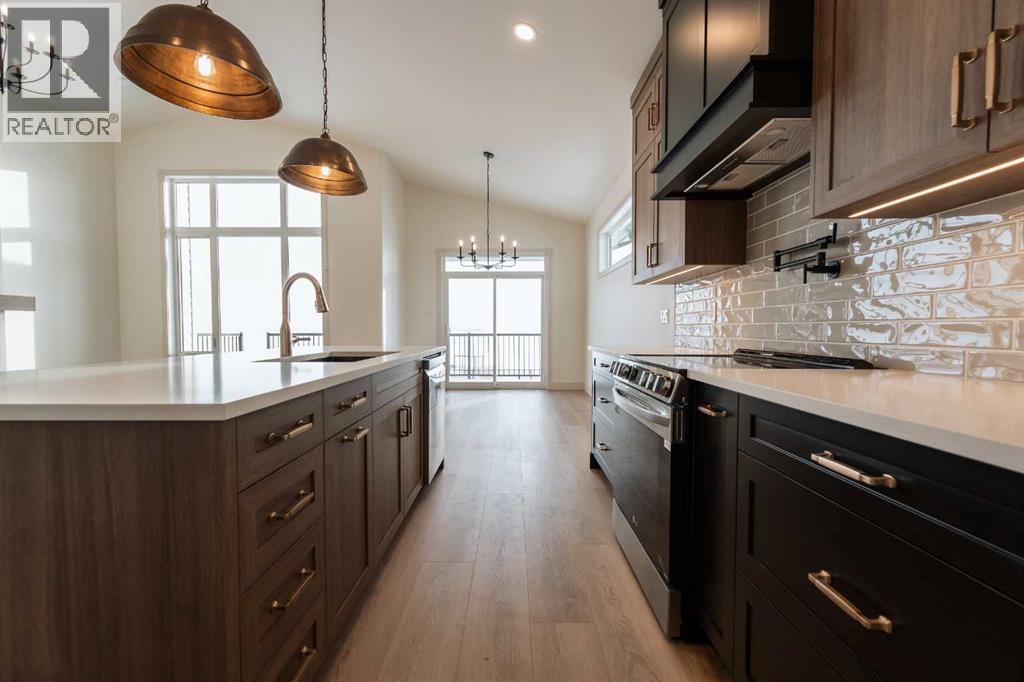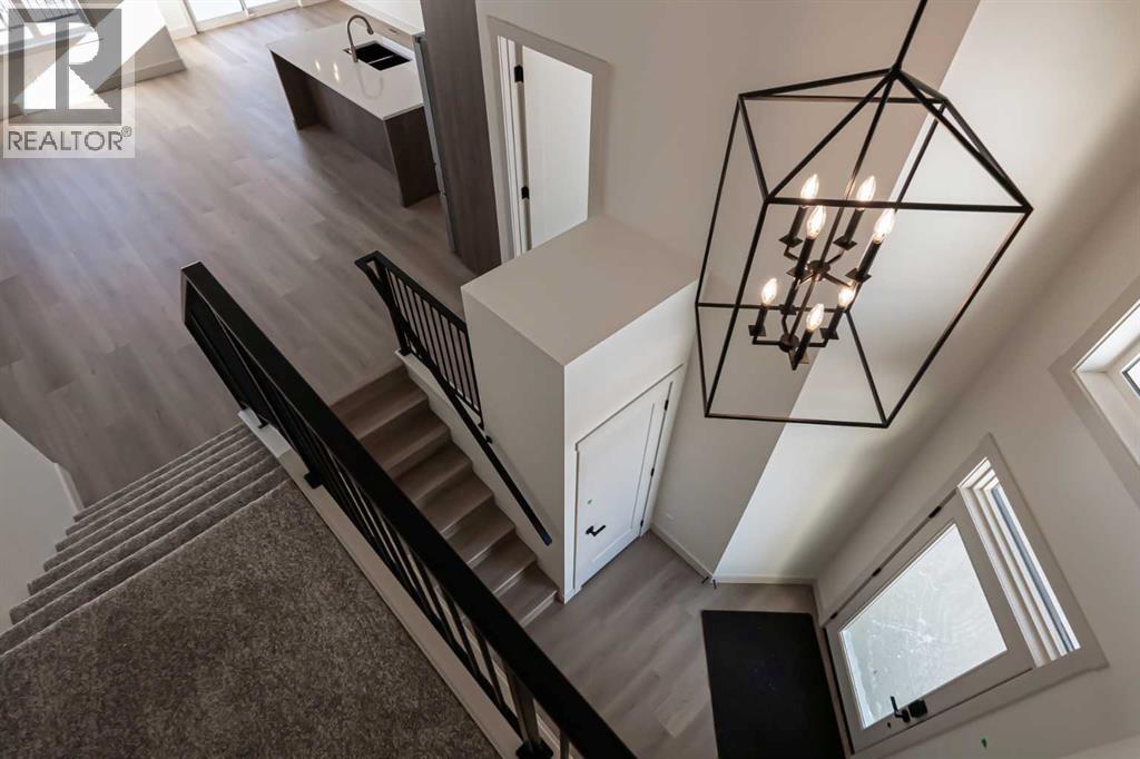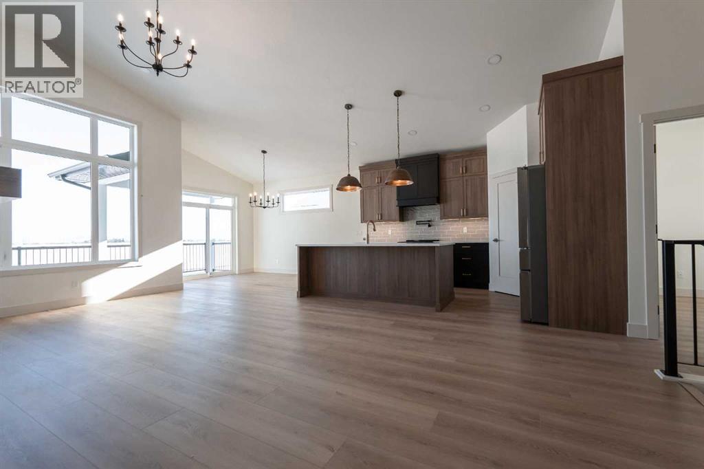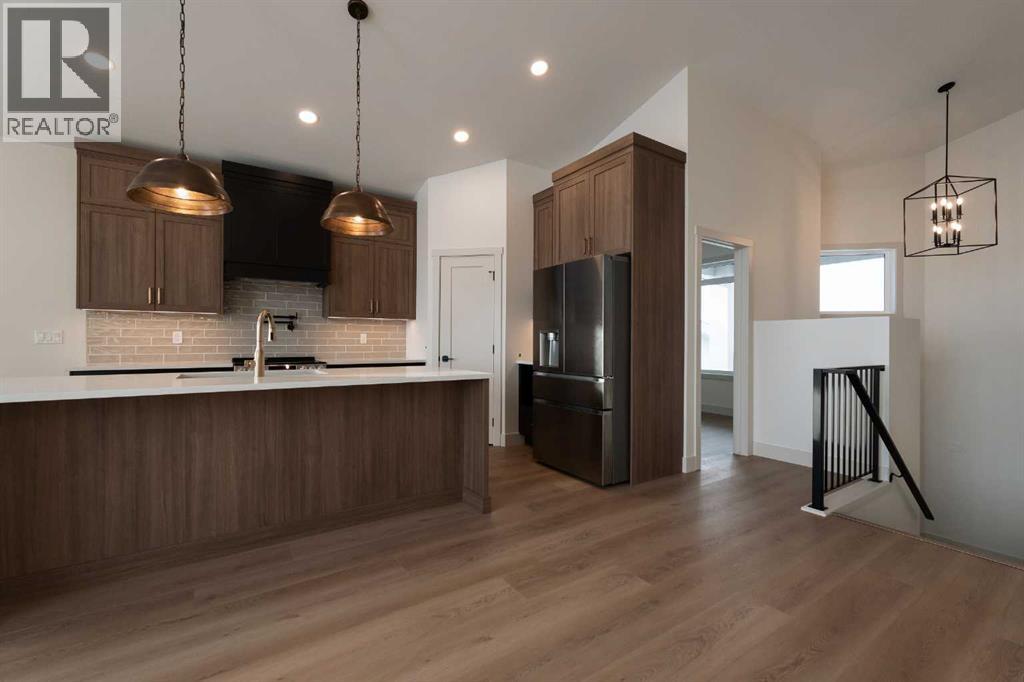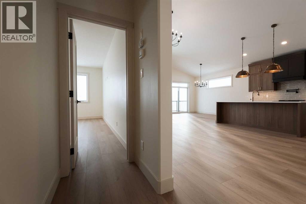 Introducing 639 Sixmile Crescent... Offering 1,904 sq. ft. of modern living space, this home blends clean architectural lines with warm, timeless finishes across five bedrooms, 3.5 bathrooms, and a double attached garage.From the moment you enter, the home makes a strong first impression. The open foyer and stairwell are anchored by soaring ceilings, expansive windows, and statement lighting that fills the space with natural light and a sense of scale. Wide-plank flooring flows seamlessly throughout the main level, reinforcing the home’s cohesive, modern aesthetic.The main living area is open, airy, and designed for everyday comfort. Large windows frame the living room, while the fireplace adds a refined focal point without overpowering the space—perfect for both quiet evenings and entertaining.At the heart of the home, the kitchen is as functional as it is stylish. Rich cabinetry, a large central island with seating, modern pendant lighting, and clean tile backsplash details create a space designed for gathering. The layout flows effortlessly into the dining area, making hosting feel natural and intuitive.Also on the main level is a dedicated office, ideal for remote work or study, along with a spacious primary bedroom retreat. The primary suite features a walk-in closet and a spa-inspired 5-piece ensuite, complete with a tiled soaker tub, glass shower, and sleek, modern fixtures—designed to feel calm, private, and intentional.Upstairs, two additional bedrooms and a four-piece bathroom provide comfortable accommodations for family or guests. The thoughtful layout keeps bedrooms well-separated while maintaining a connected feel.The fully developed basement expands the living space even further, offering a large rec room, two additional bedrooms with walk-in closets, a four-piece bathroom, and ample storage—ideal for guests, teenagers, or flexible lifestyle needs.With direct garage access through the foyer, a conveniently placed laundry area, and a l ayout designed for both form and function, this home delivers modern living without compromise.Discover the lifestyle that 639 Sixmile Crescent has to offer—brand new, beautifully finished, and ready to welcome you home. (id:53676)