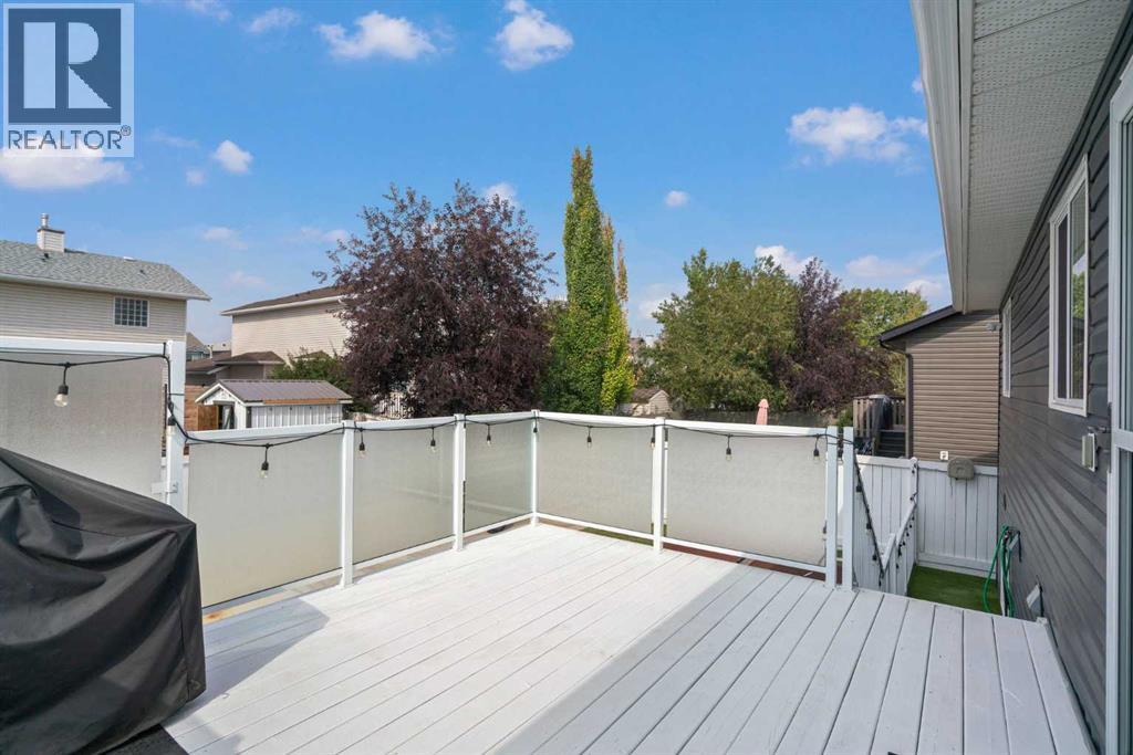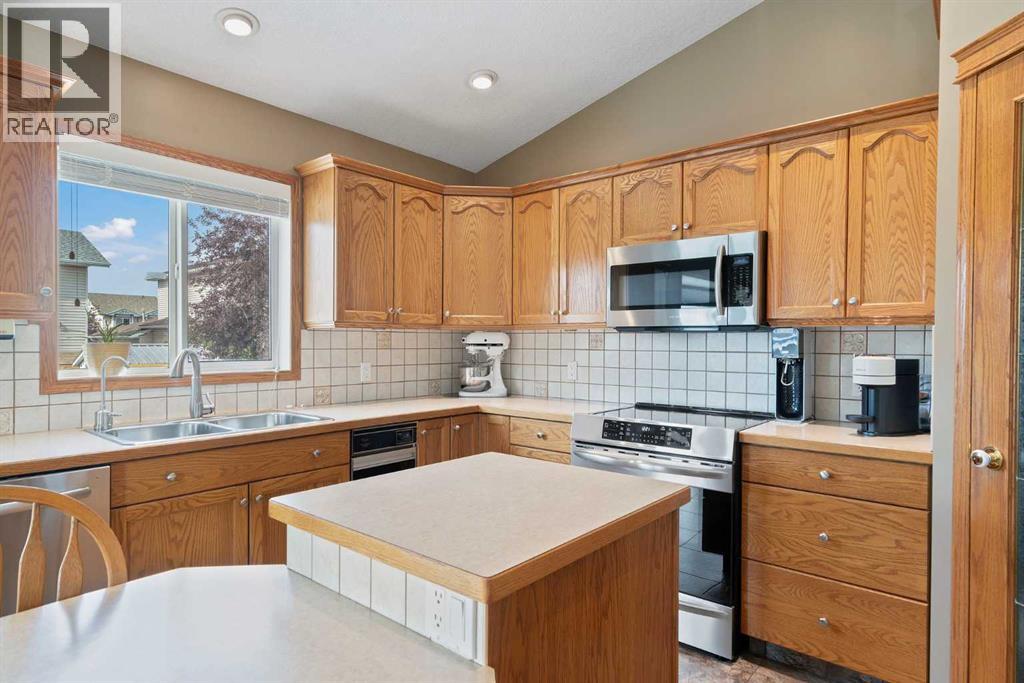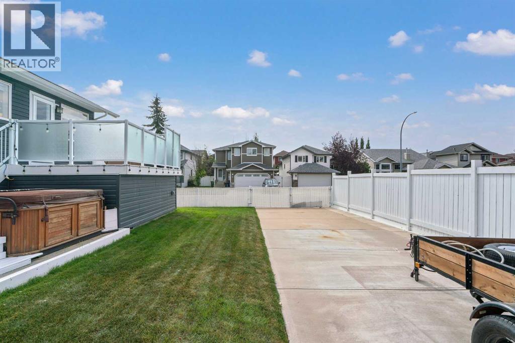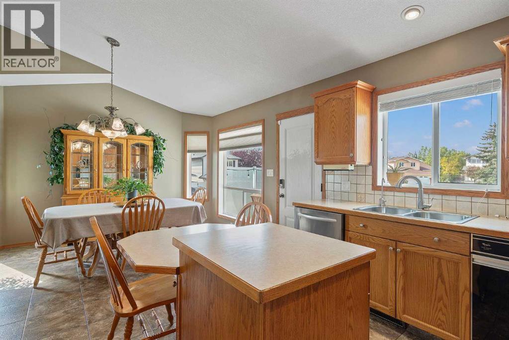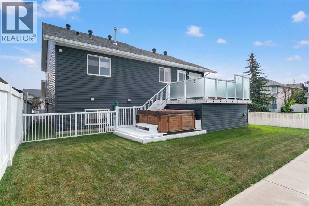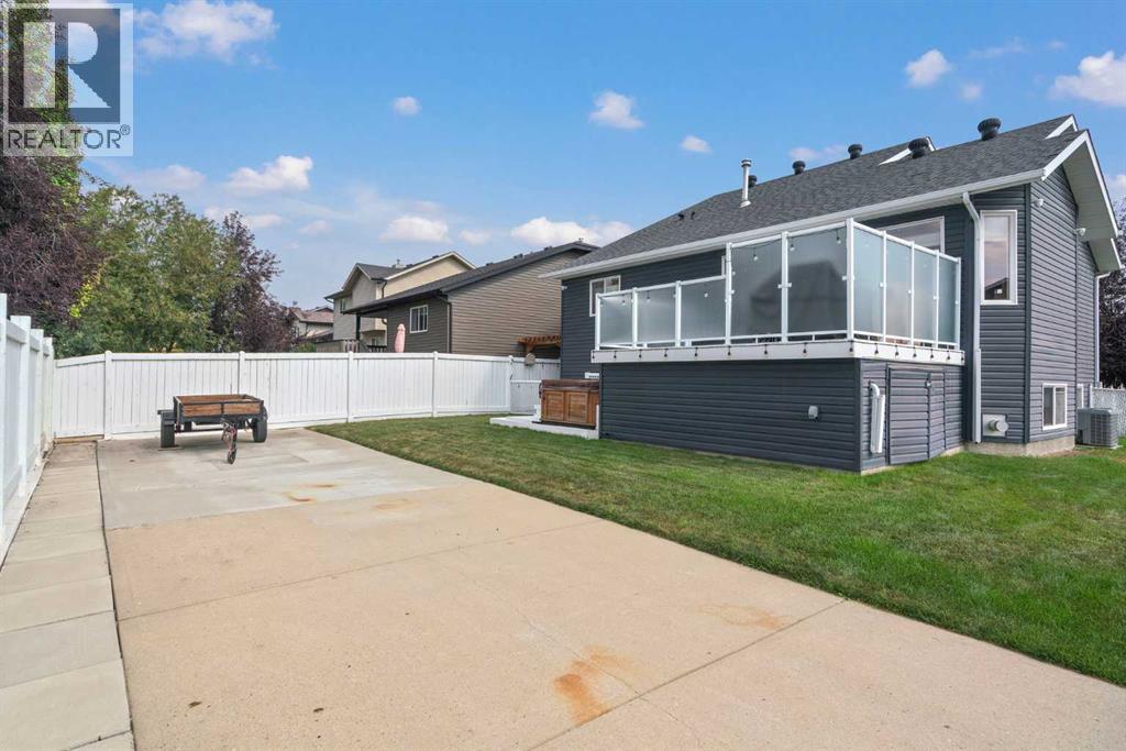 Welcome to this custom-built bi-level in one of Airdrie’s most desirable communities—The Canals. Offering 2,515 sq. ft. of finished living space (1,466 + 1,049 sq. ft.), this 5 bedroom, 3 bathroom home is the perfect blend of function, comfort, and style. Ideally located on a quiet circle, it sits on a generous 16 x 34 m interior corner lot with a sunny west-facing backyard and convenient rear RV/5th wheel parking access. Inside, vaulted ceilings and newer oversized windows fill the home with natural light. The spacious country-style kitchen offers abundant cabinetry, stainless steel appliances, and an island with an attached eating table. The dining and living areas are framed with solid oak railings, trim, and baseboards that add warmth and timeless character. Just a few steps above, the private primary retreat features a large walk-in closet and 4-piece ensuite with a corner soaker tub. Two more bedrooms and a full bath complete the main level. The professionally developed lower level includes two large bedrooms with egress windows (one with a walk-in closet, the other with storage access), a full bathroom, and a spacious recreation room with corner fireplace, plus projector and screen for family movie nights. Direct basement access from both the garage and exterior provides great flexibility for extended family or guests. This home has been meticulously updated with new vinyl siding, roof shingles, soffits, eaves, fascia, windows, exterior and garage doors, high-efficiency mechanicals, on-demand hot water, central A/C, and a multi-camera security system. The oversized double attached garage is insulated, heated, drywalled and finished with checkered tile flooring. The extra wide driveway easily fits three more vehicles. Step outside to enjoy a large deck with frosted glass panels overlooking the landscaped backyard, dog run with astro turf, manual underground sprinklers, and enclosed dry storage under the deck. This location is unbeatable, steps from Ralph McCa ll (K-4), CW Perry (5-9), Our Lady Queen of Peace (K-9), soccer fields, a boarded year-round rink, baseball diamond, and basketball courts. Everyday amenities, restaurants, pubs, fitness, and the Airdrie Golf & Country Club are all nearby. This is a rare opportunity to own a move-in ready home in a sought-after family community—perfect for entertaining, family life, and making lasting memories. (id:53676)