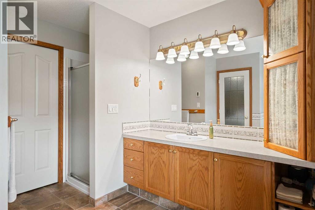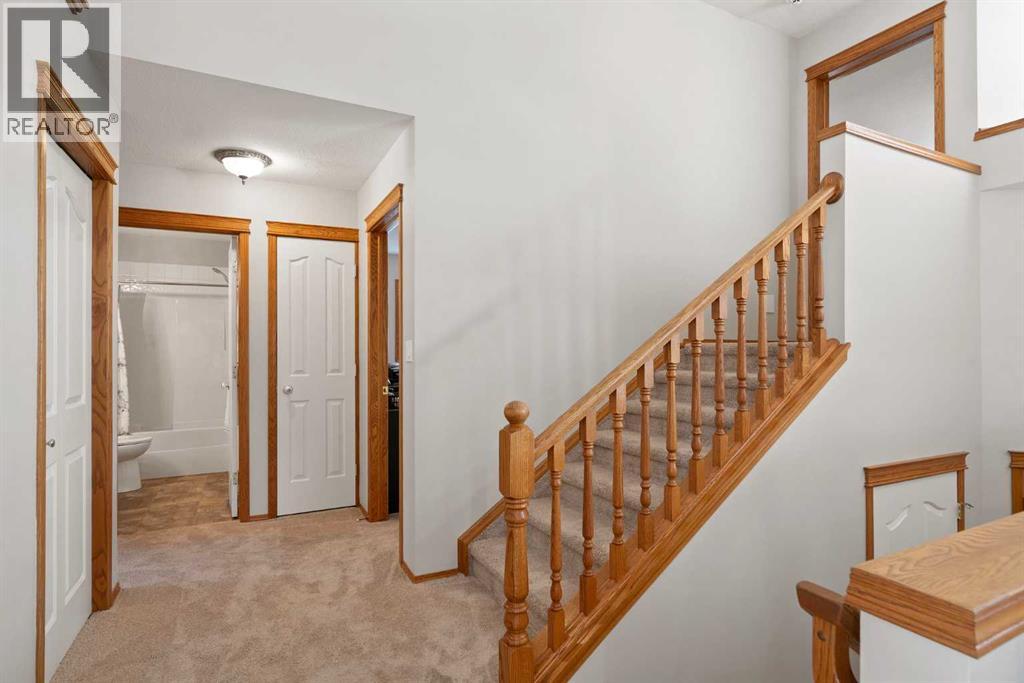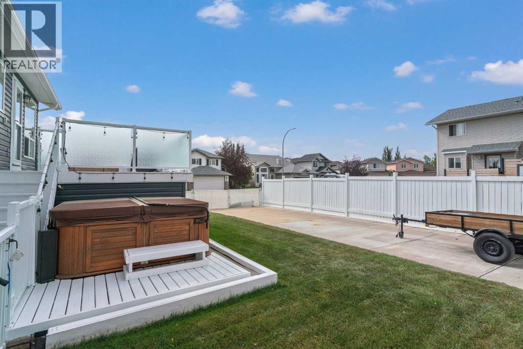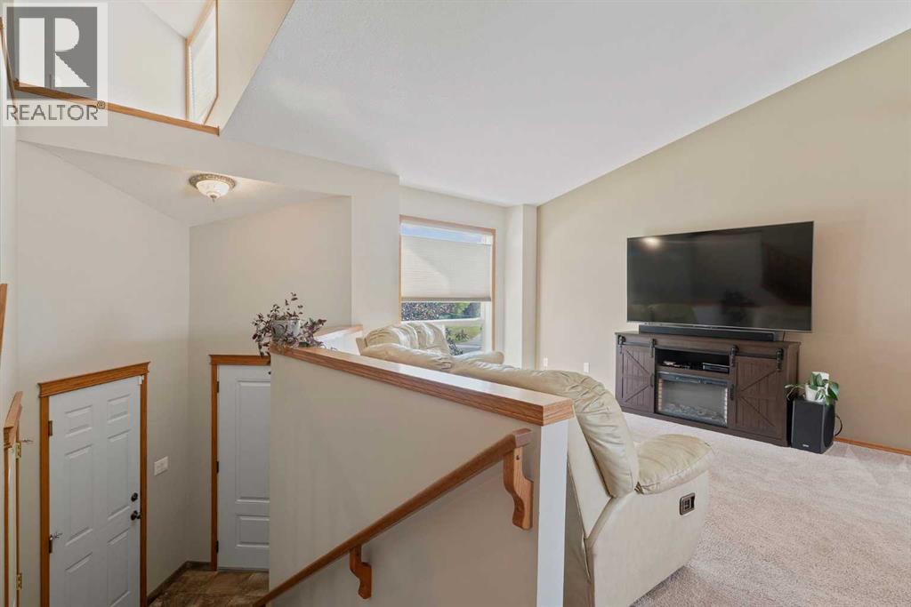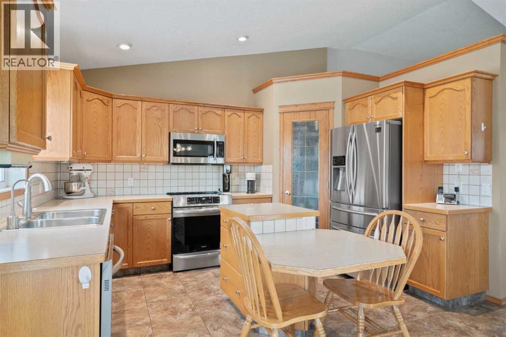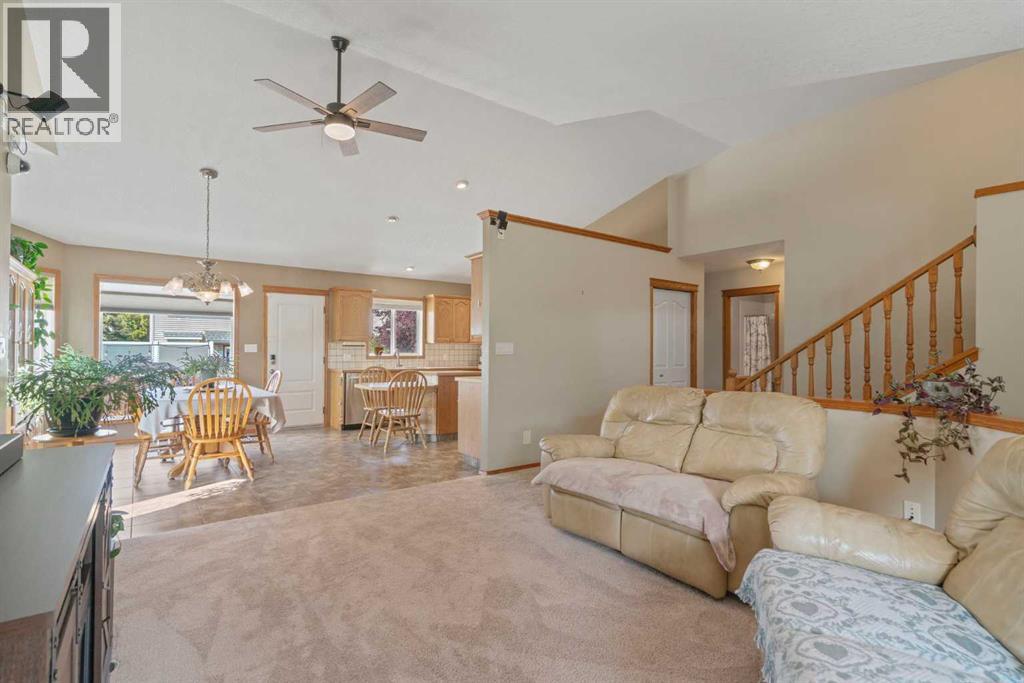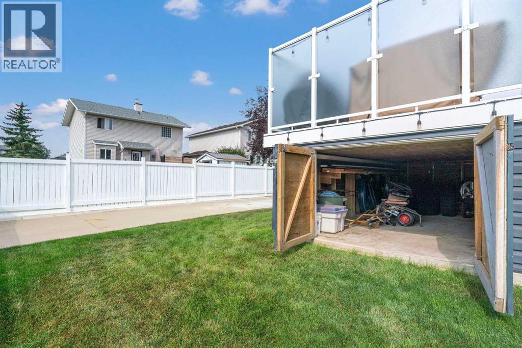 Welcome to this custom-built bi-level in one of Airdrie’s most desirable communities—The Canals. Offering 2,515 sq. ft. of finished living space (1,466 + 1,049 sq. ft.), this 5 bedroom, 3 bathroom home is the perfect blend of function, comfort, and style. Ideally located on a quiet circle, it sits on a generous 16 x 34 m interior corner lot with a sunny west-facing backyard and convenient rear RV/5th wheel parking access. Inside, vaulted ceilings and newer oversized windows fill the home with natural light. The spacious country-style kitchen offers abundant cabinetry, stainless steel appliances, and an island with an attached eating table. The dining and living areas are framed with solid oak railings, trim, and baseboards that add warmth and timeless character. Just a few steps above, the private primary retreat features a large walk-in closet and 4-piece ensuite with a corner soaker tub. Two more bedrooms and a full bath complete the main level. The professionally developed lower level includes two large bedrooms with egress windows (one with a walk-in closet, the other with storage access), a full bathroom, and a spacious recreation room with corner fireplace, plus projector and screen for family movie nights. Direct basement access from both the garage and exterior provides great flexibility for extended family or guests. This home has been meticulously updated with new vinyl siding, roof shingles, soffits, eaves, fascia, windows, exterior and garage doors, high-efficiency mechanicals, on-demand hot water, central A/C, and a multi-camera security system. The oversized double attached garage is insulated, heated, drywalled and finished with checkered tile flooring. The extra wide driveway easily fits three more vehicles. Step outside to enjoy a large deck with frosted glass panels overlooking the landscaped backyard, dog run with astro turf, manual underground sprinklers, and enclosed dry storage under the deck. This location is unbeatable, steps from Ralph McCa ll (K-4), CW Perry (5-9), Our Lady Queen of Peace (K-9), soccer fields, a boarded year-round rink, baseball diamond, and basketball courts. Everyday amenities, restaurants, pubs, fitness, and the Airdrie Golf & Country Club are all nearby. This is a rare opportunity to own a move-in ready home in a sought-after family community—perfect for entertaining, family life, and making lasting memories. (id:53676)