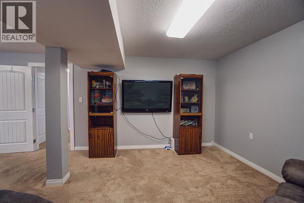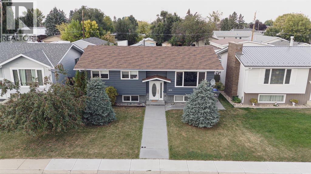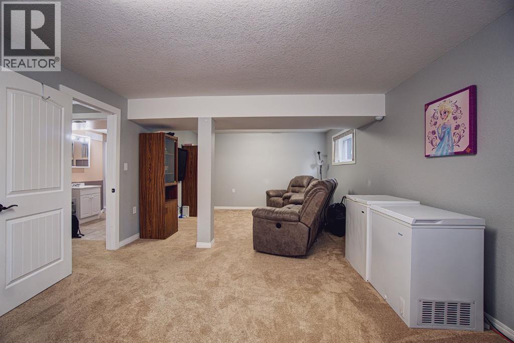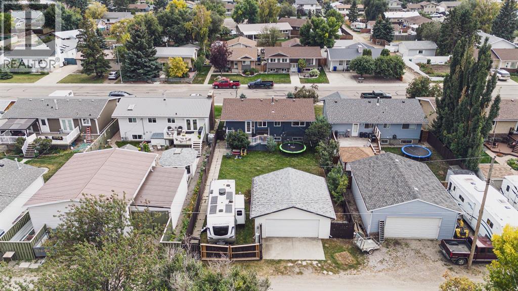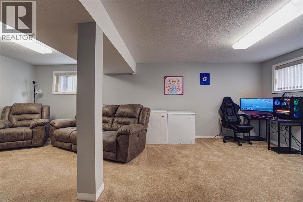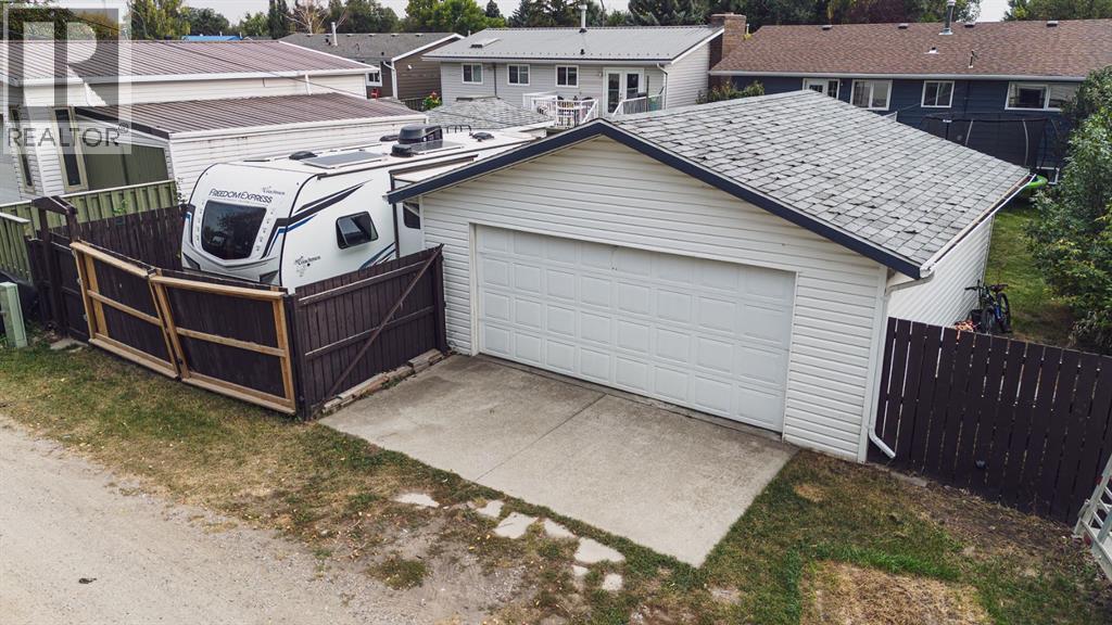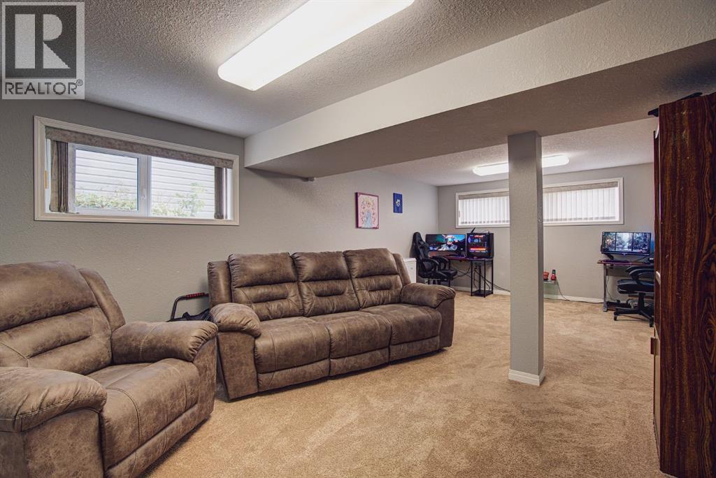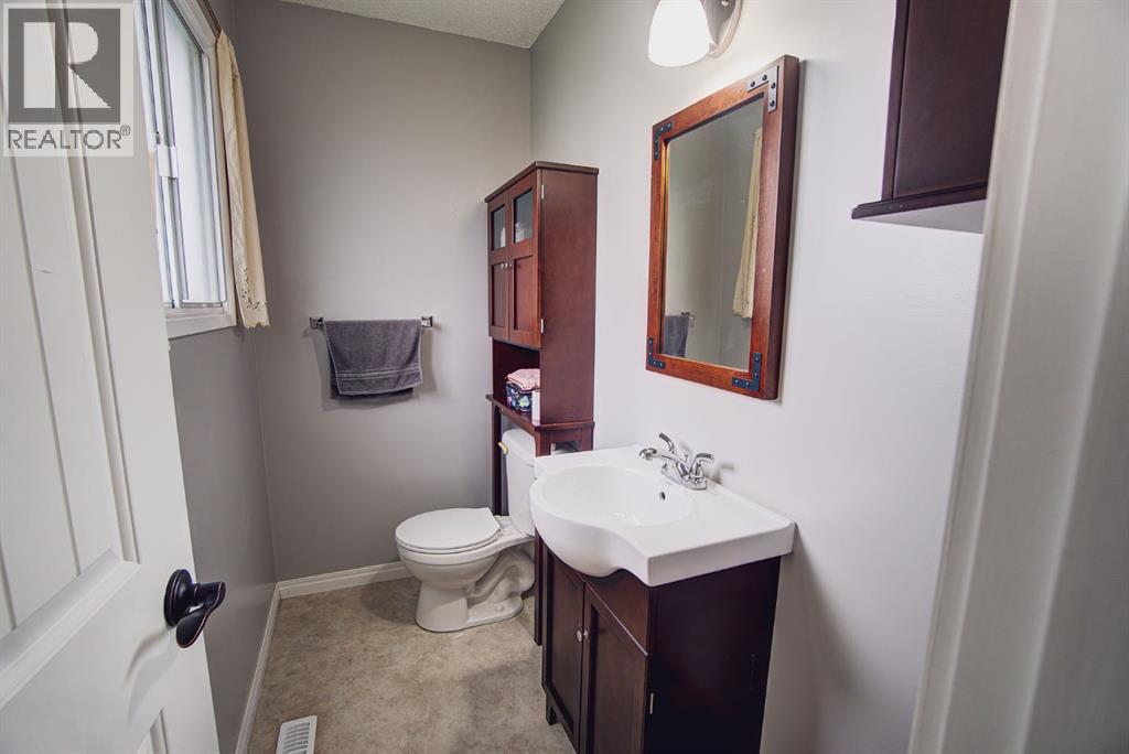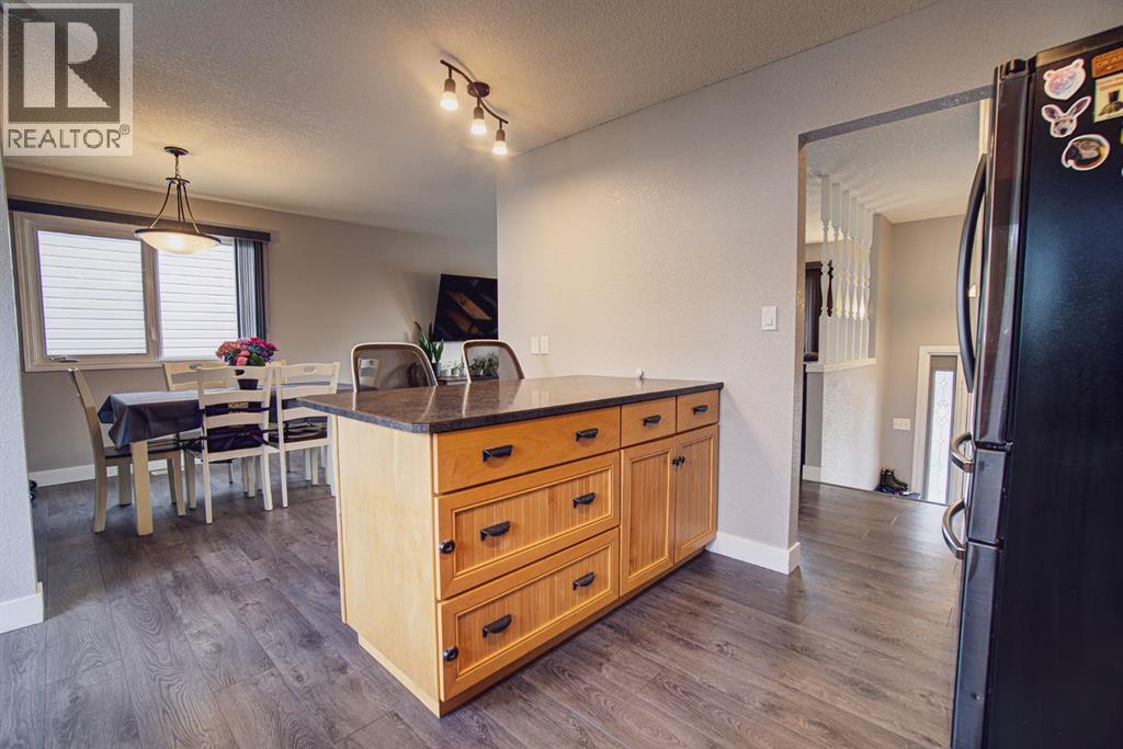 Welcome to this inviting bi-level home, perfectly designed for both comfort and functionality. The main floor offers a bright and spacious front living room with huge south-facing windows that flood the space with natural light. The beautifully updated kitchen features classic shaker-style cabinets, newer appliances, and a convenient eat-up counter, while the adjoining dining area provides direct access to the backyard and deck. Three bedrooms complete the main level, including a primary suite with a view of the backyard and its own private 2-piece ensuite. Stylish laminate flooring, updated baseboards, and a refreshed 4-piece main bath bring a modern touch throughout the space. The fully developed lower level makes the most of the bi-level design with its larger windows, creating a warm and welcoming atmosphere. Here you’ll find a private and spacious family room, two additional bedrooms—one with enough room for a home office area—and a 3-piece bathroom. Step outside to enjoy the upgraded north-facing deck, perfect for entertaining. The backyard is well set up with back alley access, RV parking, plenty of space for toys or a garden and a spacious garage. Just a few blocks from Lions Park and within easy reach of downtown, schools, and walking paths, this home combines small-town charm with everyday convenience. (id:53676)