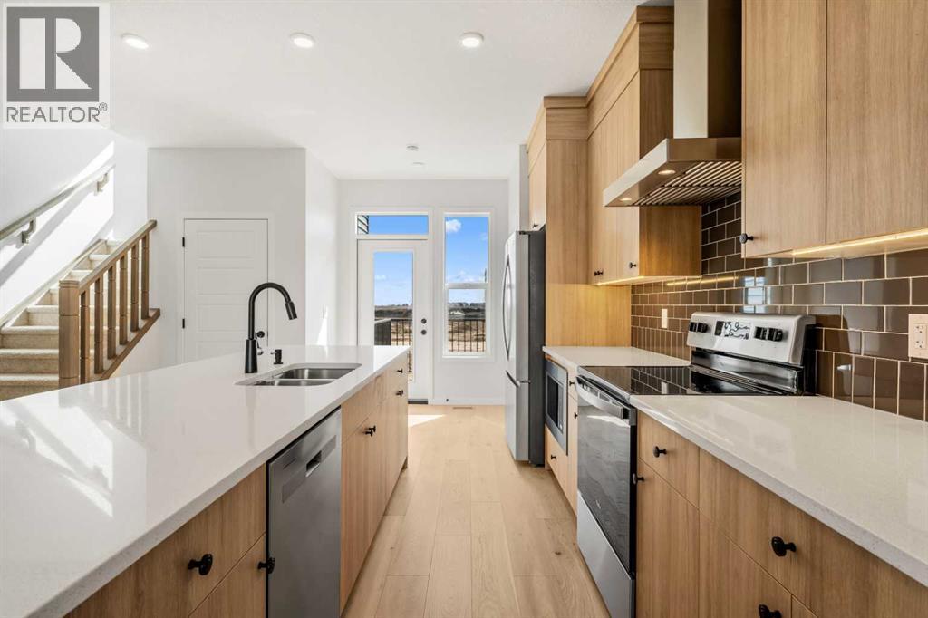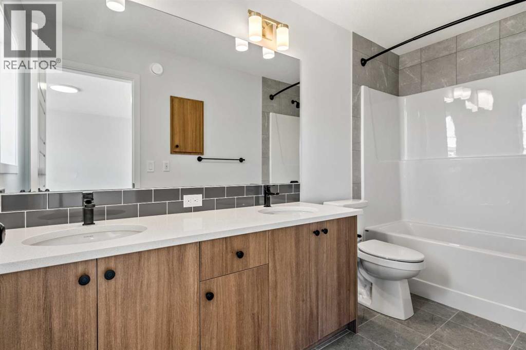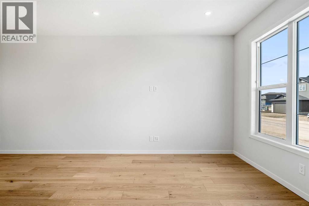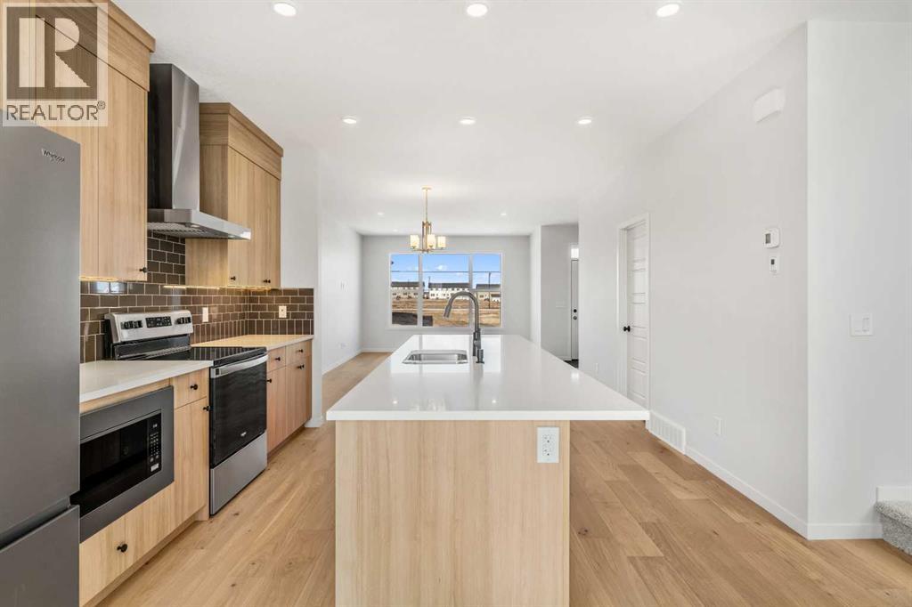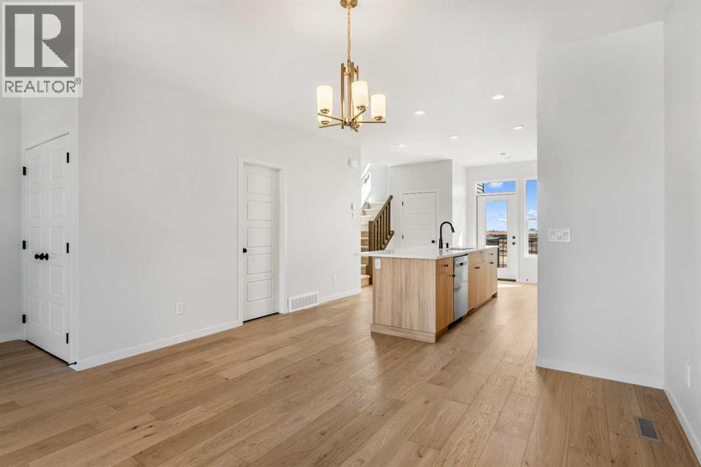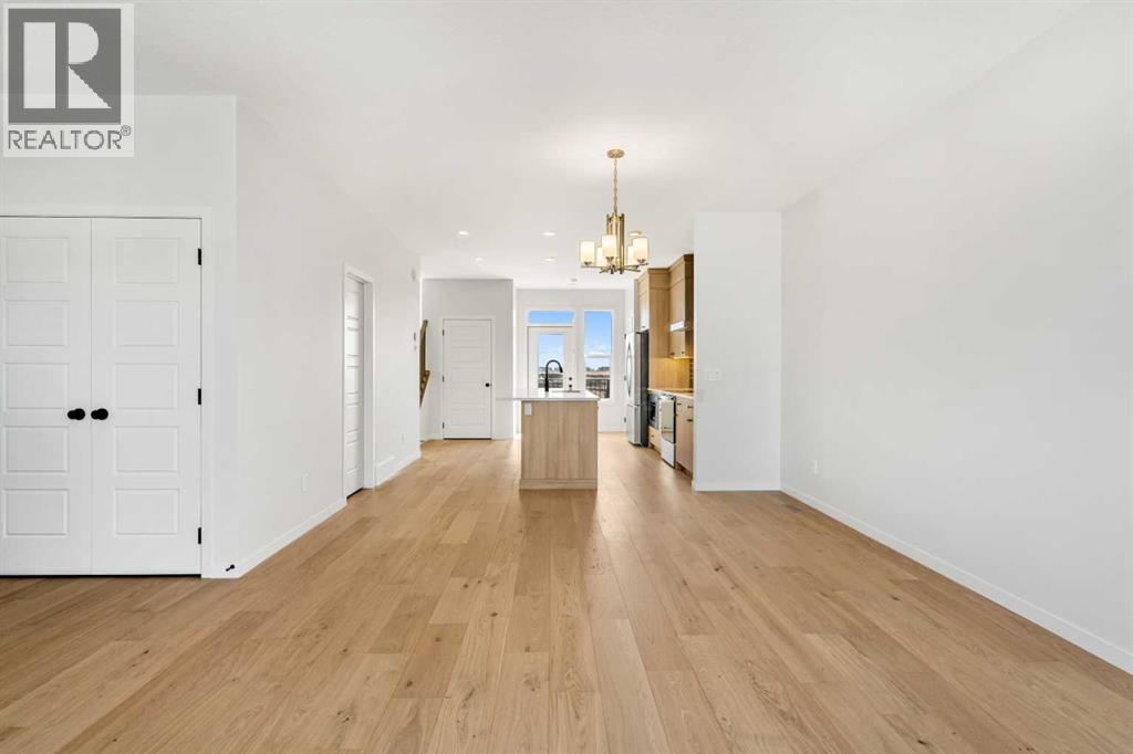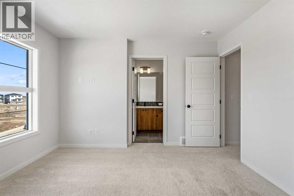 Welcome to 659 Chelsea Pier Run, a beautifully designed brand-new two-storey home offering over 1,600 sq. ft. of thoughtfully planned living space in the growing and family-friendly community of Chelsea in Chestermere. With modern finishes, a functional layout, and immediate possession available, this home is ideal for first-time buyers, families, or investors seeking a move-in-ready property just minutes from Calgary.The main floor features a bright and open-concept design that seamlessly connects the kitchen, dining, and living areas, creating a welcoming space for both everyday living and entertaining. Large windows allow natural light to fill the home, enhancing the clean and modern aesthetic. The kitchen offers ample cabinetry, generous counter space, and a central island with breakfast bar seating, making meal preparation both efficient and enjoyable. The adjacent dining area provides comfortable space for family gatherings, while the living room offers a relaxing setting to unwind. A convenient 2-piece powder room completes the main level. Step outside to the rear deck with BBQ gas line, perfect for summer evenings and outdoor entertaining. Upstairs, the home offers three well-sized bedrooms, including a comfortable primary retreat featuring a walk-in closet and private 5-piece ensuite designed to provide both comfort and functionality. Two additional bedrooms share a full bathroom, making this level ideal for families or guests. The upper-level laundry adds everyday convenience and practicality.The unfinished basement provides excellent potential for future development, offering flexibility to create additional living space such as a recreation room, home office, gym, or guest area tailored to your needs. Suite Rough - in for future development.Additional highlights include engineered hardwood flooring, modern finishes, functional storage solutions, and a rear parking pad with space for two vehicles. Located in Chelsea, a thoughtfully planned Chest ermere community, residents enjoy convenient access to parks, playgrounds, walking paths, schools, shopping, and everyday amenities, all while being a short drive from Calgary. This welcoming neighbourhood offers a balance of comfort, accessibility, and future growth potential.With its modern design, practical layout, and opportunity for future customization, 659 Chelsea Pier Run presents an excellent opportunity to own a new home in a vibrant and expanding community. (id:53676)