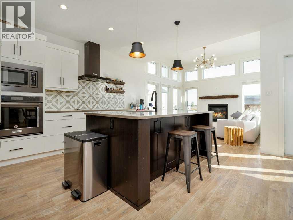 This stunning 2-storey former showhome is packed with upgrades and style! Featuring 5 bedrooms, an open-concept main floor with tons of natural light, sleek black chrome appliances, and a striking feature fireplace. Upstairs, skylights brighten the bonus room and the spacious primary suite offers a dream ensuite. Enjoy vaulted ceilings, A/C, blinds, a finished deck, underground sprinklers, full landscaping, and a solar system from Energy Smart! Move-in ready and beautifully designed! (id:53676)