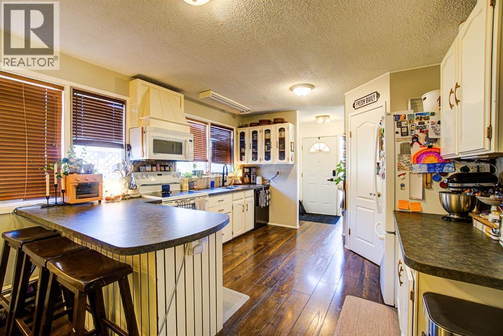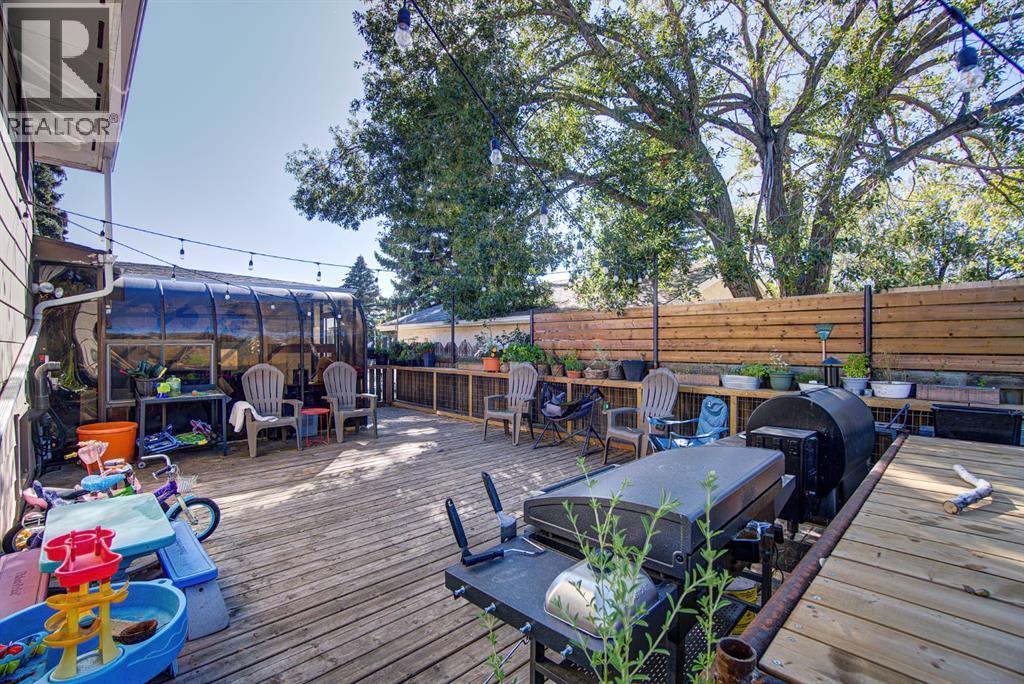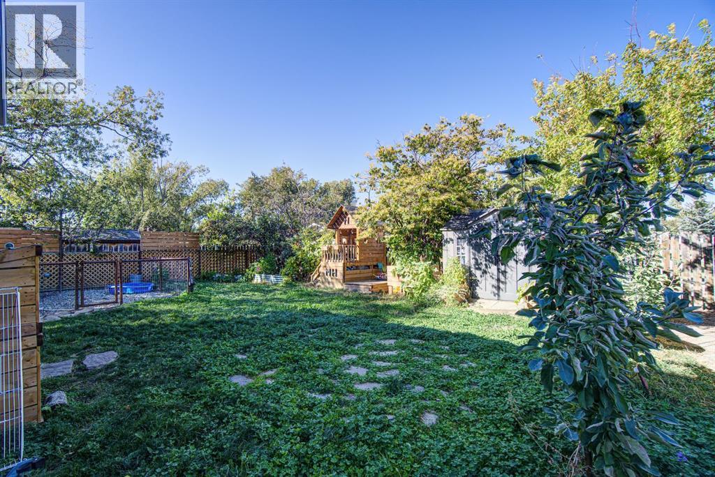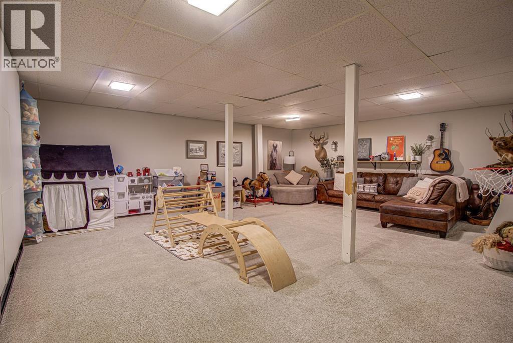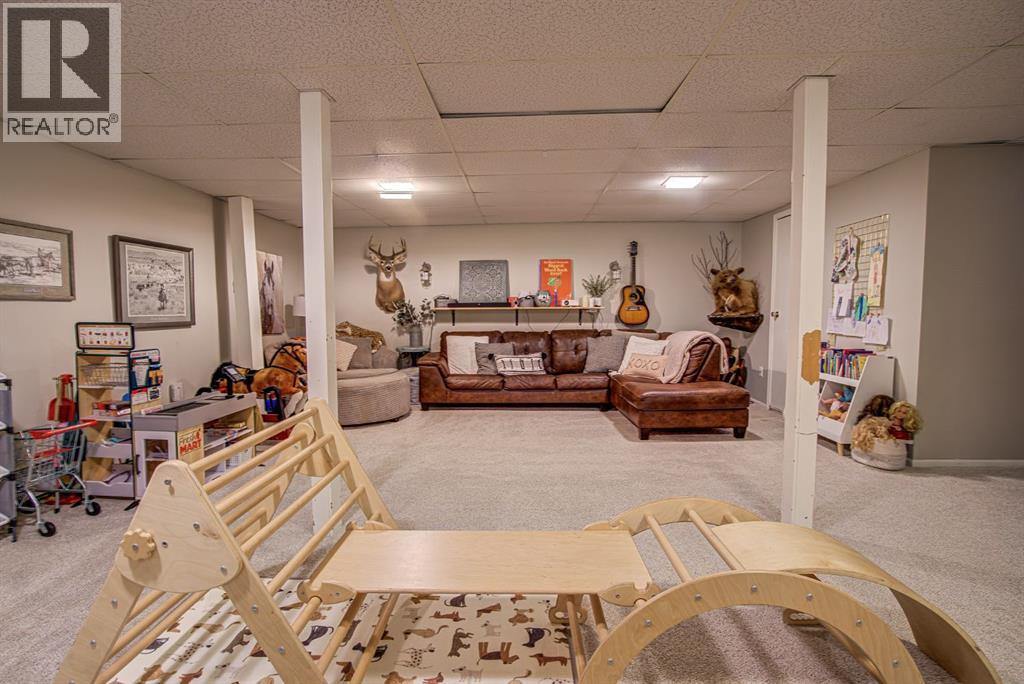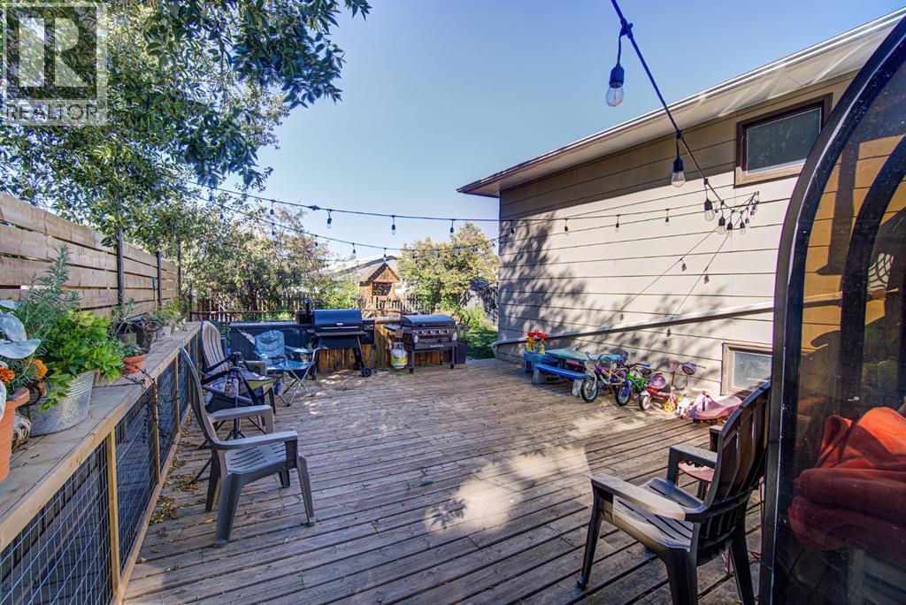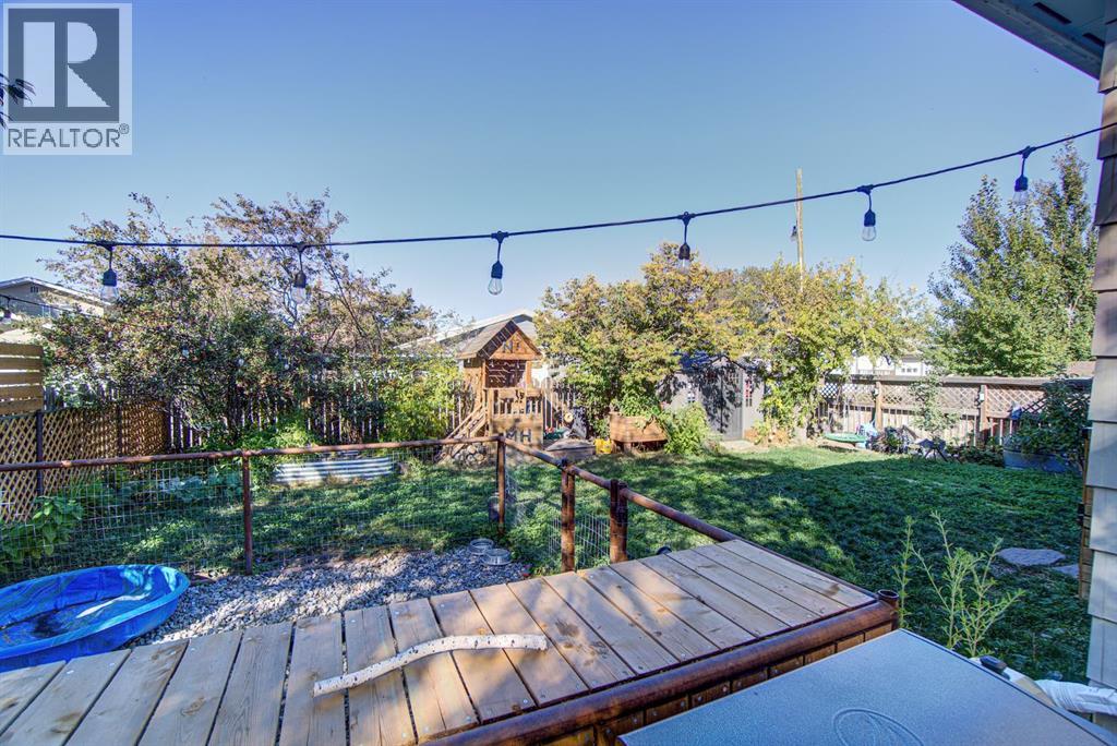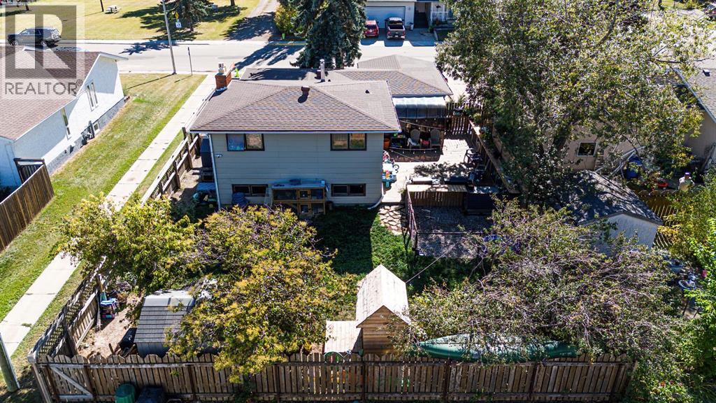 Welcome to this ideal family home, perfectly situated just a stone’s throw from Lions Park and within easy walking distance to downtown, schools, and scenic walking paths. This inviting split-level home truly has it all. Step inside to discover a charming farmhouse-style galley kitchen featuring a corner pantry, ample cabinetry, and generous counter space. The spacious dining area flows seamlessly into the large living room, where south-facing windows fill the space with natural light. From the dining room, step into the bright sunroom — the perfect spot to enjoy your morning coffee or unwind after a long day. Upstairs, you’ll find a 4-piece bathroom with convenient access from the spacious primary bedroom, which overlooks the private backyard. Two additional bedrooms complete the upper level, offering plenty of space for family or guests. The lower level features a cozy family room anchored by a gas fireplace, a convenient office nook, a generous laundry area, and a 2-piece bath. The basement level provides a versatile games or theater room plus additional storage. Enjoy the convenience of an attached single garage and the privacy of a large, fully fenced backyard. Mature trees provide shade and character, while the expansive deck offers plenty of room for entertaining. With back alley access and a side walking path, this home is both welcoming and practical — ready for you to move in and fall in love. (id:53676)