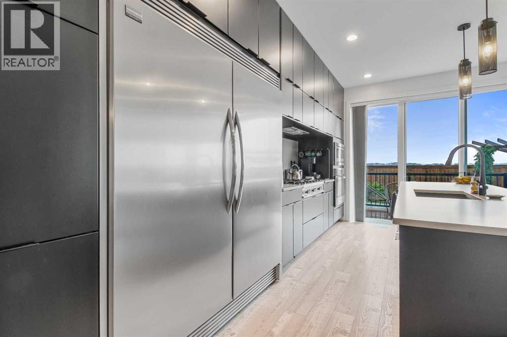 Situated in desirable Garry Station, just steps from the brand-new K–5 elementary school, this home seamlessly blends modern sophistication with bold design and everyday functionality. From the moment you walk in, you’re welcomed by soaring ceilings and a striking floor-to-ceiling tiled feature wall with a sleek gas fireplace—creating an elegant focal point in the open-concept living and kitchen area. Expansive windows flood the main floor with natural light, complete with remote-controlled blinds and an uninterrupted view—no rear neighbours, just privacy and peace. The kitchen is a true showpiece with a built-in wall oven, integrated refrigerator, gas cooktop, and an oversized island that flows effortlessly into the dining area—perfect for everyday living or stylish entertaining. Also on the main floor, enjoy the convenience of a half bath, main-floor laundry, and a well-designed mudroom with plenty of storage just off the attached garage. Downstairs, the fully finished basement continues the home’s modern aesthetic with a spacious second living room, a large bedroom, and a beautifully finished bathroom with a tiled walk-in shower. Upstairs, the industrial-style railing guides you to a bright bonus living space, two additional bedrooms, and a beautifully designed 4-piece bathroom. At the end of the hall, the primary suite offers a luxurious retreat with floor-to-ceiling windows and a thoughtfully placed feature window. The ensuite includes a double vanity, walk-in tile shower, and a walk-in closet that checks every box. As a bonus, the custom bedframes in both the primary and secondary bedrooms stay—perfectly complementing the home’s curated style. Contact your REALTOR® to book a private showing today! (id:53676)