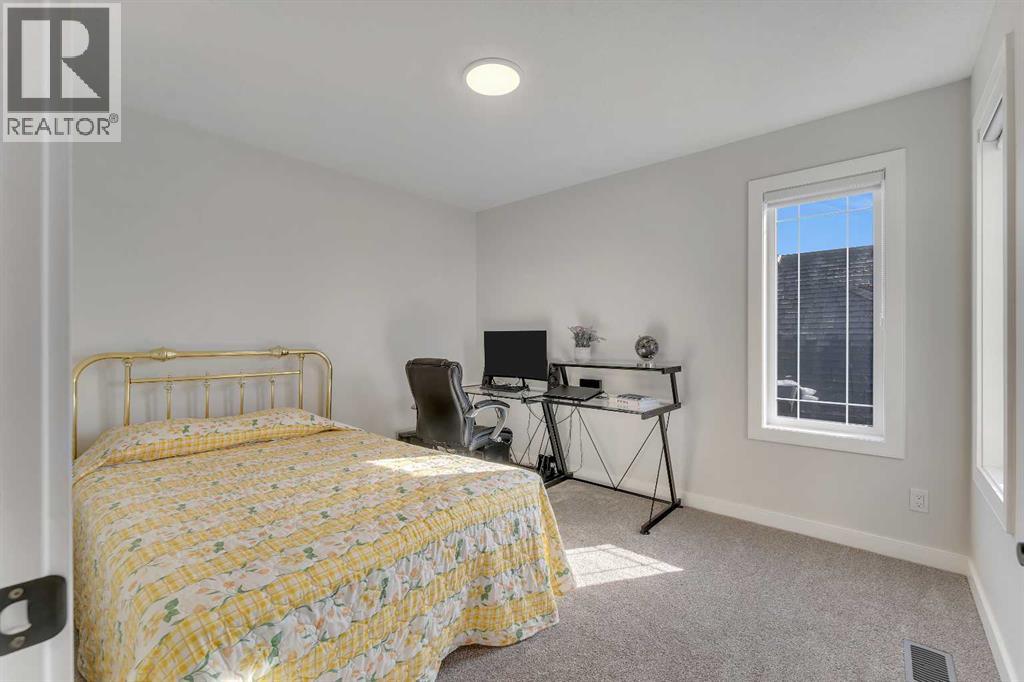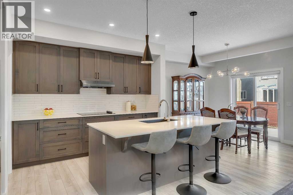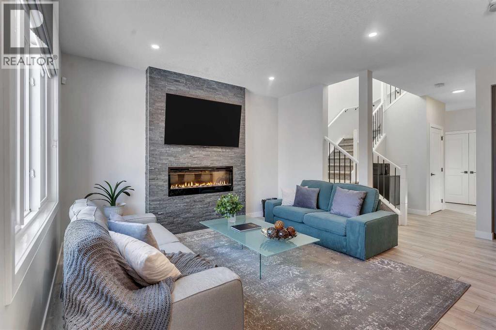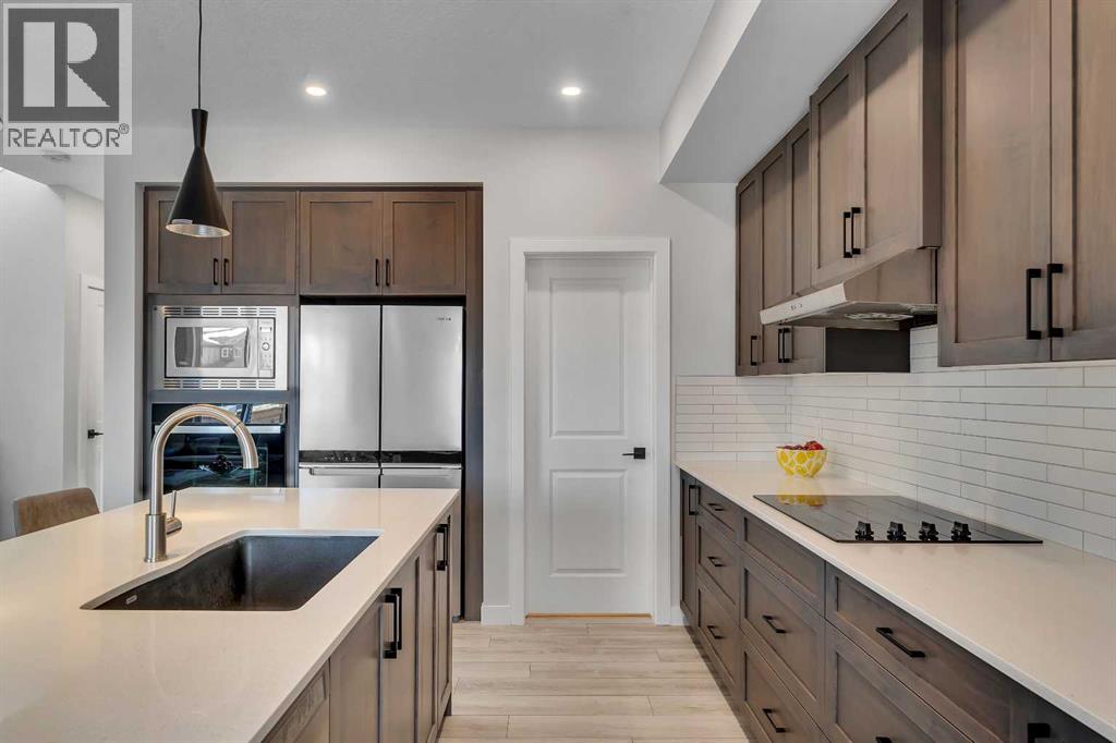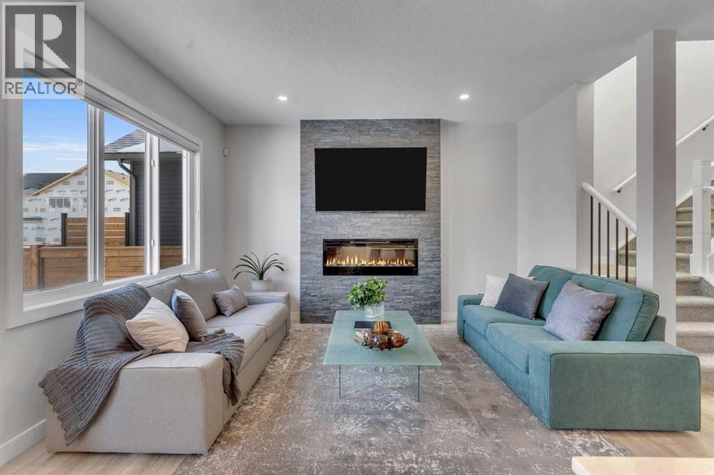 Step into this beautifully upgraded Shane Homes 2023 build, where thoughtful design and quality finishes come together. The open-concept main floor is bright and welcoming, with 9' ceilings and luxury vinyl plank flooring, and an inviting colour palette is continuous throughout the home. At the heart of the home is a standout, upgraded kitchen that will delight the home's chef. Featuring a sleek cooktop, built-in oven and microwave, stainless steel appliances, stunning cabinetry, and a large island, it's the kind of space that is made for entertaining. The adjacent dining area easily hosts family gatherings, while the living room is anchored by a striking floor-to-ceiling fireplace that adds warmth and character. Out back, you'll find a great-sized yard that's unspoiled and ready for your vision, whether that's a deck, landscaping, or a full outdoor retreat. Upstairs, the open space below the stairwell with additional windows and triple-pane glass throughout the home floods the space with natural light. A central bonus room creates separation between the primary suite and the secondary bedrooms. The primary suite is a true retreat, complete with a spacious walk-in closet and a spa-inspired ensuite featuring dual sinks, a soaker tub, and an oversized shower. Added insulation between the garage and bedrooms enhances comfort for family or guests, while a full bathroom and convenient upper-level laundry round out the space. The unfinished basement is a blank canvas, ready for your needs. Located in the desirable community of Cobblestone Creek in Airdrie, this home offers a quieter setting with quick access to parks, pathways, and everyday amenities. It's a growing area known for its family-friendly feel, modern homes, and easy access to Calgary, making it a smart choice for both lifestyle and long-term value. (id:53676)