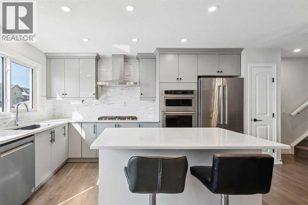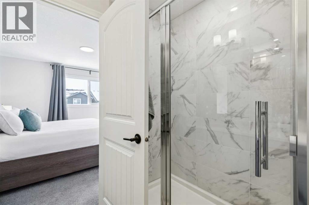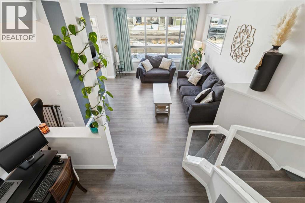 Step into this inviting and thoughtfully designed home where functionality meets style. The main entry offers a practical space for coats and shoes before opening into a bright living room with soaring ceilings and a unique split-level layout that creates defined spaces while maintaining an open, connected feel. Clever nooks throughout the home add character and flexibility—perfect for storage, a pet retreat, or a compact workspace. Up a short flight of stairs, the kitchen and dining area feature an upgraded appliance package, central island, and convenient half bath, all enhanced by an abundance of natural light from extra windows. From here, step outside to a two-tiered deck that mirrors the home’s thoughtful segmentation, overlooking a fully fenced, grassed backyard ideal for kids and pets. The upper levels continue to impress with a bedroom complete with ensuite and closet, while the top floor hosts a spacious primary retreat with a walk-in closet, double vanity ensuite, and the added convenience of upstairs laundry. The fully developed basement provides a versatile rec space along with a large crawl space offering exceptional storage. Additional highlights include on-demand hot water, gemstone exterior lighting, and front and rear Ring cameras for peace of mind. Top it all off with solar panels for energy and cost savings!Located in the growing community of Rangeview, this home benefits from a fresh, family-friendly atmosphere with parks and green spaces just a short walk away. Rangeview Calgary is known for its focus on community living, with future amenities and gathering spaces designed to bring neighbours together while still offering easy access to the rest of the city. (id:53676)