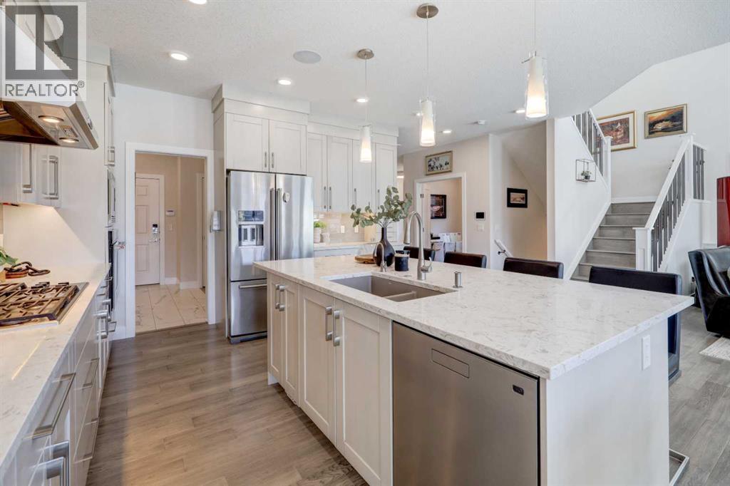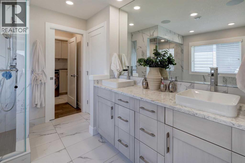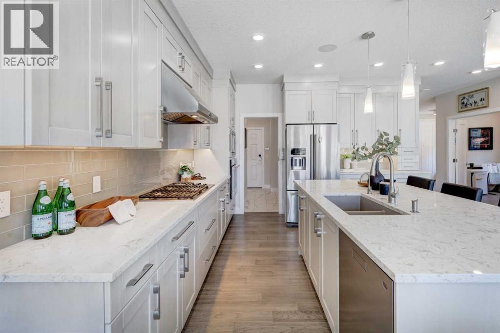 Welcome to this exceptional home tucked away on a quiet, coveted cul-de-sac in the heart of West Springs—one of Calgary’s most sought-after family communities. Backing onto protected greenspace and a scenic walking path, this property offers rare privacy and a serene connection to nature—right in the city. Thoughtfully designed for low-maintenance living, the fully fenced backyard features artificial grass, beautiful landscaping, and a multi-level composite deck with a pergola and private hot tub. This outdoor oasis is perfect for entertaining or unwinding, year-round. Inside, the main floor offers a spacious and functional layout with a dedicated home office, a large walk-in pantry, a private offset powder room, and a bright, open-concept kitchen, dining, and living area. Soaring ceilings, custom millwork, and expansive windows flood the space with natural light and create a sense of openness. The chef-inspired kitchen boasts high-end appliances and dedicated outlets for Asian appliances—combining luxury with everyday practicality. Upstairs, you’ll find three generously sized bedrooms, including one that has been converted into a custom walk-in closet. A bright bonus room with vaulted ceilings and built-in shelving provides flexible space—ideal as a second office, playroom, or easily converted into a fourth bedroom. The laundry room is conveniently accessible from both the primary ensuite and main hallway, streamlining daily routines for busy families. The luxurious primary suite offers in-floor heating throughout the bedroom and ensuite. The spa-inspired bathroom features an oversized soaker tub, separate shower, dual vanities with individual prep areas, and impressive his-and-hers walk-in closets—your personal retreat within the home. This property is equipped with a premium Elan smart home integration system, allowing seamless control of lighting, entertainment, security, cameras, and locks—all at your fingertips. The triple heated garage is a standout feature, with epoxy flooring, built-in storage, and a dedicated workspace—perfect for car enthusiasts, hobbyists, or those in need of extra space. A private entrance from the garage leads into the fully finished basement, which includes a spacious living area, full four-piece bathroom, and a large bedroom. An additional flex room is currently set up with a second kitchen, laundry area, and workspace—complete with included fridge, stove, microwave, washer, and dryer. This level can be closed off from the rest of the home, making it ideal for multi-generational living, or hosting long-term guests. This home seamlessly blends luxury, functionality, and an unbeatable location. With a thoughtful layout, premium upgrades, and unparalleled versatility, this is a rare opportunity not to be missed. Located in West Springs—a community known for its top-rated schools, boutique shopping, family-friendly atmosphere, and easy access to both downtown and the mountains. Call your realtor today! (id:53676)