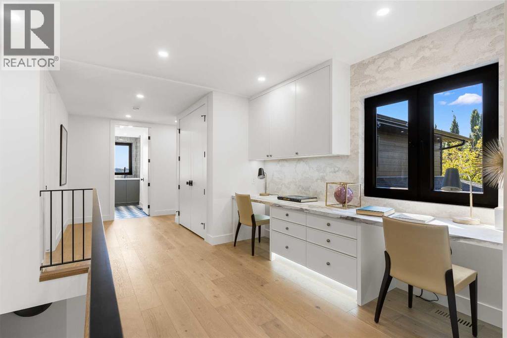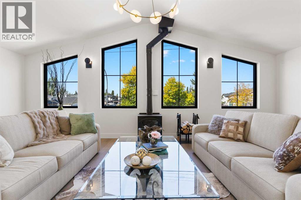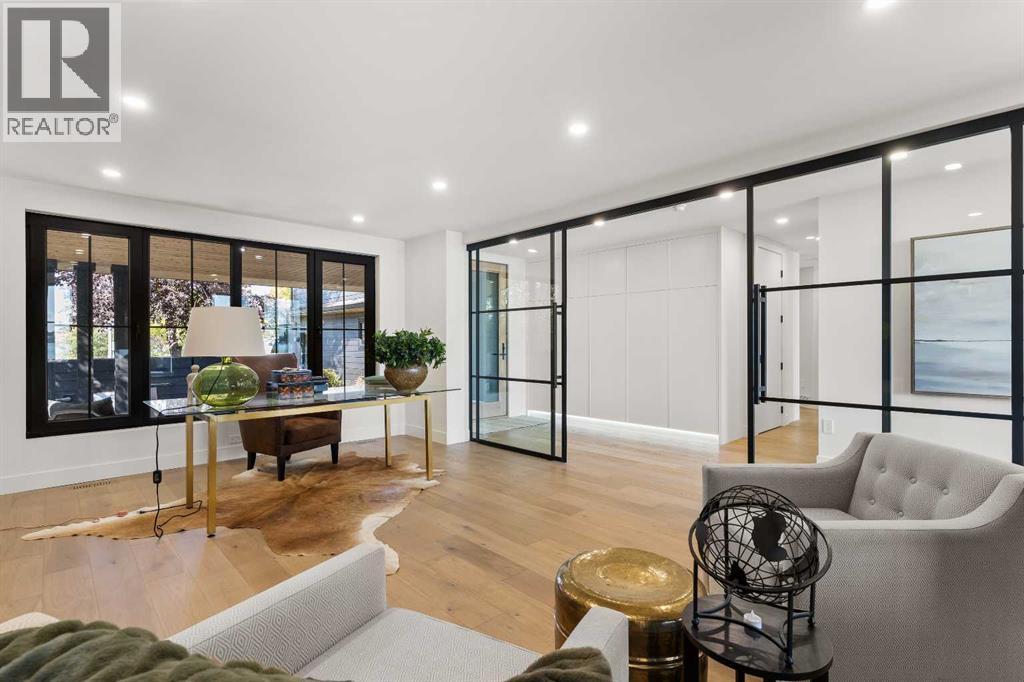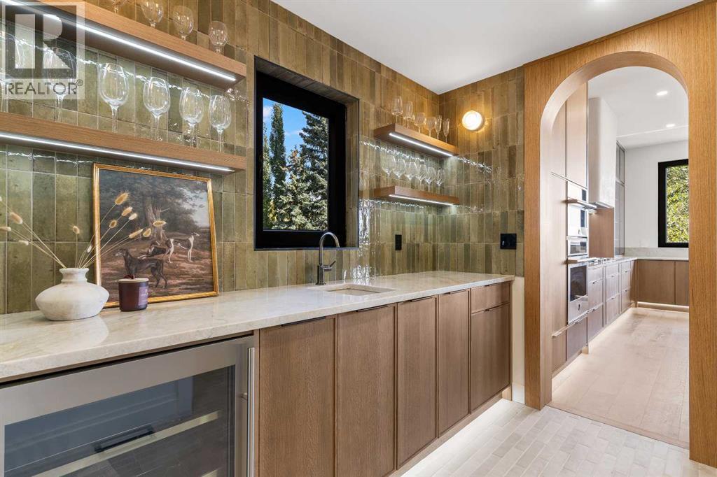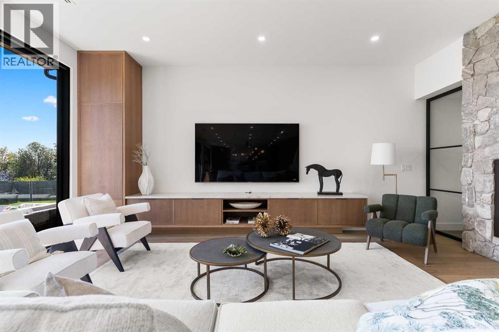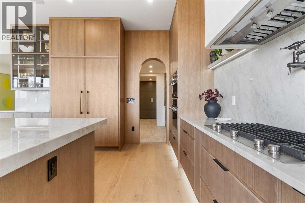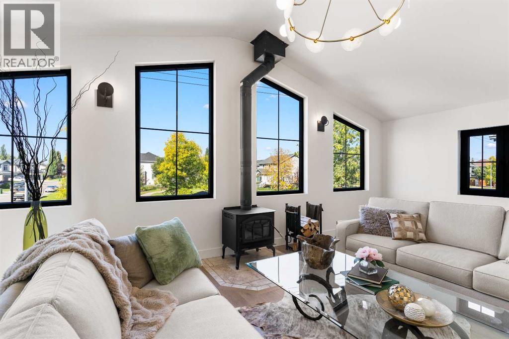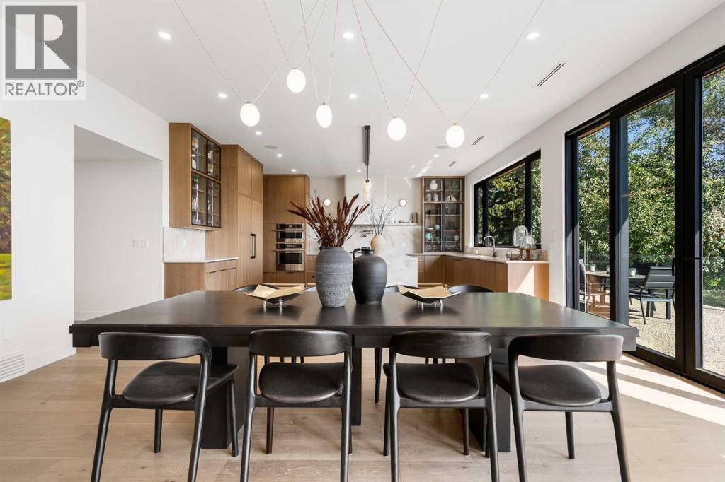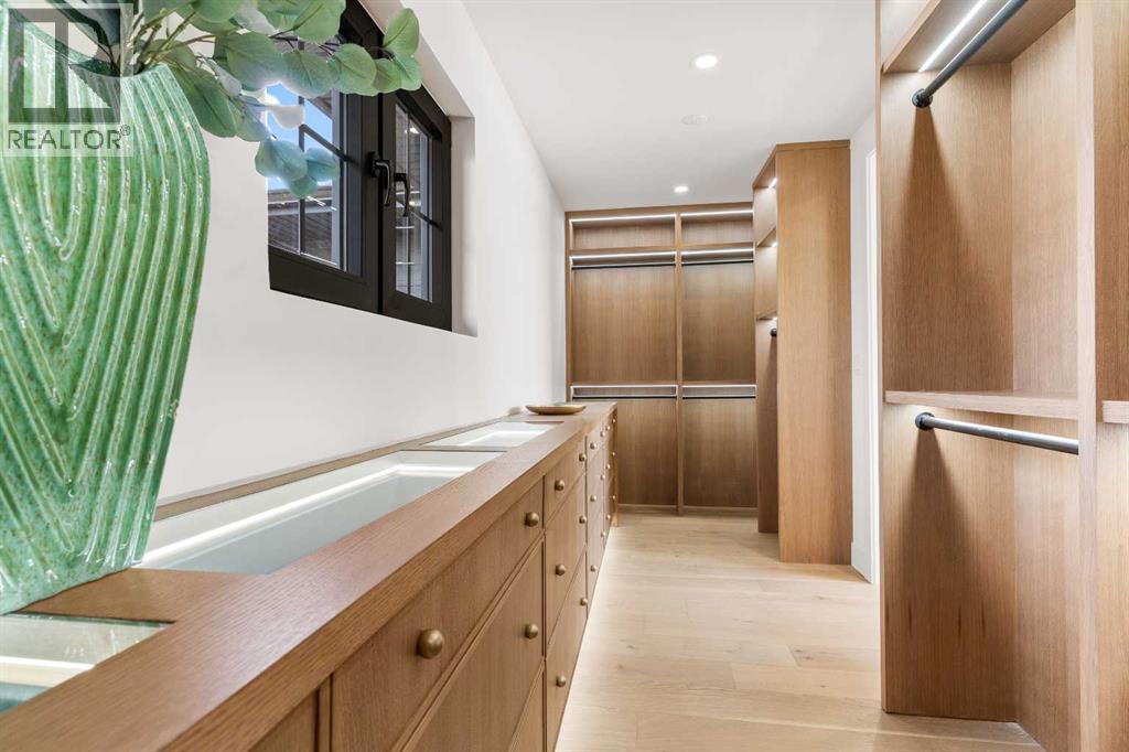 *Welcome to Lakeside Luxury on Chestermere Lake* With 4,482 sq. ft. of fully reimagined living space, this lakefront estate blends architectural sophistication with modern comfort on one of Chestermere Lake’s most exclusive stretches of shoreline. This complete renovation and design is an intricate remodel + extension, showcasing soaring 10’ ceilings, bespoke finishes, and walls of glass that capture sweeping water views. The foyer, framed by a 4 ft. Lux custom glass door, makes a bold first impression with a glass~encased home office and a see~through fireplace leading into the stunning living room. Floor~to~ceiling windows and European sliding doors create seamless flow to the outdoors, where a massive backyard, fire pit, and private dock invite year~round entertaining. At the heart of the home, the chef’s kitchen is a masterpiece ~ anchored by a Taj Mahal quartzite island, complemented by JennAir appliances, a butler’s pantry, and a limewashed plaster custom hood fan that compliments the natural stone backsplash. Brizo plumbing fixtures in champagne bronze + matte black, Lo & Co + Emtek hardware; and custom~designed lighting elevate every detail, while white oak cabinets and hardwood floors add warmth and texture throughout the home. A spacious mudroom that rivals the aesthetic of any competing luxury home, leads to the 4~car garage with a tucked~away workshop. The garage floor was transformed with a stunning, heated, metallic epoxy finish, providing both beauty and durability. LED sensors throughout the home create an unrivalled nighttime ambiance, and an exposed epoxy rear deck extends the entertaining space. Upstairs, a vaulted bonus room with the home’s original fireplace nods to its heritage, while a dual~desk workstation in the hallway adds functional elegance. Two secondary bedrooms and two larger master waterfront retreats capture lakeside serenity perfectly. The primary suite is pure indulgence, featuring a spa inspired ensuite with a steam shower, heate d bench and floors, which flows seamlessly to a massive walk in closet with micro~shaker drawers and velvet encasements. Even the laundry room makes a statement, with classic black and white checkered flooring adding a charming and whimsical touch to this architectural marvel. This is more than a home ~ it’s a statement in design, craftsmanship, and lakefront living. (id:53676)